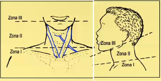 Pescoço superficial Casos clínicos em lesões cervicais ● O pescoço tem um limite, o limite superior fica na margem inferior da mandíbula, o limite inferior é na margem das clavículas. A parte anterior do músculo trapézio, o músculo esternocleidomastoideo, a região lateral do pescoço há um quadrilátero e ele dividia dois triângulos, um triângulo se divide em quatro e o outro em dois. Ferimentos cervicais: análise retrospectiva de 191 casos. ● São muitas as controvérsias e dificuldades em torno da avaliação e tratamento dos ferimentos penetrantes de pescoço= muitos profissionais divergem a respeito de conduta, do que fazer e do manejo cirúrgicos dos casos que envolvem pescoço. ● Anatomicamente observa-se uma diversidade das estruturas vasculares, respiratórias, digestivas e nervosas que se dispõem de maneira muito próxima e particular no pescoço= região de cabeça e pescoço são as regiões que se têm mais nervos, artérias, veias, ossos e mais músculos daí vem à complexidade. ● Existe atualmente um grande debate em torno da conduta a ser adotada em tais lesões e o manejo operatório vem sendo substituído por uma abordagem mais seletiva e conservadora.= muitas vezes quando se pode é não melhor mexer que mexer. ● Questionamentos têm sido feitos relacionando-se mecanismo de lesão e a sua conduta, qual o melhor exame diagnóstico na conduta não-operatória, quando optar pelo tratamento cirúrgico e qual a melhor técnica para o reparo cirúrgico das diferentes lesões encontradas. ● O pescoço pode ser dividido anatomicamente em zonas (I, II e III) e trígonos (anterior e posterior). ● A zona I está compreendida entre as clavículas e a cartilagem cricóide. A zona II entre a cartilagem cricóide e o ângulo da mandíbula e a zona III, estende-se deste ângulo até a mastóide. ●Os ferimentos de pescoço podem ser superficiais ou penetrantes. São considerados penetrantes os que ultrapassam o músculo platisma. A avaliação e o controle inicial devem ser baseados no protocolo do Advanced Traume Life Support (ATLS).= o músculo platisma tem origem na região peitoral e se insere no canto da boca no abaixador do ângulo da boca cobrindo toda a região. A de airway (ou via aérea); B de breathing (ou respiração); D de disability ou (ou incapacidade); E de exposure (ou exposição). ● Quanto ao sexo dos pacientes vítimas destas lesões: Homens – 90% = porque estão mais expostos no dia a dia (andar de moto, briga, jogar bola, etc.). Mulheres – 10% ● Faixa etária mais acometida – entre 24 e 34 anos. ● Local dos ferimentos: II – 47 a 82% = a mais complicada – tem o triângulo carótido, muscular, submandibular e occipital. Onde se tem mais estruturas. I - 5 a 31% = trígono supraclavicular III – 1 a 30% = ângulo da mandíbula até o processo mastóideo. – acidente automobilístico pega as três zonas por causa do cinto de segurança. ● As lesões vasculares são as lesões mais freqüentes nos traumatismos cervicais penetrantes (21 a 27%). = quando se trata de pescoço superficial. Chupões causam coágulos que pegam vasos, o vaso sobe como embolo e pode gerar uma AVE – caso único da menina da Paraíba. Essa lesão pode ser chamada de equimose é um sangramento que fica só baixo da pele se diferencia do hematoma por ser uma lesão plana, já o hematoma possui uma coleção com um potencial muito grande de infectar e gerar um problema maior como um abscesso. ● RELATO DE CASO= Essa lesão acometeu a região posterior, trígono posterior, atingiu a margem posterior do músculo esternocleidomastoideo. ● Quais os danos? Se o esterno está numa região anterior ao acidente e pegou a margem posterior bem na região que parte o ponto nervoso do pescoço, região de parte os nervos para a região cutânea do pescoço, região que vai para a região da orelha, região occipital, pescoço anterior e que desce para a região da clavícula. ● RELATO DE CASO= Acidente causado por fio com cerol. ● Acometeu onde? Foi um corte superficial, acometendo bem próximo a linha média do pescoço onde está à cartilagem tireóide, a glândula tireóidea, osso hióide. Percebe-se que o paciente teve muita sorte, pois se atravessasse, além da lesão vascular, se tem a lesão de vísceras do pescoço e essas vísceras comprometem os compartimentos que dão ao paciente a possibilidade de vida normal, teria a parte respiratória comprometida e também podendo chegar ao aparelho digestório, no esôfago cervical. ● Lesões neurológicas – 16% ● Lesões do pescoço podem ocorrer durante acidentes automobilísticos, outros eventos traumáticos ou até mesmo através da prática de esportes. Os sintomas dessas lesões incluem rigidez de nuca, ombro ou dor no braço, dor de cabeça, dores faciais e vertigens. = o pescoço quando o carro freia faz um movimento de chicote tendo a possibilidade não só de lesões musculares como também lesões neurológicas, pois a região possui a medula. Falando de músculo superficial se leva em consideração o músculo esterno, causando a sua lesão. ● Sem o cinto de segurança, causa um movimento vigoroso e rápido do pescoço para frente e para trás. Levando o paciente a evoluir um problema neurológico mais grave. ●Trato aerodigestório – 6 a 10% São lesões que já ultrapassaram o limite superficial, além da pele pegam alguns vasos (jugular anterior, jugular externa, nervos cutâneos). ● Lesão constitucional, doente que evolui para um tumor nessa região, normalmente, esse paciente tem um tumor na parótida, um tumor que superficializou, o tumor mais comum na parótida é um tumor benigno (adenoma pleomórfico). Pegando parte do trígono submandibular, pois a parótida fica nela. ● RELATO DE CASO= Lesão profunda causada por um fio com cerol. ● Quais as estruturas que foram pegas? A jugular anterior, o arco jugular, jugular externa, nervos cutâneos do pescoço. Ele pode