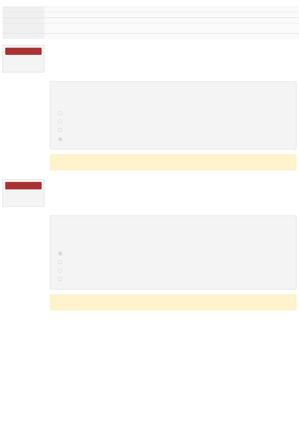 Questão 1 Correto Atingiu 1,00 de 1,00 Questão 2 Correto Atingiu 1,00 de 1,00 1. Complete a frase: As curvaturas nos grupos de fios ou chicotes não devem ser inferiores a ...... vezes o diâmetro externo dos grupos: Escolha uma opção: a. 3; b. 6; c. 8; d. 10. A resposta correta é: 10. 2. Complete a frase: Entretanto, nas barras de terminais, onde o fio está adequadamente suportado em cada extremidade da curvatura, o diâmetro externo do grupo de fios ou do chicote, igual a ....... vezes o diâmetro externo é normalmente aceitável. Escolha uma opção: a. 3; b. 6; c. 8; d. 10. A resposta correta é: 3; Iniciado em quinta, 27 Jan 2022, 18:10 Estado Finalizada Concluída em quinta, 27 Jan 2022, 18:15 Tempo empregado 5 minutos 11 segundos Avaliar 10,00 de um máximo de 10,00(100%) Questão 3 Correto Atingiu 1,00 de 1,00 Questão 4 Correto Atingiu 1,00 de 1,00 Questão 5 Correto Atingiu 1,00 de 1,00 3. O que designa o número sublinhado no condutor 2P215A4N? Escolha uma opção: a. Número de unidade; b. Número do condutor; c. Bitola do condutor; d. Matrícula da aeronave. A resposta correta é: Bitola do condutor; 4. Qual é o sufixo do condutor termopar Cromel? Escolha uma opção: a. ALML; b. CHROM; c. CONST; d. IRON. A resposta correta é: CHROM; 5. Qual o dispositivo de proteção de circuitos é uma tira de metal que fundirá sob excessivo fluxo de corrente? Escolha uma opção: a. Disjuntor; b. Relé; c. RCCB; d. Fusível; A resposta correta é: Fusível; Questão 6 Correto Atingiu 1,00 de 1,00 Questão 7 Correto Atingiu 1,00 de 1,00 Questão 8 Correto Atingiu 1,00 de 1,00 6. Qual o dispositivo de proteção de circuitos que pode ser religado? Escolha uma opção: a. Disjuntor; b. Relé; c. RCCB; d. Fusível; A resposta correta é: Disjuntor; 7. São exemplos de luzes externas? Escolha uma opção: a. Projetores de mapas; b. Luzes de cabine; c. Luzes dos sanitários de passageiros; d. Luzes de posição. A resposta correta é: Luzes de posição. 8. Complete a frase: Os fios e os grupos de fios devem ser protegidos contra ............... nos locais onde o contato com superfícies pontiagudas, ou outros fios, danificariam o isolamento: Escolha uma opção: a. Solventes; b. Alojamentos das rodas; c. Altas temperaturas; d. Fricção. A resposta correta é: Fricção. Questão 9 Correto Atingiu 1,00 de 1,00 Questão 10 Correto Atingiu 1,00 de 1,00 9. Complete a frase: Se os fios se aproximarem mais de ....... de polegada da borda do orifício, usa-se um gromete adequado. Escolha uma opção: a. 1/8; b. 0,5; c. 0,25; d. 1. A resposta correta é: 0,25; 10. Complete a frase: Os fios não devem ser instalados em áreas onde fiquem sujeitos a estragos por fluidos a menos de .......polegadas da parte mais baixa da fuselagem do avião, com exceção daqueles que devem atingir aquela área: Escolha uma opção: a. 1; b. 2; c. 3; d. 4. A resposta correta é: 4.
