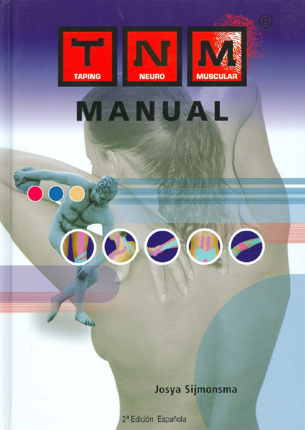 Taping Neuro Muscular La traducción Desde hace unos años, y gracias al esfuerzo de muchos, el Taping Neuro Muscular-TNM (basado en el Medical Taping Concept) es una técnica muy popular entre fisioterapeutas, médicos y especialistas como complemento al tratamiento de todo tipo de dolencias y trastornos físicos, o incluso como tratamiento único. Por la falta de buen material escrito en la lengua española sobre este método se hizo la traducción de este manual holandés, que es una ayuda para el profesional, que después de haber realizado un curso teórico-practico quiere tener un libro de consulta a su lado. Quiero agradecer a Jorge Rodrigo su ayuda y comentarios sobre la parte teórica y a Lola Reboredo sus comentarios sobre la técnica linfática. Agradecimientos a todo el equipo de Fysiotape BV, Atena SL y Aneid Lda., Sandra Farbrer William Ahern , Maria José Marques, Gabriela Pereira y Gert- Jan Olthoff. A Blanca, mi mujer, que me ayudó tanto con la traducción y revisión y soportó tantas horas de trabajo, tiempo que no he podido dedicar a ella. Un cariño especial para Alicia, por su ayuda incondicional, porque me enseña tanto y porque sin su ayuda no hubiera sido capaz de realizar todo lo que hago. Si a pesar de las muchas revisiones todavía encuentran algún error en la traducción, mis más sinceras disculpas al lector. Marc van Zuilen Fisioterapeuta Índice 1. Introducción 1.1. El desarrollo de un nuevo método de tratamiento 1.2. Características del esparadrapo 1.3. Efectos 1.4. Pautas generales 1.5. Contra-indicaciones 2. Técnicas Musculares 2.1. Tonificar / relajar 2.2. Forma y estiramiento en técnicas musculares 2.3. Taping Neuro Muscular — Muscular 2.3.1. M. Esternocleidomastoideo 2.3.2. M. Escaleno anterior 2.3.3. M. Erector de la columna — cervical 2.3.4. M. Trapecio 2.3.5. M. Deltoides 2.3.6. M. Bíceps braquial 2.3.7. M. Tríceps braquial 2.3.8. M. Palmar Largo 2.3.9. M. Romboides mayor y M. Romboides menor 2.3.10. M. Recto abdominal 2.3.11. M. Erector de la columna — lumbar (tracto lateral, sistema transversal 2.3.12. M. Piramidal 2.3.13. M. Cuadriceps, Recto femoral 2.3.14. M. lsquiotibiales 2.3.15. M. Gastrocnemio 3. Tecnica de ligamento 3,1. Introducción 3.2, La Técnica 3.3. Ligamentos colaterales de los dedos de la mano 3.4. Ligamentos colaterales de la rodilla 3.5. Ligamentos colaterales del pie 3.6. Tendón de Aquiles, con estiramiento previo 4. Tecnicas de Tratamiento específicas 4.1. Introducción 4.2. Corregir la posición articular 4.2.1. Art. Tibia-peroné distal 4.2.2. Art. Radio-cubital distal 4.2.3. Corrección postural miembro inferior 4.3. Corregir la posición de la fascia 4.3.1. Alineación de la rotula 4.3.2. Epicondilitis lateral 4.3.3. Bursitis trocantérica cadera 4.4. Aumentar el espacio 61 4.4.1. Puntos dolorosos y puntos gatillos 4.4.2. Disco intervertebral lumbar 4.4.3. Síndrome de Quervain 4.5. Corregir la posición terminal 4.5.1. Frenar la hiperextensión de la rodilla 4.5.2. Frenar la inversión del tobillo 4.5.3 Frenar la flexión dorsal de la muñeca 5. Taping Linfático 5.1. Efectos del Taping en edema linfático 5.2. El Sistema Linfático 5.3. La línea divisoria linfática 5.4. Linfedema 5.5. La técnica linfática 5.5.1. Taping linfático del brazo 5.5.2. Taping Linfático de la mano 5.5.3. Taping linfático de la pierna 5.5.4. Taping Linfático de la cara 5.5.5. Anastomosis desde el costado 5.5.6. Anastomosis desde la ingle 5.6. Técnica en fibrosis, cicatrices y hematomas 6. Taping Neuro-muscular – Taping Segmental 6.1. Introducción 6.2. EPOC y polinosis (fiebre del heno) 6.3. Incontinencia de esfuerzo 6.4. Dolores menstruales 6.5. Diafragma / Zona del estomago 6.6. Dolor postherpético 7. Taping Neuro muscular – Cross Taping 7.1. Introducción 7.2. Características del material 7.3. Aplicación de los cross tapes 8. Aplicaciones del Taping Neuro Muscular 8.1. Metodología 8.2. Hombro congelado 8.3. Pinzamiento M. Supraespinoso 8.4. Inestabilidad anterior del hombro 8.5. Subluxación glenohumeral hacia caudal 8.6. Síndrome del Opérculo Toracico 11 9 8.7. Tendinitis m. Bíceps braquial, cabeza larga 8.8. Corrección postural, anteroposición de hombros 8.9. Epicondilitis lateral del humero — codo de tenista 8.10. Epicondilitis medial — codo de golfista 8.11. Bursitis olecraneana 8.12. Síndrome del túnel carpiano 8.13. Displasia cráneo-mandibular 8.14. Sinusitis 8.15. Neuralgia de trigémino 8.16. Cervicalgias 8.17. Contusión de costilla 8.18. Mastopatía fibroquística 8.19. Diastasis M. Recto abdominal posparto 8.20. Lumbago 8.21. Fracturo osteoporótica por compresión 8.22. inestabilidad pélvica 8.23. Movimiento asimétrico de la articulación sacro-iliaca 8.24. Torsión pélvicci 8.25. Artrosis Deformans cadera 8.26. Bursitis pata de ganso 8.27. Alineación patelar 8.28. Tensión en el hueco poplíteo en extensión 8.29. M. Osgood-Schlatter 8.30. Rotura muscular M. Tríceps sural 8.31. Shin Splint, sindrome de estrés de la espinilla 8.32. Hallux valgus 8.33. Distorsión tobillo 8.34. Fascitis plantar / pies planos 8.35. Espolón 9. Literatura Prologo En un tiempo relativamente corto el Taping Neuro Muscular - TNM (Medical Taping Concept) ha conquistado su sitio en la practica diaria terapéutica de (para)médicos y fisioterapeutas. La manera en que este método optimizo el proceso de recuperación del propio cuerpo, hace muy popular este método tanto en pacientes como en terapeutas. Hasta ahora libros de consulta de este método eran escasos. El objetivo de este libro es suplir esta carencia. Se eligió una estructura paso a paso, tratando y fundando teóricamente las técnicas básicas del Taping una por una en los primeros capítulos. Las técnicas son explicadas mediante algunos ejemplos. Ya que el principio de cada técnica es siempre el mismo, el terapeuta que entienda el concepto y domine la técnica, podrá aplicar esta técnica también en otras partes del cuerpo. El ultimo ca