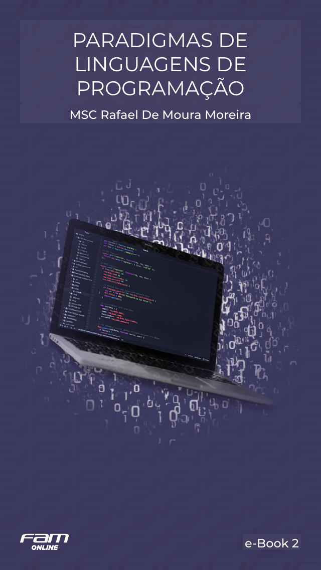 e-Book 2 MSC Rafael De Moura Moreira PARADIGMAS DE LINGUAGENS DE PROGRAMAÇÃO Sumário INTRODUÇÃO ������������������������������������������������� 3 PARADIGMAS DE PROGRAMAÇÃO ��������������� 4 PROGRAMAÇÃO IMPERATIVA ���������������������� 6 PROGRAMAÇÃO ORIENTADA A OBJETO ���� 11 PROGRAMAÇÃO FUNCIONAL����������������������19 PROGRAMAÇÃO LÓGICA �����������������������������26 PROGRAMAÇÃO ORIENTADA A EVENTOS �� 28 PROGRAMAÇÃO CONCORRENTE ����������������31 CONSIDERAÇÕES FINAIS ����������������������������38 REFERÊNCIAS BIBLIOGRÁFICAS & CONSULTADAS ��������������������������������������������42 3 INTRODUÇÃO Olá, estudante! Neste material iremos conhecer um pouco sobre alguns paradigmas de programação – maneiras diferentes de pensar e organizar um programa. Conheceremos os conceitos que definem os pa- radigmas mais conhecidos e algumas linguagens de programação que os representam bem. Além disso, estudaremos também alguns conceitos importantes que nos ajudarão a compreender os diferentes paradigmas, como subprogramas, clas- ses, objetos, eventos e conceitos de programação concorrente. Vamos lá? Bons estudos! 44 PARADIGMAS DE PROGRAMAÇÃO Paradigmas de programação são formas diferentes de se pensar um programa. Diferentes paradigmas possuem diferentes objetivos, e podem alterar ra- dicalmente a forma de se programar. Eles podem focar em formas diferentes de se modelar dados ou de passar instruções para o computador. Para adotarmos um paradigma específico, é ne- cessário que a linguagem ofereça os recursos apropriados para que os conceitos do paradigma escolhido possam ser devidamente implementados. Na prática, várias linguagens surgiram com foco na adoção ou suporte de um paradigma especí- fico, e por conta disso é comum que as próprias linguagens sejam classificadas em função de seu paradigma. Porém, frequentemente é possível utilizar uma mesma linguagem para programar em mais de um paradigma diferente. Da mesma maneira, é comum que conceitos relacionados a mais de um paradigma coexistam em um mesmo programa. Existe uma enorme diversidade de paradigmas, e estudiosos chegam a debater se certas caracte- rísticas de algumas linguagens constituem para- digmas próprios ou se elas seriam apenas casos 55 particulares de outros paradigmas. Estudaremos aqui os seguintes paradigmas: y Programação imperativa; y Programação orientada a objetos; y Programação funcional; y Programação lógica; y Programação orientada a eventos; y Programação concorrente. Diferentes estudiosos podem divergir um pouco na forma de classificar estes paradigmas. É comum, por exemplo, considerar que a programação orien- tada a objetos seja um caso bastante particular de programação imperativa – Sebesta (2018), por exemplo, considera que a orientação a objeto é apenas um conjunto de recursos adicionais que algumas linguagens imperativas passaram a oferecer. Não nos aprofundaremos aqui em discussões acadêmicas e seguiremos a interpretação mais comum. Mas é importante saber que existem outros paradigmas e outras abordagens para estudá-los. 6 PROGRAMAÇÃO IMPERATIVA O paradigma imperativo é o mais natural do ponto de vista do hardware dos sistemas computacionais modernos. Seu nome deriva do modo imperativo, a forma verbal que caracteriza ordens ou instru- ções. Na programação imperativa, o programa é constituído por uma sequência de comandos que o computador deverá executar. É intuitivo imaginar esse modo na prática. O próprio hardware foi projetado de maneira imperativa: a linguagem binária nativa das máquinas consiste em um conjunto de operações elementares, e os programas são sequências específicas dessas instruções. Chega a ser difícil imaginar um paradigma que não seja imperativo. Mas é comum que sejam feitas comparações entre o paradigma imperativo (e seus paradigmas derivativos) com os paradigmas considerados declarativos, como o funcional e o lógico (que serão explicados logo abaixo), em que o programador foca em explicar o que o programa deve fazer, e não como fazer. Não é incomum encontrarmos os nomes “impe- rativo” e “procedural” sendo usados de maneira intercambiável, mas podemos considerar o pa- 7 radigma procedural como um “caso especial” da programação imperativa. Programação procedural A programação procedural é uma forma de pro- gramação imperativa: o programador organiza sequências de comandos ou instruções que o computador deverá executar. O que caracteriza a programação procedural é a forma de organizar as instruções: o programa não será formado por um único bloco longo e contínuo de comandos. Ao invés disso, as instruções podem ser agrupadas em módulos, ou subprogramas. Um programa passa a ser uma coleção de subprogra- mas, cujo cada subprograma é uma sequência de comandos seguindo o paradigma imperativo. Subprograma Subprogramas podem ter diferentes nomes em diferentes linguagens, e em alguns casos, os nomes diferentes podem representar diferenças sutis entre elas. Esses nomes incluem sub-rotinas, procedimen- tos e funções. Em algumas linguagens, a palavra “procedimento” diz respeito a um subprograma qualquer, uma sequência de instruções. Já uma função seria um “caso especial” de procedimento que retorna um valor. Outras linguagens não fazem essa diferenciação. Neste material, deste ponto 8 em diante, utilizaremos “função” como sinônimo de subprograma. Linguagens de p