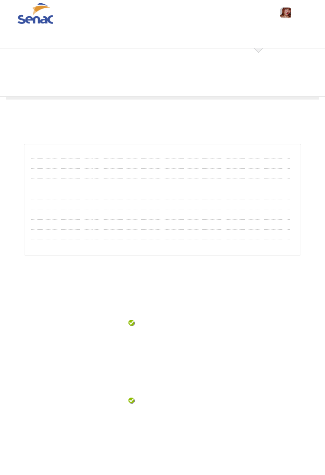 Revisar envio do teste: Clique aqui para iniciar o Quiz SP_GRAD_686284_2201_01 2201-PROGRAMAÇÃO ORIENTADA A OBJETOS Quiz REVISAR ENVIO DO TESTE: CLIQUE AQUI PARA INICIAR O QUIZ Usuário JESSICA APARECIDA CARVALHO Curso 2201-PROGRAMAÇÃO ORIENTADA A OBJETOS Teste Clique aqui para iniciar o Quiz Iniciado 30/03/22 19:16 Enviado 30/03/22 19:31 Data de vencimento 30/03/22 23:59 Status Completada Resultado da tentativa 10 em 10 pontos Tempo decorrido 14 minutos Resultados exibidos Todas as respostas, Respostas enviadas, Respostas corretas, Comentários Pergunta 1 Resposta Selecionada: e. Respostas: a. b. c. d. e. Comentário da resposta: O paradigma orientado a objetos possui alguns recursos essenciais à sua aplicação. O ato de protegermos as variáveis de uma classe de acessos externos para não haver manipulação indevida é efetuado por qual recurso? Encapsulamento. Polimorfismo. Método construtor. Sobrecarga. Herança. Encapsulamento. Encapsular é proteger os dados de acessos externos para não haver violação indevida. Pergunta 2 Sala de Aula Tutoriais 1 em 1 pontos 1 em 1 pontos JESSICA APARECIDA CARVALHO https://senacsp.blackboard.com/webapps/blackboard/execute/courseMain?course_id=_178585_1 https://senacsp.blackboard.com/webapps/blackboard/content/listContent.jsp?course_id=_178585_1&content_id=_7977754_1&mode=reset https://www.ead.senac.br/ https://senacsp.blackboard.com/webapps/portal/execute/tabs/tabAction?tab_tab_group_id=_193_1 https://senacsp.blackboard.com/webapps/portal/execute/tabs/tabAction?tab_tab_group_id=_210_1 https://senacsp.blackboard.com/webapps/login/?action=logout Resposta Selecionada: d. Respostas: a. b. c. d. e. Comentário da resposta: Na sobrecarga de métodos, o compilador reconhece que os métodos são diferentes analisando o cabeçalho do método. Uma das verificações são a quantidade de parâmetros e os tipos desses parâmetros. Em Orientação a Objetos, a diferenciação dos métodos é conhecida por um conceito chamado: Assinatura do método; Polimorfismo Estático; Métodos Estáticos; Métodos Construtores; Assinatura do método; Encapsulamento do método. As declarações dos métodos estão na interface pública dos métodos. Os métodos que possuem o mesmo nome, porém com parâmetros diferentes, têm suas assinaturas diferentes. Pergunta 3 Resposta Selecionada: c. Respostas: a. b. c. d. e. Comentário da resposta: Um dos recursos da programação Orientada a Objetos utilizada para proteger dados de acessos externos à classe é o encapsulamento. Porém, existem vários níveis desse tipo de proteção e são representados pelos modificadores de acesso. Qual o modificador de acesso que protege seus dados de acesso externo, mas permite que classes provenientes de herança possam acessar e manipular seu dado? protected public private protected internal void O modificador de acesso protected age como um private, porém permite acesso das classes filhas aos seus dados. Pergunta 4 Em relação aos métodos e classes declarados como “final”, é correto afirmar que: 1 em 1 pontos 1 em 1 pontos Resposta Selecionada: d. Respostas: a. b. c. d. e. Comentário da resposta: os métodos declarados private não são implicitamente final; um método declarado final em uma superclasse pode ser sobrescrito em uma subclasse; os métodos que são declarados static são implicitamente final; uma classe que é declarada final pode ser uma superclasse; os métodos declarados private não são implicitamente final; nenhum método em uma classe final é implicitamente final. Como o método de privado é acessado apenas pela classe, não é permitido nenhuma sobrescrita dele. Portanto, ele é um método final. Pergunta 5 Resposta Selecionada: e. Respostas: a. b. c. d. e. Comentário da resposta: Além de relacionamentos com classes através da herança, podemos criar relacionamentos com outros tipos de recursos da programação orientada a objetos, uma interface. Para vincular esse relacionamento devemos acrescentar a interface junto a uma palavra reservada. Qual a palavra reservada utilizada para associar uma interface a uma classe? implements. extends. protected. interface. final. implements. Uma interface é implementada por um objeto/classe, portanto utiliza-se a palavra reservada implements. Pergunta 6 A forma mais segura e adequada de manipular variáveis na programação orientada a objetos é utilizando os métodos de acesso e os métodos modificadores. Quais comandos demonstram esses métodos, respectivamente? 1 em 1 pontos 1 em 1 pontos Resposta Selecionada: a. Respostas: a. b. c. d. e. Comentário da resposta: Get e set. Get e set. Construtor e main. Set e get. Main e get. Construtor e set. Os métodos de acesso são também conhecidos como get e os métodos modificadores são também conhecidos como set. Pergunta 7 Resposta Selecionada: c. Respostas: a. b. c. d. e. Comentário da resposta: O paradigma orientado a objetos possui inúmeros conceitos que o caracteriza. Indique a alternativa correta que representa os principais elementos componentes da orientação a objetos: Objeto, classe, construtores, encapsulamento e polimorfismo. Classe, objeto, método, struct e árvore binária. Polimorfismo, construtores, atributos, objeto e ponteiro. Objeto, classe, construtores, encapsulamento e polimorfismo. Modularidade, objeto, classe, métodos e atributos. Classe, objeto, sequência, decisão e iteração. Struct, árvore binária, ponteiro, modularidade, sequência, decisão e iteração não são elementos componentes das principais características da programação orientada a objetos. Pergunta 8 Uma das formas que podemos criar relacionamento entre classes é através da herança. Dependendo do processo realizado para construir esse relacionamento de classes dizemos que é uma generalização ou uma especialização dessas classes. Isso auxilia no reaproveitamento de código de uma superclasse para uma subclasse. Tendo isso em mente, como podem ser de
