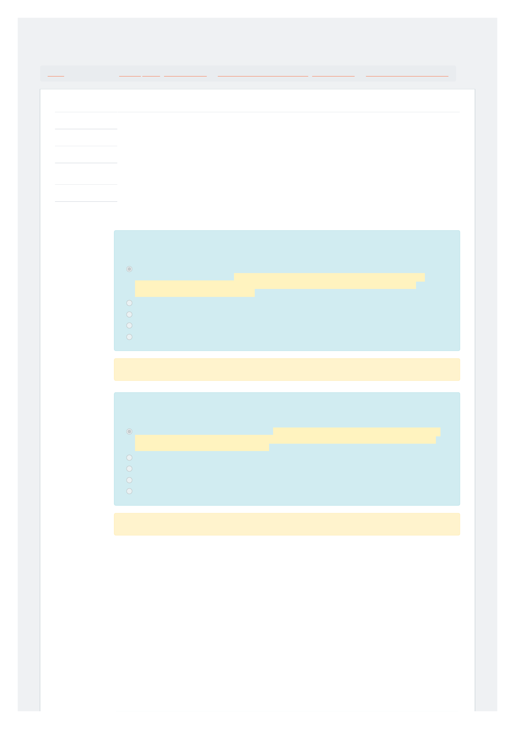 09/05/22, 22:21 Exercício Avaliativo - Módulo 2: Revisão da tentativa https://mooc38.escolavirtual.gov.br/mod/quiz/review.php?attempt=4890207&cmid=104250 1/2 Painel / Meus cursos / Introdução à Vigilância Sanitária / Módulo 2: Sistema Nacional de Vigilância Sanitária / Exercício Avaliativo - Módulo 2 Questão 1 Correto Atingiu 1,00 de 1,00 Questão 2 Correto Atingiu 1,00 de 1,00 Iniciado em segunda, 9 mai 2022, 22:19 Estado Finalizada Concluída em segunda, 9 mai 2022, 22:21 Tempo empregado 1 minuto 26 segundos Notas 4,00/5,00 Avaliar 8,00 de um máximo de 10,00(80%) O componente laboratorial do Sistema Nacional de Vigilância Sanitária é constituído por: Escolha uma opção: a. Laboratórios Centrais de Saúde Pública (LACENS) dos Estados e o Instituto Nacional de Controle de Qualidade em Saúde (INCQS). No âmbito nacional o órgão que cumpre função de componente laboratorial é o Instituto Nacional de Controle de Qualidade em Saúde (INCQS) e, nos Estados, os Laboratórios Centrais de Saúde Pública. b. Unidades Básicas e Hospitais públicos. c. Relação Nacional de Ações e Serviços de Saúde. d. Serviços de Vigilância Sanitária de Estados e Municípios. e. Vigilância Epidemiológica, Promoção da Saúde, Vigilância Ambiental. Sua resposta está correta. A relação entre as esferas de governo no âmbito do Sistema Nacional de Vigilância Sanitária se dá por meio de: Escolha uma opção: a. Pactuação nas Comissões Intergestores. As relações entre os gestores das esferas de governo no âmbito do SUS são construídas e pactuadas nas Comissões Intergestores: CIT, quando envolvem as três esferas de governo; CIB em âmbito estadual. b. A União programa as ações e Estados e Municípios executam. c. Reprogramação das ações para o próximo ano. d. Estabelecimento anual de metas e recursos financeiros. e. Aprovação de planos de saúde nos Conselhos de Saúde. Sua resposta está correta. https://mooc38.escolavirtual.gov.br/my/ https://mooc38.escolavirtual.gov.br/course/view.php?id=5453 https://mooc38.escolavirtual.gov.br/course/view.php?id=5453#section-2 https://mooc38.escolavirtual.gov.br/mod/quiz/view.php?id=104250 09/05/22, 22:21 Exercício Avaliativo - Módulo 2: Revisão da tentativa https://mooc38.escolavirtual.gov.br/mod/quiz/review.php?attempt=4890207&cmid=104250 2/2 Questão 3 Correto Atingiu 1,00 de 1,00 Questão 4 Correto Atingiu 1,00 de 1,00 Questão 5 Incorreto Atingiu 0,00 de 1,00 A diretriz da Descentralização para o Sistema Único de Saúde compreende: Escolha uma opção: a. A razão de ser de uma organização dentro de uma sociedade. b. A transferência de responsabilidades de gestão para os estados e municípios, com a definição de atribuições comuns e competências específicas à União, estados, Distrito Federal e municípios. A descentralização é o processo de transferência de responsabilidades de gestão para os estados e municípios, atendendo às determinações constitucionais e legais que embasam o SUS e que definem atribuições comuns e competências específicas à União, estados, Distrito Federal e municípios. c. Situação ideal a ser alcançada pela instituição. d. Verificação quantitativa e qualitativa dos resultados alcançados com a execução da Programação Anual de Saúde. e. Aprovação do Relatório Anual de Gestão nos Conselhos de Saúde. Sua resposta está correta. O Sistema Único de Saúde é regido pelos seguintes princípios: Escolha uma opção: a. Publicidade, ética e valores morais. b. Impessoalidade, neutralidade e objetividade. c. Legalidade, moralidade e eficiência. d. Universalidade, integralidade e equidade. A Lei 8.080/90 estabelece que "As ações e serviços públicos de saúde e os serviços privados contratados ou conveniados que integram o Sistema Único de Saúde - SUS são desenvolvidos de acordo com as diretrizes previstas no Art.198 da Constituição Federal, obedecendo ainda aos seguintes princípios: universalidade, integralidade e equidade". e. Transparência, publicidade e ética. Sua resposta está correta. O Sistema Nacional de Vigilância Sanitária, como componente integrante do SUS, é regido pelas seguintes diretrizes: Escolha uma opção: a. O diagnóstico, formulação do plano, definição das metas. b. Os instrumentos de planejamento do SUS. c. Análise da situação de saúde de uma população. d. Cumprimento de metas de fiscalização. e. Regionalização, descentralização, participação e controle social. Sua resposta está incorreta. ◄ Orientações sobre o Módulo 2 Seguir para... Orientações sobre o Módulo 3 ► https://mooc38.escolavirtual.gov.br/mod/page/view.php?id=104248&forceview=1 https://mooc38.escolavirtual.gov.br/mod/page/view.php?id=104251&forceview=1