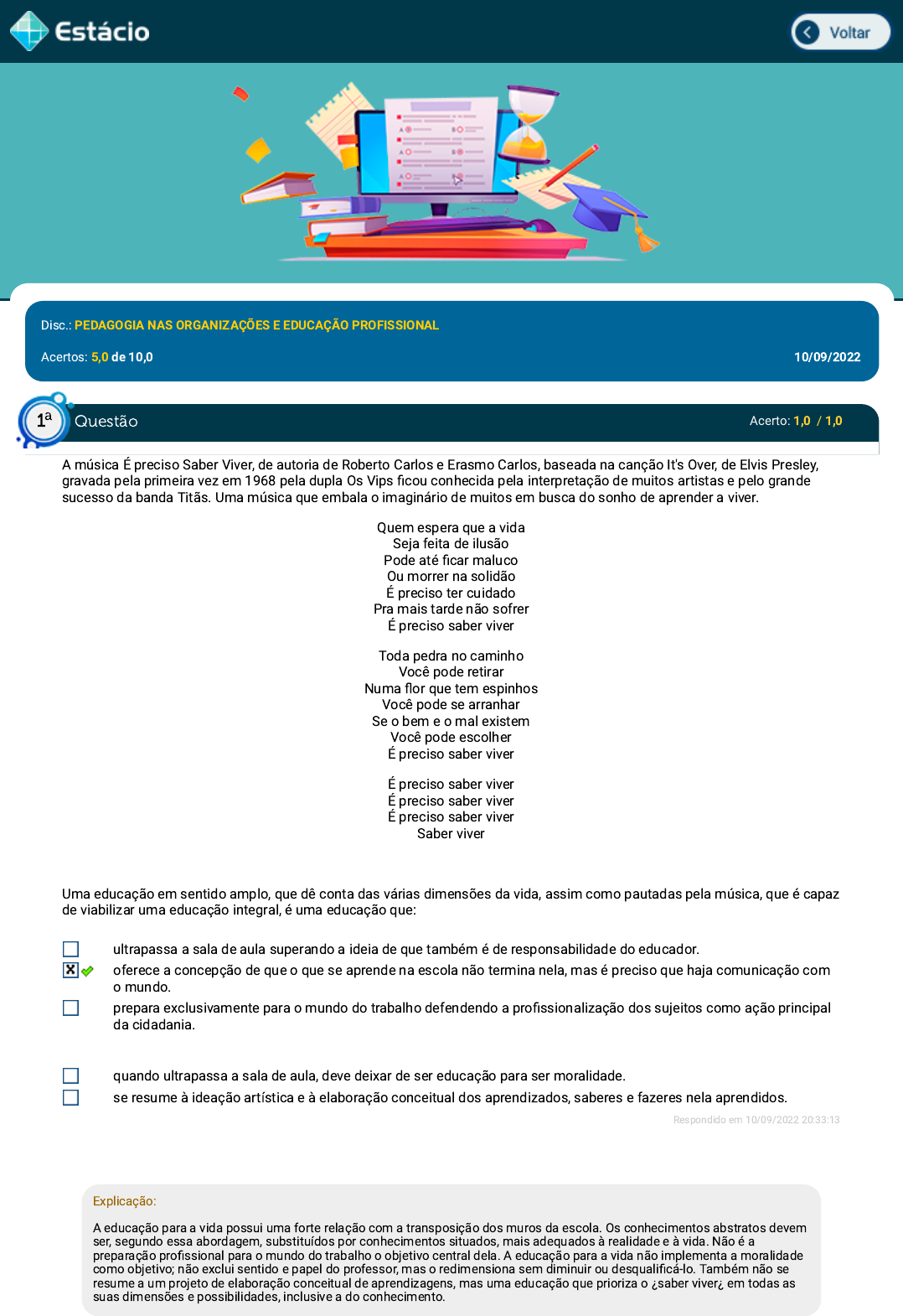 preparação profissional para o mundo do trabalho o objetivo central dela. A educação para a vida não implementa a moralidade