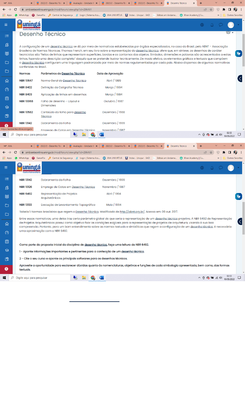 1- A confecção de um desenho técnico se baseia no processo ou em uma técnica para representar percepções visuais, e sendo uma linguagem, exige gramática, ortografia, tipos de linha, escala, cotagem e até caligrafia própria. E claro suas normas, NBR 6492 exige “condições para representação gráfica de projetos de arquitetura e não abrange critérios de projeto, de outra legislação ou normas especificas de município ou estado.” Além do projeto de arquitetura, informações necessárias dos projetos: movimentos de terra, arrumamento, redes hidráulicas, elétricas e de drenagem. A escolha do tipo de papel também deve ser feita em função dos objetivos dos tipos de projetos e das facilidades de reprodução. 2 – Engenharia Mecânica. Um software CAD, é o auxílio para o trabalho de um projetista. Criando projetos, organizando documentos e bancos de dados. É usado em diversas áreas. Podemos resumi-lo em uma criação de desenhos 3D com uma documentação bem técnica. Substituindo os desenhos feitos a mão. Pode chegar a especificar dados como materiais, processos, montagem, dimensões e tolerâncias. Os principais softwares para desenho técnico são: - Autocad: Elabora peças de desenho técnico em duas dimensões e modelos tridimensionais. - Inventor Cam: Protótipos virtuais em 3D, ferramentas profissionais para projetos mecânicos tridimensionais, documentação e produtos. - ScketchUp: Modelagem 3D, conjunto de ferramentas robustas. - SolidWorks: Diminui o tempo no desenvolvimento do produto, eleva a qualidade e reduz custo. - 3DS MAX: Modelagem tridimensional que renderiza imagens e animações. Muito usado em filmes e jogos. - Maya: Focado no cinema, televisão e jogos em geral. Permite realizar animações, simulação, modelagem e efeitos visuais. - Revit: É um software BIM. Podendo automatizar fluxos para melhor qualidade e redução de riscos.