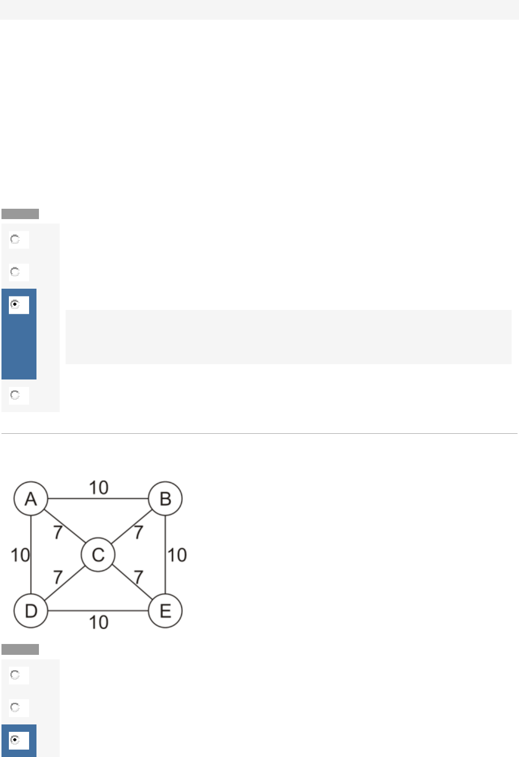Nota: 90 Disciplina(s): Pesquisa Operacional Questão 1/10 - Pesquisa Operacional A inteligência computacional está relacionada a técnicas computacionais baseadas em fenômenos naturais. Podemos destacar I. Redes neurais II. Sistemas especialistas III. Algoritmos genéticos IV. Lógica fuzzy Dentre as alternativas apresentadas, são corretas apenas Nota: 10.0 A II e IV B II, III e IV C I, II, III e IV Você acertou! Quando falamos em inteligência computacional, pensamos em técnicas computacionais baseadas em fenômenos naturais, tais como redes neurais, sistemas especialistas, algoritmos genéticos e lógica fuzzy. D I, II e IV Questão 2/10 - Pesquisa Operacional Considere a seguinte rede. Determine o custo total da árvore mínima que conecta todos os nós da rede. Nota: 10.0 A 7 B 21 C 28 Você acertou! Conexões: A-C B-C C-D C-E Total: 28 D 32 Questão 3/10 - Pesquisa Operacional Uma transportadora, localizada no ponto A do diagrama abaixo, precisa efetuar uma entrega no ponto E. Considerando os sentidos das vias e as distâncias em quilômetros entre os pontos de referência que estão sendo considerados, determine qual é o trajeto mais curto a ser considerado. Nota: 10.0 A A-E B A-C-E C A-B-E D A-B-D-E Você acertou! Dentre diversas possibilidades, o caminho mínimo entre A e E é A-B-D-E. Questão 4/10 - Pesquisa Operacional O diagrama a seguir apresenta as localizações de terminais de ônibus intermunicipais e os respectivos tempos, em horas, entre cada um deles. Determine quais devem ser os terminais por onde uma pessoa deverá passar para que a viagem entre os pontos B e C seja a mais rápida possível. Nota: 10.0 A B-E-C B B-D-C C B-A-E-C D B-A-C Você acertou! Dentre diversas possibilidades, o caminho mínimo entre B e C é B-A-C. Questão 5/10 - Pesquisa Operacional O diagrama a seguir apresenta a localização de algumas das cidades de uma determinada região e as respectivas distâncias entre elas, em quilômetros. Qual deve ser o trajeto escolhido para que um viajante, partindo da cidade D percorra a menor distância possível para chegar até a cidade C? Nota: 10.0 A D-E-C B D-B-C Você acertou! Dentre diversas possibilidades, o caminho mínimo entre D e C é D-B-C. C D-A-B-C D D-F-E-C Questão 6/10 - Pesquisa Operacional Obtenha a árvore mínima que interliga todos os pontos do seguinte grafo. Nota: 10.0 A 1-3; 2-3; 2-5; 3-4; 4-5; 6-7 B 1-5; 2-3; 2-4; 3-5; 5-7; 6-7 Você acertou! Conexões: 1-5 2-3 2-4 3-5 5-7 6-7 Total: 346 C 1-5; 2-3; 2-6; 3-4; 4-5; 5-7 D 1-2; 1-3; 2-4; 3-6; 3-7; 5-6 Questão 7/10 - Pesquisa Operacional A figura a seguir apresenta as localizações das residências de um condomínio fechado e as respectivas distâncias, em metros. Um sistema de segurança será implantado e todas as casas devem ficar conectadas, formando uma árvore. Determine quais ligações devem ser feitas para que a árvore formada seja a menor possível. Nota: 10.0 A A-C, C-E, A-F, B-C, D-E B A-B, C-E, A-F, B-C, E-F C A-B, C-E, A-F, B-C, D-E Você acertou! Conexões: A-B C-E A-F B-C D-E Total: 1600 D A-B, C-E, A-F, B-D, D-E Questão 8/10 - Pesquisa Operacional Uma empresa de comunicações está implantando uma rede de fibra ótica e precisa conectar 6 pontos. A figura abaixo ilustra as localizações destes pontos e apresenta as distâncias, em quilômetros, entre os pontos. Utilizando o algoritmo de Kruskal, determine qual o menor total necessário de cabos de fibra ótica para conectar todos os pontos. Nota: 10.0 A 127 B 132 C 141 D 149 Você acertou! Conexões: A-B A-C C-D D-E D-F Total: 149 Questão 9/10 - Pesquisa Operacional A simulação é um importante recurso onde é possível criar um modelo destinado a reproduzir um problema real. Com o uso da simulação é possível: ( ) realizar experimentos ou desenvolver modelos matemáticos onde esses experimentos podem ser feitos com o auxílio de um computador. ( ) obter conclusões a partir do desenvolvimento do estudo realizado. ( ) obter a solução ótima de um problema. A sequência correta de valores verdadeiros ou falsos é: Nota: 0.0 A V, V, V B V, F, V C F, V, V D V, V, F Com a simulação é possível realizar experimentos ou desenvolver modelos matemáticos onde esses experimentos podem ser feitos com o auxílio de um computador e obter conclusões a partir do desenvolvimento do estudo realizado. No entanto, com a simulação não há uma solução ótima para um problema e sim um estudo sobre o comportamento que podemos esperar do problema real com base nos estudos desenvolvidos com o modelo. Questão 10/10 - Pesquisa Operacional O diagrama a seguir apresenta a localização de algumas das cidades de uma determinada região e as respectivas distâncias entre elas, em quilômetros. Qual deve ser o trajeto escolhido para que um viajante, partindo da cidade A percorra a menor distância possível para chegar até a cidade G? Nota: 10.0 A A-B-E-G Você acertou! Dentre diversas possibilidades, o caminho mínimo entre A e G é A-B-E-G. B A-D-F-G C A-D-E-G D A-D-F-E-G