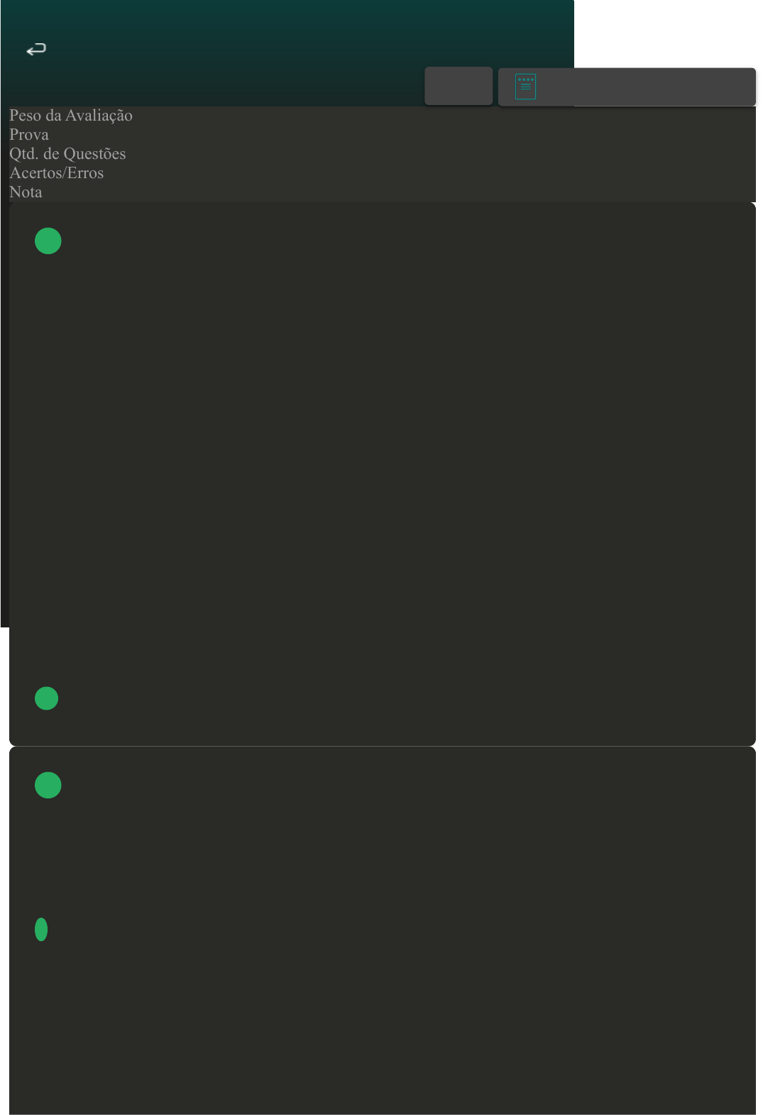 Prova Impressa GABARITO | Avaliação I - Individual (Cod.:768340) Peso da Avaliação 1,50 Prova 57016778 Qtd. de Questões 10 Acertos/Erros 9/1 Nota 9,00 Uma linguagem de programação é um vocábulo e um conjunto de regras gramaticais usadas para escrever programas de computador, sendo que cada linguagem possui suas próprias características e peculiaridades. No que se refere ao desenvolvimento de sistemas e à linguagem de programação Java, analise as sentenças a seguir: I- Há oito tipos de dados primitivos suportados no Java, que são: "bit", "short", "int", "long", "float", "double", "logic" e "char". II- A linguagem Java suporta apenas comentários de uma única linha, utilizando uma sequência de duas barras, como "// esta linha será interpretada como um comentário". III- Os três operadores relacionais E (representado por &&), OU (representado por '') e NÃO (representado por !) permitem verificar se o valor de dois operandos é igual, maior, menor ou diferente. IV- Na linguagem de programação Java, podemos definir uma estrutura de repetição de três maneiras, que são: "while"; "do-while"; e "for". Assinale a alternativa CORRETA: A As sentenças I e IV estão corretas. B As sentenças II, III e IV estão corretas. C As sentenças I, II e III estão corretas. D Somente a sentença IV está correta. Quando se iniciam os estudos para o desenvolvimento de programas utilizando a linguagem de programação Java, deve-se inicialmente preparar o ambiente com a instalação e configuração de componentes de software que servirão como base para a criação e execução desses programas. Dois desses componentes são o JDK (Java Development Kit) e o Java Runtime Environment (JRE). Sobre as aplicações e diferenças entre o JDK e o JRE na criação e execução de programas escritos na linguagem Java, assinale a alternativa CORRETA: A Mesmo fornecendo todo o ambiente para o desenvolvimento e execução de programas Java, o JDK pode ser combinado com ambientes sofisticados de desenvolvimento, as chamadas IDE, para facilitar a manipulação e a visualização dos programas criados. B Não há diferenças significativas entre o JRE e o JDK, uma vez que ambos podem ser utilizados para a criação e execução de programas escritos na linguagem Java. C A instalação do JRE dispensa a utilização de uma IDE (Integrated Development Environment) sofisticada como a do Netbeans já que fornece todo o ambiente e ferramentas para o desenvolvimento de programas Java. VOLTAR A+ Alterar modo de visualização 1 2 D O JDK contém apenas um conjunto de recursos necessários para a execução de programas Java, não sendo possível apenas com o JDK criar e executar os programas criados. Toda linguagem de programação é constituída por uma série de detalhes formais, como a sua sintaxe, e também por uma série de práticas que se denominam "boas práticas de programação". Como uma linguagem sofisticada e moderna, a linguagem Java não é diferente nesse quesito, possuindo por exemplo, uma padronização para nomes de classes, atributos e métodos. Sobre a padronização correta indicada para nomes de classes, atributos e métodos (obedecendo essa sequência), que poderiam existir na criação de programas Java, tendo como foco o domínio de problema do sistema de ambiente virtual de aprendizagem Gioconda da UNIASSELVI, classifique V para as sentenças verdadeiras e F para as falsas: ( ) Curso, nomeAluno, cadastrarDisciplina. ( ) Disciplina, Aluno, Curso. ( ) Docente, Avaliacao, Tutor. ( ) Disciplina, codigoAvaliacao, consultarAluno. Assinale a alternativa que apresenta a sequência CORRETA: A V - V - F - F. B F - V - F - V. C F - V - V - F. D V - F - F - V. A estrutura de uma classe na linguagem de programação Java comporta um nome, um conjunto de atributos, também conhecidos como o estado desta classe e um conjunto de métodos, também conhecidos como o comportamento desta classe. Considerando a estrutura da Classe Principal demonstrada na figura a seguir, classifique V para as sentenças verdadeiras e F para as falsas: ( ) A linha 1 define, através da palavra reservada "package", que a classe está agrupada obedecendo as suas responsabilidades dentro de uma aplicação. ( ) Já que o método "Aluno()" não possui parâmetros as linhas 7 a 9 geram erros de compilação. ( ) Pode-se afirmar que o tipo de dados do atributo "nome", existente na classe aluno é do tipo booleano. ( ) Pode-se afirmar que o tipo de dados do atributo "matricula", existente na classe aluno é do tipo caracter. Assinale a alternativa que apresenta a sequência CORRETA: A F - F - V - V. B V - F - F - V. 3 4 C V - F - F - F. D V - F - V - V. A criação de programas tendo como base a linguagem de programação Java é otimizada pelo uso das chamadas IDE (Integrated Development Environment) que fornecem ambientes sofisticados para o desenvolvimento de programas e softwares, auxiliando, por exemplo a escrita de códigos- fonte, evitando erros de sintaxe, duplicação de variáveis etc. Entre esses ambientes, pode-se citar a ferramenta de desenvolvimento Eclipse. Sobre as características do editor do Eclipse no auxilio à escrita de códigos-fonte, analise as sentenças a seguir: I- Com relação à apresentação de informações de documentação para uma classe, ou método, a Eclipse, diferente de outras IDE, não apresenta essas informações ao se colocar, por exemplo, o cursor do mouse sobre uma classe ou um método. II- Um recurso interessante presente no Editor é a sua capacidade de compilação de um determinado arquivo fonte no mesmo instante no qual está sendo salvo no diretório de projetos. III- Falta ao Editor a característica de autocompletar no qual a parte de um comando, variável ou atributo, é sugerida quando parcialmente digitada. IV- A capacidade de sugerir correções do Editor é muito boa, uma vez que, por exemplo, existe a sugestão de criação de um atributo, não existente em uma 
