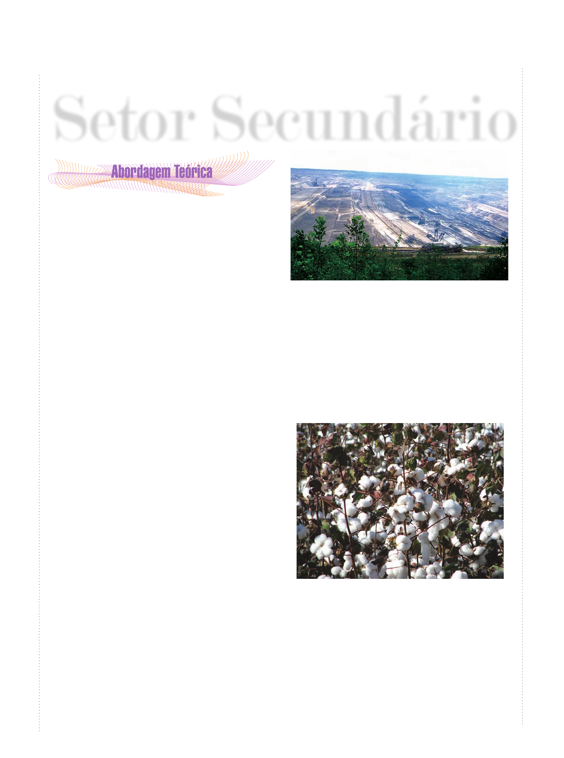 Setor Secundário A partir da 1.ª Revolução Industrial, ocorre uma grande mudança nas relações econômicas, sociais e espaciais. Com a introdução de uma série de inovações tecnológicas, a produção e a circula- ção de mercadorias aumentam e atingem mercados internacionais. A indústria fortalece o comércio e os serviços localizados basicamente nas cidades. Ao mesmo tempo, esse processo acentua o êxodo rural, pois, com o fim dos últimos resquícios feudais na Europa, os trabalhadores rurais migram para a cidade e se tornam operários das novas indústrias que estão surgindo. Nessa nova lógica, estabelecida a partir da criação das indústrias, os países que não detinham o pioneirismo das inovações copiavam os modelos implementados nos países líderes das revoluções industriais. Fatores da localização industrial Para que uma indústria se instale em determina- do local e prospere, são necessários alguns quesitos favoráveis, os fatores locacionais. As indústrias espalhadas pelo mundo concen- tram-se em determinadas áreas devido à disponi- bilidade de alguns fatores locacionais, como mão- de-obra, matérias-primas, mercado consumidor e fontes de energia. Durante a 1.ª Revolução Industrial, realizada na Inglaterra, por volta de 1750, grande parte da mão-de-obra utilizada nas fábricas era oriunda do meio rural. Ao mesmo tempo, os industriais ingleses associados ao governo, investiram grandes capitais na construção de estradas férreas, que serviriam para o transporte de carvão, das minas até as fá- bricas, e também para o escoamento da produção industrial. L eo p ol d o R od ri g ue s. Mina de carvão a céu aberto no estado do Rio Grande do Sul. As matérias-primas utilizadas nas indústrias evoluem de acordo com as tecnologias disponíveis em cada momento da história de cada nação produ- tora. Para se ter uma ideia dessa lógica, podemos dizer que na 1.ª Revolução Industrial, a principal matéria-prima necessária para a produção têxtil inglesa era o algodão. Na atualidade, esse tipo de material ainda tem importância para a indústria têxtil, mas está sendo substituído por materiais de- rivados do petróleo. Jo sé R ey n al d o d a Fo n se ca . Lavoura de algodão. No caso da revolução industrial inglesa, a prin- cipal fonte de energia era o carvão, sendo que as cidades mais próximas das jazidas desse recurso, foram as que mais prosperaram. O carvão abastecia as caldeiras das indústrias têxteis, movimentando os equipamentos a vapor, desde máquinas industriais até locomotivas. Na atualidade, o principal combustí- vel e fonte de matéria-prima para a indústria mundial é o petróleo e seus derivados. 1 Para a movimentação das fábricas utiliza-se desde carvão até energia elétrica e nuclear. It ai p u. Usina hidrelétrica de Itaipu, na divisa do Brasil com o Paraguai. Outro importante fator locacional é o mercado consumidor, pois sem a venda dos produtos as in- dústrias não conseguem se desenvolver. No atual período industrial, as indústrias pro- curam lugares onde exista um público consumidor com uma renda condizente com os produtos que serão fabricados. As grandes fábricas multinacionais buscam a sua instalação em grandes centros urbanos localizados nos países em desenvolvimento, pois, além da concentração populacional dessas áreas, a renda dessa população é superior à das localizadas nas demais áreas desses países. Além dos fatores locacionais citados anterior- mente, ainda é muito importante a existência de uma rede de transportes para o escoamento das merca- dorias e de uma rede de comunicações para facilitar os fluxos de informação entre os vários mercados existentes em um país ou mesmo entre países. A existência de incentivos fiscais e a disponibi- lidade de água também são fatores importantes para a instalação e manutenção das indústrias. Os tipos de indústrias Os fatores locacionais serão utilizados em maior ou menor escala, dependendo do tipo de indústria. Nesse sentido, as indústrias podem ser clas- sificadas em: de bens de produção ou de base, de bens de capital e indústrias de bens de consumo ou leves. Indústrias de bens de produção ou de base Esse tipo de indústria é responsável pela trans- formação das matérias-primas como o ferro, por exemplo, em materiais que serão posteriormente utilizados pelas indústrias de bens de capital, como compensados, laminados etc. Como exemplo desse tipo de indústria, podemos citar as metalúrgicas, as siderúrgicas, as indústrias de cimento e as petroquímicas. Exemplo de indústria de base. A ut or d es co n he ci d o. Indústrias de bens de capital Nesse tipo de indústria, temos a fabricação dos equipamentos e máquinas necessários para a indús- tria de bens de consumo e de produção. As indústrias de bens de capital, geralmente estão localizadas próximas aos centros consumidores. Como exemplo desse tipo de indústria, podemos citar as indústrias de ferramentas, de autopeças e lubrificantes. Indústrias de bens de consumo Esse tipo de indústria é o que apresenta a maior dispersão espacial, dentro de um país ou entre países. As indústrias de bens de consumo precisam de abundância de mão-de-obra e de grandes mercados consumidores. Essas indústrias se dividem em duráveis, semi- duráveis e não-duráveis, isto em função do “tempo de vida” das mercadorias. Como exemplos de bens de consumo duráveis, podemos citar os móveis, os automóveis e os eletro- domésticos. Já para os bens de consumo semidu- ráveis, podemos citar os calçados e o vestuário. E como exemplo de bens de consumo não-duráveis, aparecem os remédios, os alimentos e as bebidas. 2 C om st oc k C om p le te . Indústria de autopeças, inserida na categoria de indústrias de bens de consumo duráveis. A produção industrial em países desenvolvidos A hegemonia em termos industriais e tecnoló- gicos, como já menci