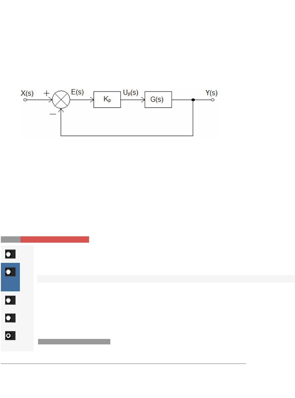 Atenção. Este gabarito é para uso exclusivo do aluno e não deve ser publicado ou compartilhado em redes sociais ou grupo de mensagens. O seu compartilhamento infringe as políticas do Centro Universitário UNINTER e poderá implicar sanções disciplinares, com possibilidade de desligamento do quadro de alunos do Centro Universitário, bem como responder ações judiciais no âmbito cível e criminal. Questão 1/10 - Controle Contínuo Um compensador proporcional aplicado a um sistema de controle em malha fechada é mostrado na figura a seguir Com base na figura mostrada e no funcionamento do compensador proporcional, analise as afirmativas e assinale a alternativa correta. I. O bloco Kp representa o ganho proporcional. Como a própria palavra “ganho” deixa subentendido, Kp deve ser maior que 1. II. O sistema em malha fechada altera o seu comportamento em função do valor de Kp. III. Um aumento excessivo do valor de Kp pode levar o sistema à instabilidade. IV. O valor de Up(s) é dado pela multiplicação entre Kp e E(s). V. Caso o ganho Kp seja menor que 1, o sistema se tornará instável. Nota: 0.0Você não pontuou essa questão A As afirmativas I, II e III estão corretas. B As afirmativas II, III e IV estão corretas. Resposta na Aula 6, Tema 1 C As afirmativas I, III e IV estão corretas. D As afirmativas I, II e V estão corretas. E As afirmativas II, III e V estão corretas. Você assinalou essa alternativa (E) Questão 2/10 - Controle Contínuo Considere o seguinte diagrama de blocos Para o sistema acima, projete um compensador por avanço de fase com as seguintes especificações: Um sobresinal de 30%, um erro de velocidade de 20 segundos-1, e um tempo de pico de aproximadamente 1 segundo. Além disso, acrescente 10º ao avanço de fase que deve ser inserido pelo compensador. Nota: 10.0 A B Você assinalou essa alternativa (B) Você acertou! C D E Questão 3/10 - Controle Contínuo Em relação aos métodos de sintonia desenvolvidos por Ziegler e Nichols, analise as afirmativas e assinale a alternativa correta. I. Os métodos de sintonia de Ziegler-Nichols são métodos de sintonia aplicados apenas em compensadores PID. II. Os métodos de sintonia podem ser aplicados a compensadores PID modificados. III. No método de sintonia em malha aberta é recomendado para plantas não possuam integradores. IV. No método de sintonia por malha fechada, deve-se obter os valores do período crítico e do ganho crítico. V. Os parâmetros do controlador obtidos por estes métodos não garantem a estabilidade do sistema para qualquer variação paramétrica. Nota: 0.0Você não pontuou essa questão A As afirmativas I, II e III estão corretas. B As afirmativas II, III e IV estão corretas. C As afirmativas III, IV e V estão corretas. D As afirmativas II, IV e V estão corretas. Você assinalou essa alternativa (D) E As afirmativas I, II e V estão corretas. Questão 4/10 - Controle Contínuo Considere o seguinte sistema: Calcule o ponto de saída dos polos do eixo real, no lugar das raízes. Nota: 10.0 A -3,382 B -14,89 C -1,203 D -9,487 E -5,101 Você assinalou essa alternativa (E) Você acertou! Questão 5/10 - Controle Contínuo Considere a função Sabendo que deseja-se traçar o diagrama de Bode de G(j?) determine a frequência de canto da função. Nota: 10.0 A 1/4 rad/s B 1/2 rad/s C 1 rad/s D 2 rad/s E 4 rad/s Você assinalou essa alternativa (E) Você acertou! Questão 6/10 - Controle Contínuo Uma área da engenharia elétrica onde os sistemas de controle são largamente empregados é a eletrônica de potência. O controle de conversores estáticos é de extrema importância, para garantir a estabilidade e o desempenho destes circuitos. Uma topologia bastante difundida e utilizada é a do conversor abaixador de tensão (Buck), cuja função de transferência da tensão de saída para a tensão de entrada é dada por Trata-se de um sistema de segunda ordem subamortecido. Sabendo que a tensão de entrada, Vi, é de 200V, e a tensão de saída, Vo, é de 80V, determine o valor do ganho que um compensador proporcional, com realimentação unitária, frente a uma entrada do tipo degrau unitário, para que o erro da tensão de saída seja de 4%. Nota: 10.0 A Kp = 74,35 B Kp = 100,25 C Kp = 122,5 D Kp = 125,5 E Kp = 153,75 Você assinalou essa alternativa (E) Você acertou! Questão 7/10 - Controle Contínuo Analise as afirmativas e assinale a alternativa que corresponde a características de sistemas de fase mínima. I. É possível traçar as assíntotas e verificar a ordem da função de transferência, através das inclinações múltiplas de –20dB/década. Para os gráficos que possuírem uma inclinação de –40dB/década, pode-se afirmar que se trata de uma função de transferência de 2ºordem. II. Para funções de 2ª ordem, a frequência natural não-amortecida, ?n, é igual a frequência de corte. III. Para funções de 2º ordem, a frequência de corte esta em uma frequência uma década abaixo da frequência de pico de ressonância. IV. O coeficiente de amortecimento é verificado medindo-se o valor de pico ressonante na frequência que a inclinação varia para –40dB/década. V. É possível determinar o coeficiente de amortecimento, calculando o módulo da função na frequência corte. Nota: 0.0Você não pontuou essa questão A Somente as afirmativas I, III e V estão corretas. B Somente as afirmativas II, IV e V estão corretas. C Somente as afirmativas I, III e IV estão corretas. Você assinalou essa alternativa (C) D Somente as afirmativas I, II e IV estão corretas. Resposta na Aula 5, Temas 1 e 2 E Somente as afirmativas I, II e III estão corretas. Questão 8/10 - Controle Contínuo Nas fabricas de automóveis de hoje são utilizados grandes robôs de solda. O cabeçote de sola é deslocado para diferentes pontos do corpo do automóvel e necessita uma resposta precisa. Deseja-se, portanto projetar um controlador proporcional-integral-derivativo pa