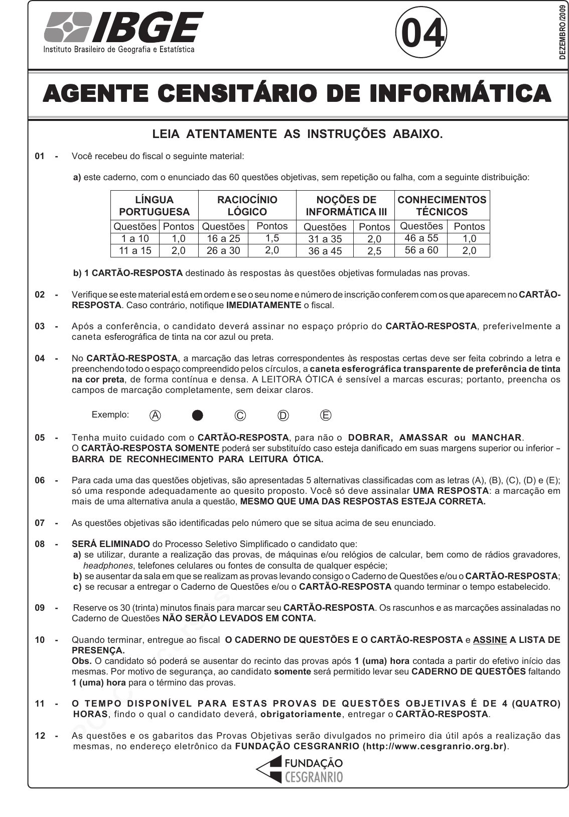 mesmas, no endereço eletrônico da FUNDAÇÃO CESGRANRIO (http://www.cesgranrio.org.br).