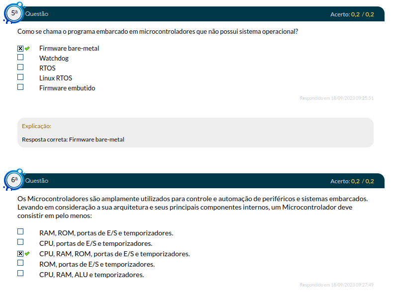 Os Microcontroladores são amplamente utilizados para controle e automação de periféricos e sistemas embarcados. Levando em consideração a sua arquitetura e seus principais componentes internos, um Microcontrolador deve consistir em pelo menos: