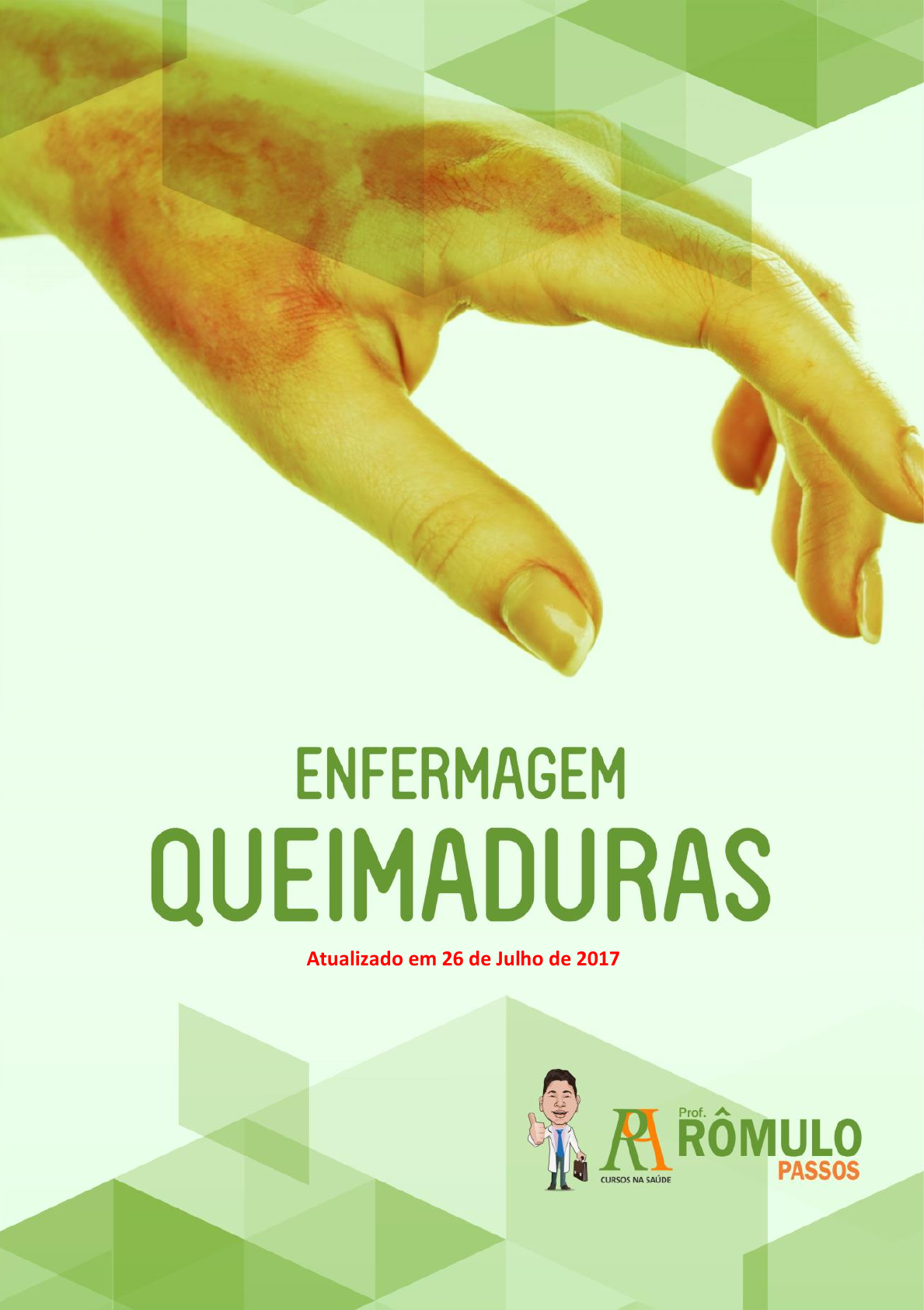 Atualizado em 26 de Julho de 2017 Cássio Júlio Araújo de Paiva - 018.040.614-09 1 Cássio Júlio Araújo de Paiva - 018.040.614-09 2 Amigo (a), Com muita disciplina e determinação, chegamos a mais uma aula do nosso curso. Nessa aula, iremos abordar os conteúdos referentes ao tema queimaduras. Primeiramente, faremos uma abordagem teórica do tema proposto e, em seguida as questões cobradas em concursos anteriores com os comentários. Boa aula! Profº. Rômulo Passos Profº Caíque Jordan Profa. Tainá Santiago www.romulopassos.com.br Cássio Júlio Araújo de Paiva - 018.040.614-09 3 NOÇÕES SOBRE QUEIMADURAS 1. DEFINIÇÃO As queimaduras são consideradas feridas traumáticas causadas, em sua maioria, por agentes térmicos, químicos, elétricos ou radioativos. Esses agentes são capazes de produzir calor excessivo que danifica os tecidos corporais e acarreta a morte celular, causando a destruição parcial ou total da pele e de seus anexos, acometendo inclusive as camadas mais profundas, como tecido subcutâneo, músculos, tendões e ossos (SOCIEDADE BRASILEIRA DE QUEIMADURAS, 2012; BRASIL, 2012). 2. FISIOPATOLOGIA A lesão por queimadura é uma consequência da transferência de calor de um local para outro. A destruição tecidual resulta da coagulação, desnaturação proteica ou ionização do conteúdo celular. A profundidade da lesão depende da temperatura do agente etiológico e da duração do contato com o agente. O evento sistêmico inicial depois de uma lesão por queimadura maior é a instabilidade hemodinâmica, a qual envolve mecanismos cardiovasculares, hidroeletrolíticos, de volume sanguíneo, pulmonares, renais, imunológicos, termorreguladores e intestinais (Brunner & Suddarth, 2015). Cássio Júlio Araújo de Paiva - 018.040.614-09 4 3. CLASSIFICAÇÃO DAS QUEIMADURAS De acordo com a profundidade da destruição tecidual, as queimaduras podem ser classificadas em primeiro, segundo, terceiro e quarto grau, conforme veremos na tabela seguir (GEOVANINI, 2014; PHTLS, 2012): Grau Envolvimento cutâneo Sintomas Sinais Recuperação 1º Epiderme (superficial) Dor Hiperemia e pequeno edema 4 a 6 dias 2º Epiderme e porções variadas da derme (espessura parcial) Muita dor Áreas desnudas, úmidas, flictena e bolhas 7 a 21 dias. Enxertia no grau profundo 3º Epiderme, derme e hipoderme (espessura total) Dor relacionada às terminações nervosas circunjacentes Ferimentos espessos, secos, esbranquiçados, com aparência semelhante a couro Excisão cirúrgica e enxertia 4º Epiderme, derme, tecido subcutâneo, tendões, fáscias, músculos, ossos ou até os órgãos internos Indolor Semelhante e/ou mais grave que o 3º Excisão cirúrgica e enxertia. Óbito De acordo com diretrizes do Ministério da Saúde, as queimaduras podem ser classificadas em primeiro, segundo e terceiro grau, conforme descrito abaixo (Brasil, 2012): * Algumas literaturas referem que pode ocorrer bolhas em queimaduras de 1º grau. Cássio Júlio Araújo de Paiva - 018.040.614-09 5 TEMPO MÉDIO DE RECUPERAÇÃO: VEJA MELHOR! : 1º 4 a 6 dias 2º 7 a 21 dias. Enxertia no grau profundo 3º Não reepiteliza Excisão cirúrgica e enxertia 4º Excisão cirúrgica e enxertia. Óbito Cássio Júlio Araújo de Paiva - 018.040.614-09 6 4. EXTENSÃO DA ÁREA DE SUPERFÍCIE CORPORAL LESIONADA A “regra dos nove” é uma maneira rápida para estimar a extensão de queimaduras em adultos. O sistema divide o corpo em múltiplos de nove. A soma total dessas partes é igual à área de superfície corporal total e é uma importante medida de gravidade da lesão (Brunner & Suddarth, 2015). Crianças apresentam proporções diferentes dos adultos, visto que suas cabeças são proporcionalmente maiores que as dos adultos. Algumas literaturas não recomendam a adoção da “regra dos nove” para crianças devido às diferenças em cada fase de crescimento, tornando essa classificação imprecisa. 5. GRAVIDADE DAS QUEIMADURAS (PICCOLO et al., 2008 apud GEOVANINI, 2014) Essa classificação não é consenso na literatura. Precisamos ter cuidado com questões sobre isso. Assista à nossa videoaula e fique atento(a) as dicas. Pequeno queimado (leve): ocorre lesão de primeiro grau em qualquer extensão; as lesões de segundo grau atingem menos de 10% da superfície corporal do adulto e 5% da criança; Médio queimado (médio): ocorrem queimaduras de segundo grau, que acometem 5 a 10% da superfície corporal da criança e de 10 a 20% do adulto; e de terceiro grau com até 10% em adultos, sem comprometer face, mão, períneo e pé, além de qualquer queimadura que envolva mão, pé, face, pescoço ou axila; Grande queimado (grave): ocorrem queimaduras de segundo grau, sendo mais de 15% em crianças e 20% em adultos; de terceiro grau com mais de 5% em crianças e 10% em adultos; queimadura no períneo em qualquer idade; queimadura por eletricidade e de terceiro grau também em mão, pé, face, pescoço ou axila. 6. ABORDAGEM PRÉ-HOSPITALAR O método de atendimento ao trauma ABCDE é aplicado ao doente vítima de queimaduras (GEOVANINI, 2014; PHTLS, 2012): Cássio Júlio Araújo de Paiva - 018.040.614-09 7 A: manter as vias aéreas desobstruídas. Em casos de incêndios, retirar a vítima para evitar a inalação de monóxido de carbono. Pode haver estreitamento da traqueia pelo edema da mucosa e também dificuldade de intubação. B: são avaliadas as necessidades de intubação e nebulização pela verificação da frequência e profundidade respiratórias, e ausculta. É prudente administrar oxigênio a 100% em todos os pacientes com queimaduras acima de 20% da superfície corporal queimada. Queimaduras circunferenciais da parede torácica podem enrijecer e se contrair, sendo necessária a realização de escarotomia imediata; C: deverão ser estabelecidos dois acessos venosos calibrosos para reposição volêmica com Ringer Lactato. A instalação de cateter vesical de demora para avaliar a diurese também se faz n