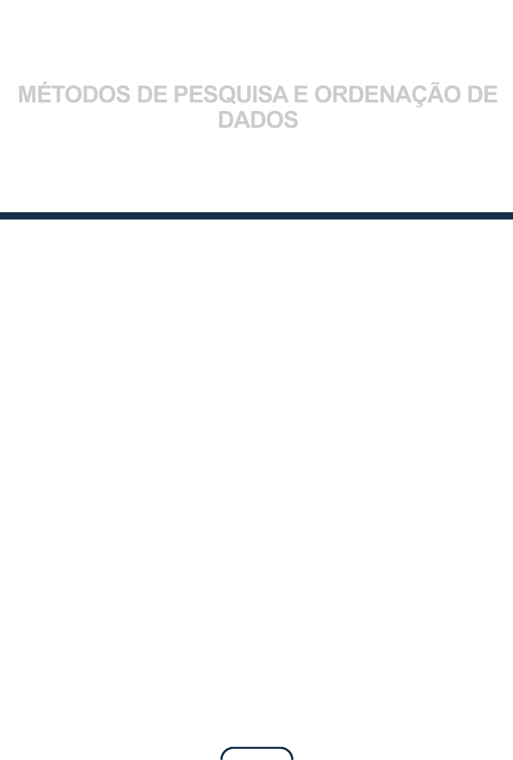 30/06/2023, 11:18 231GGR0940A: Pratique https://ambienteacademico.com.br/mod/url/view.php?id=784341 1/2 Imagine uma pilha com mais de 1.000 registros. Cada registro se refere a um nome. Caso a pilha não esteja ordenada, será demandado um tempo para conseguirmos localizar um registro em específico. O tempo para localizar esse registro não pode ser definido, pois existem inúmeros fatores que o influenciam, uma vez que ele pode estar no início, no meio ou no fim da pilha. Por outro lado, caso a pilha esteja em ordem alfabética, o tempo que levaríamos para encontrar o registro seria menor. Dessa forma, imagine que uma pilha de registros é um vetor e que o programa tem que percorrer todas as células do vetor até encontrar o registro que precisamos. Isso pode levar certo tempo, não é? Agora, imagine que temos que fazer esse processo mais de 100 vezes ao dia. Se os dados não estiverem ordenados, o tempo que o programa vai gastar para percorrer os registros pode ser bem grande. Para resolver o problema de os dados estarem desorganizados, existem os algoritmos de ordenação, que tem como objetivo facilitar a busca por registros específicos. Para analisar os algoritmos de ordenação, precisamos conhecer a sua complexidade em qualquer caso. Tal complexidade se dá devido à velocidade e ao desempenho do algoritmo para atender nossas necessidades de busca. MÉTODOS DE PESQUISA E ORDENAÇÃO DEMÉTODOS DE PESQUISA E ORDENAÇÃO DE DADOSDADOS 30/06/2023, 11:18 231GGR0940A: Pratique https://ambienteacademico.com.br/mod/url/view.php?id=784341 2/2 Vamos praticar Sendo assim, por meio de pesquisas na internet, compare e analise os métodos de pesquisa e ordenação de dados, mencionando suas vantagens e desvantagens, indo além dos métodos abordados ao longo do e-book . Faça, também, um ranking por meio de infográfico, destacando a complexidade de cada método, dos mais rentáveis para os menos rentáveis. Ao final, disponibilize seus resultados no fórum da seção “Compartilhe” .