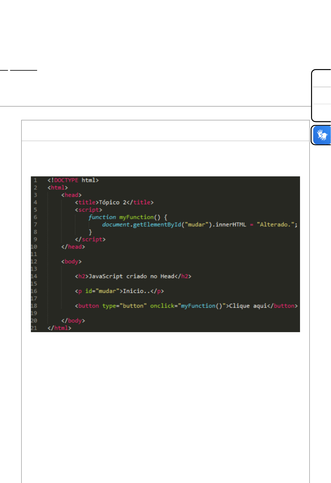Considerando o código e o trecho apresentado sobre o as ações do JavaScript no