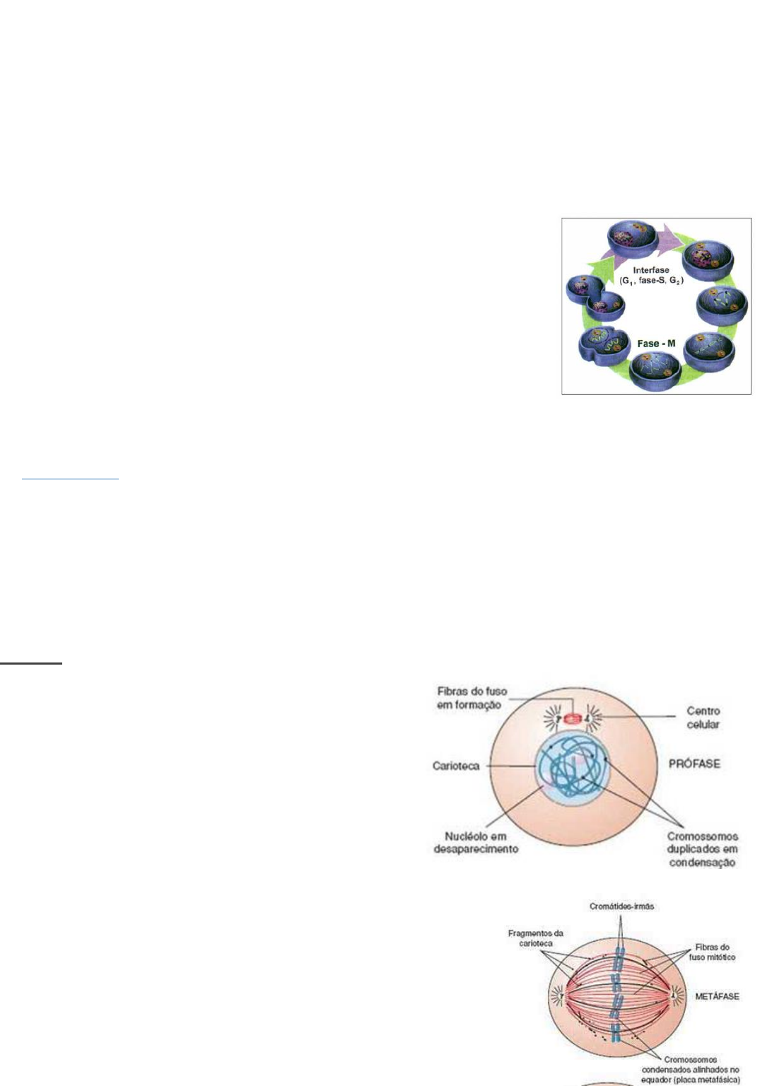 *Dividido em duas etapas: a interfase e a divisão celular.