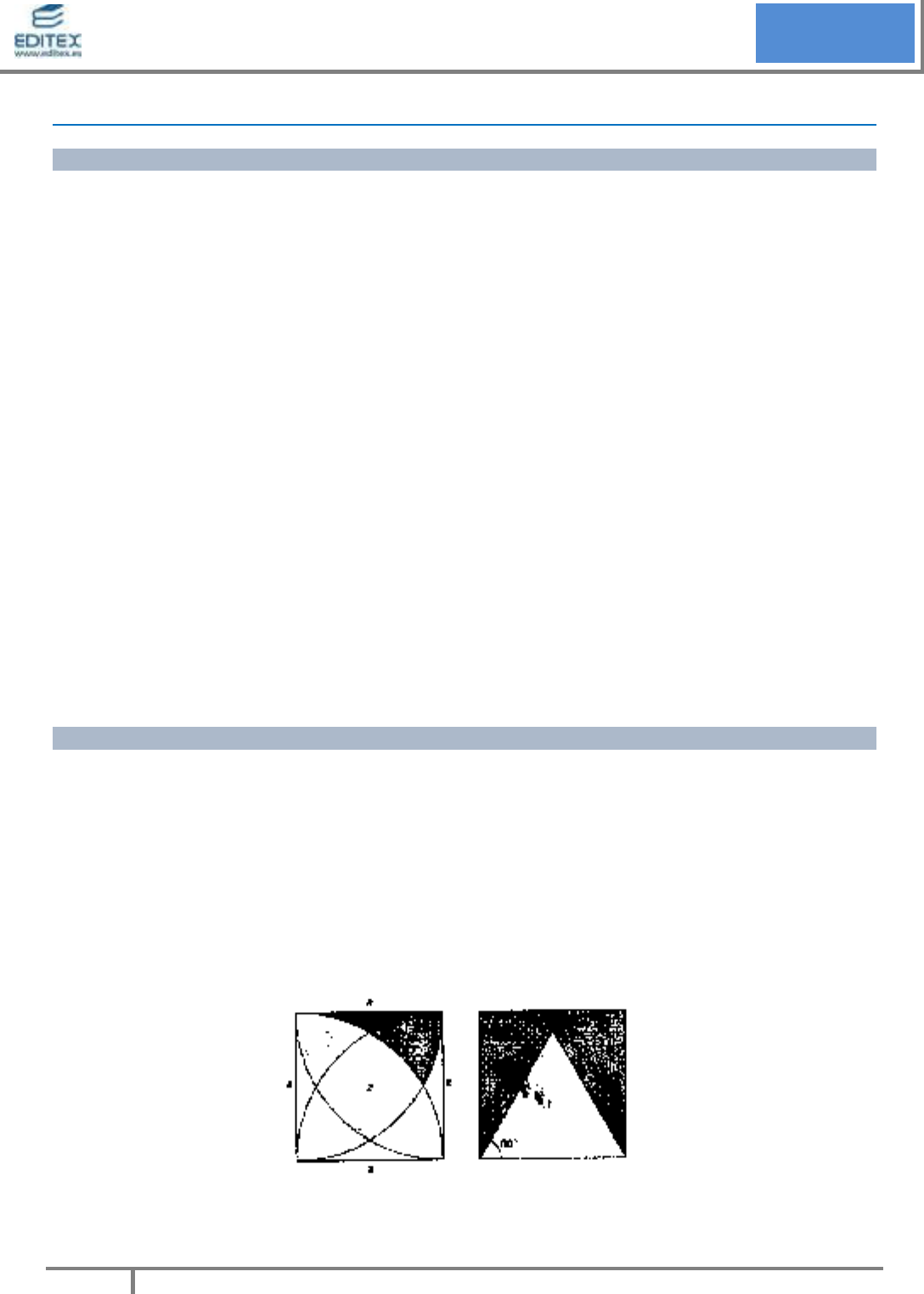 ● En la figura (2) el área pedida es igual al área del cuadrado de lado 10 m menos el área del círculo de radio
