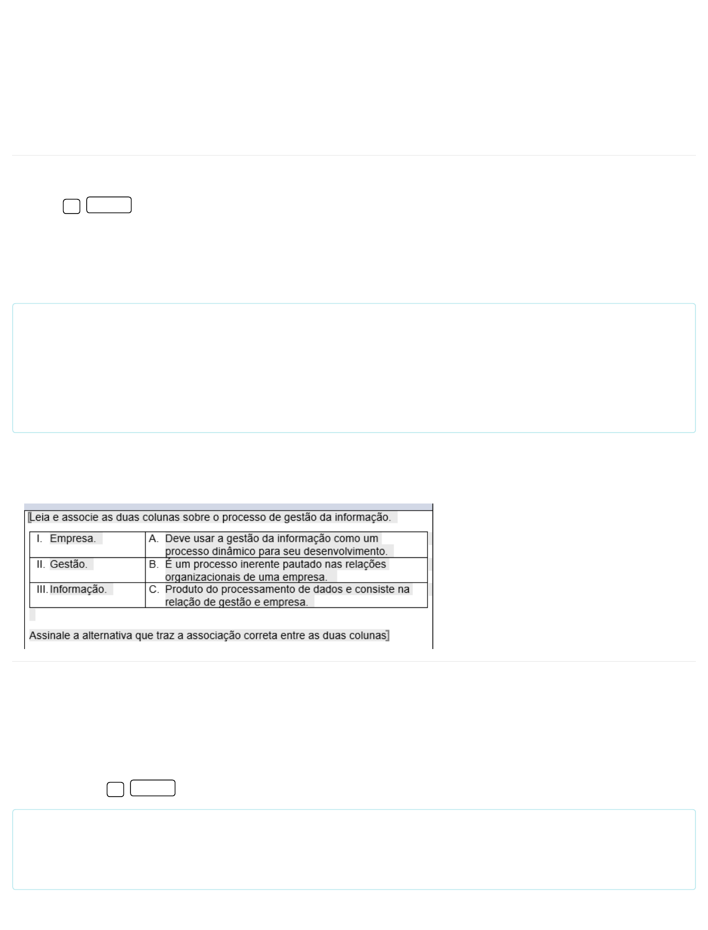 29/02/2024, 08:56 Cosmos · Cosmos https://kroton.platosedu.io/lms/m/aluno/disciplina/index/2895371/6729757 1/4 ECM, GED e contratos inteligentes Professor(a): Rodrigo Fernandes Rebouças (Doutorado) 1) 2) Prepare-se! Chegou a hora de você testar o conhecimento adquirido nesta disciplina. A Avaliação Virtual (AV) é composta por questões objetivas e corresponde a 100% da média final. Você tem até cinco tentativas para “Enviar” as questões, que são automaticamente corrigidas. Você pode responder as questões consultando o material de estudos, mas lembre-se de cumprir o prazo estabelecido. Boa prova! Sobre as ferramentas ECM, podemos afirmar que: I. O componente Capture possibilita o desenvolvimento de informação em formato eletrônico. II. O Gerenciar é uma prática que conecta e modifica por meio do gerenciamento de conteúdo. III. O Store tem como função realizar temporariamente o backup de arquivos. IV. Por meio de recursos de registro do componente Preserve, não é possível realizar o backup das informações, devido à sua capacidade de armazenamento. V. Para fornecer aos clientes e usuários informações solicitadas, não é indicado usar o Deliver. São verdadeiras: Alternativas: I – II – III. CORRETO I – III – V. I – II – IV. III – IV – V. I – III – IV. Código da questão: 57257 Alternativas: I – C; II – B; III – A. I – C; II – A; III – B. I – B; II – A; III – C. I – A; II – C; III – B. I – A; II – B; III – C. CORRETO Código da questão: 57249 Resolução comentada: a afirmação I é verdadeira, pois o Capture é um componente que possibilita converter informações na web; a II é correta, pois o componente Gerenciar conecta e emprega informações por meio de documentos e sistema; e a III é correta, pois o Store realiza o backup instantaneamente. A IV está incorreta, pois o Preserve tem como função realizar o backup das informações, com base nas ferramentas de ECM e disponibilizar. A V está incorreta, pois as informações solicitadaspara serem fornecidas aos clientes, pode-se usar o Deliver. Resolução comentada: o processo formal de aplicação da gestão da informação no âmbito da empresa deve possibilitar melhorias no processo dinâmico, com uma integração e comunicação, construindo um uso como agente facilitador. 29/02/2024, 08:56 Cosmos · Cosmos https://kroton.platosedu.io/lms/m/aluno/disciplina/index/2895371/6729757 2/4 3) 4) 5) Alternativas: I – A; II – B; III – C. I – B; II – C; III – A; I – C; II – A; III – B CORRETO I – A; II – C; III – B. I – C; II – B; III – A. Código da questão: 57256 O que as empresas produzem e consomem anualmente está crescendo exponencialmente diante da inserção da gestão da informação. Esse crescimento é impulsionado principalmente pelo aumento da globalização e das tecnologias de informação, automatizando a empresa e a sociedade. Sobre a evolução das empresas pela globalização, assinale a alternativa correta. Alternativas: O crescimento acelerado potencializou uma desregulação nas empresas. Os avanços não promoveram muitas mudanças nas empresas. O objetivo da globalização é potencializar o uso da tecnologia. O volume de conteúdo produzido pelas empresas possibilitou o surgimento de serviços gerenciais de conteúdo. CORRETO A produção de produtos e serviços é essencial para as empresas. Código da questão: 57253 O gerenciamento de conteúdo empresarial (ECM) são as_________, _________, e _________, utilizados para capturar, armazenar, preservar, entregar conteúdo e documentos relacionados a processos organizacionais. Assinale a alternativa que completa adequadamente as lacunas: Alternativas: Estratégias; métodos; ferramentas. CORRETO Preservações; exclusões; coletas. Tecnologias; ações, gerenciamento. Ações; gerenciamento; entregas. Tentativas; métodos; soluções. Resolução comentada: os negócios existentes possibilitam perceber uma camada de informações que pode ser disponibilizada no repositório, possibilitando apoio ao compartilhamento de documentos. Resolução comentada: com o crescimento de informações produzidas pelas empresas, foi necessário o controle e gerenciamento do volume de conteúdos produzidos. Resolução comentada: o gerenciamento de conteúdo empresarial (ECM) são estratégias, bem como, os métodos e ferramentas utilizados que são para capturar, gerenciar, armazenar, preservar e entregar conteúdo e documentos relacionados a processos organizacionais. 29/02/2024, 08:56 Cosmos · Cosmos https://kroton.platosedu.io/lms/m/aluno/disciplina/index/2895371/6729757 3/4 6) 7) 8) Código da questão: 57254 Qual estratégia pode ser desenvolvida para um ECM eficaz? Alternativas: Não abordar qualquer conteúdo do documento. Entender a evolução do gerenciamento de conteúdo. CORRETO Potencializar as desvantagens do processo na empresa. Descobrir a empresa com o uso dos recursos que possuir. Repensar a organização sem a necessidade de processos. Código da questão: 57259 Qual estratégia pode ser desenvolvida para uma gestão eletrônica de documentos eficaz? Alternativas: Possuir um conjunto de tecnologias para gerar, arquivar e enviar. CORRETO Dificultar a localização de qualquer arquivo. Não disponibilizar os documentos eletronicamente. Não preservar a integridade dos documentos. Realizar o descarte integral do documento. Código da questão: 57266 Alternativas: I – B; II – C; III – A. I – A; II – C; III – B. I – A; II – B; III – C. I – B ; II – A; III – C. I – C; II – B; III – A. CORRETO Código da questão: 57263 Resolução comentada: para desenvolver uma estratégia eficaz e abrangente, deve-se entender os tipos de conteúdo da empresa. Resolução comentada: um bom gerenciamento eletrônico de documento deve possuir uma plataforma ou um software que auxilie no processo de automação dos documentos e sua disponibili