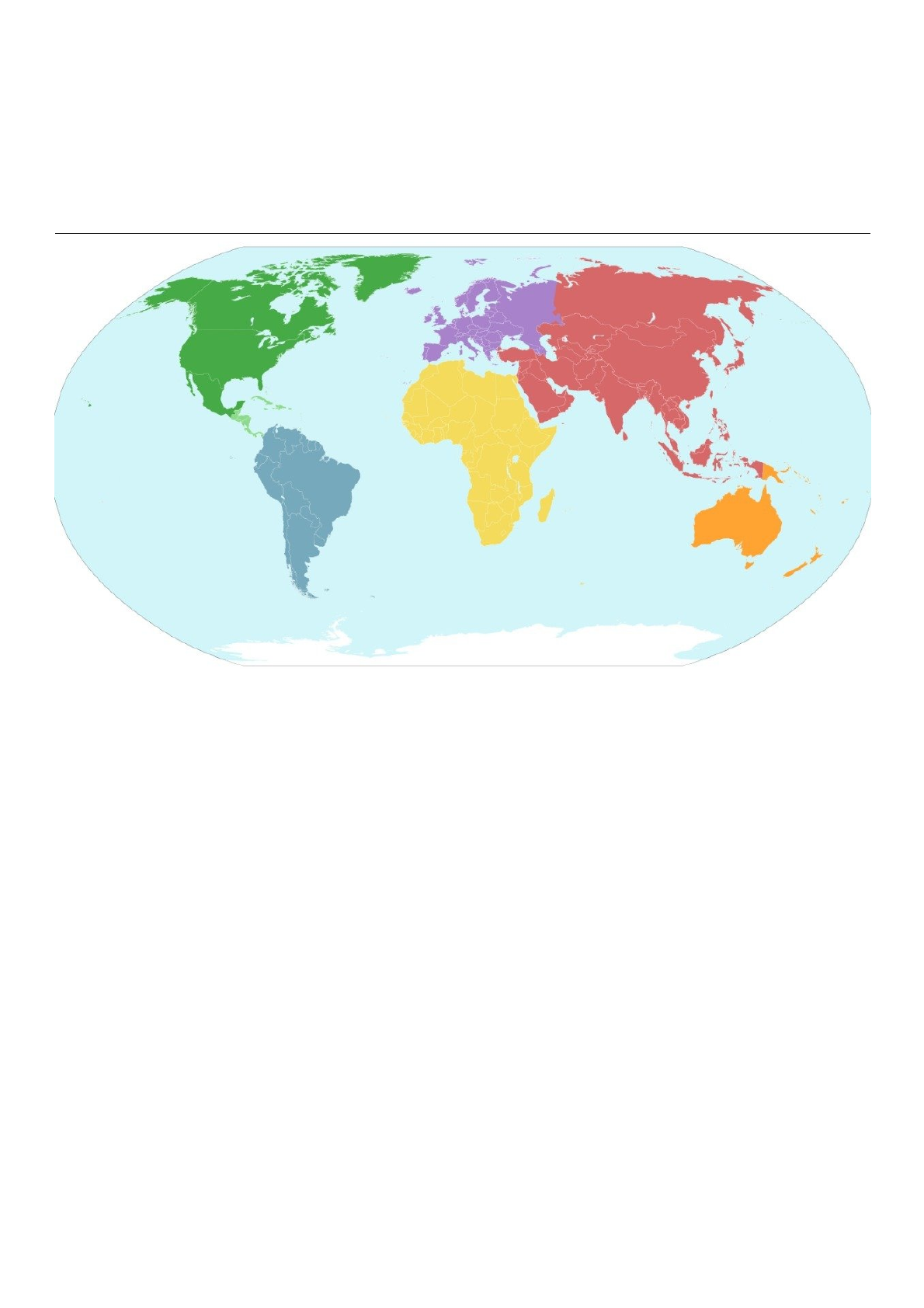 1/5 Continentes: mapa, lista e características 1. Continente é uma grande massa de terra que está cercada por água dos mares e dos oceanos. No mundo, existem 6 continentes, e o Brasil é um país que está localizado no continente americano: 1. África (54 países) 2. América (35 países) 3. Antártida (não contém nenhum país) 4. Ásia (50 países) 5. Europa (50 países) 6. Oceania (14 países) 2/5 Mapa dos seis continentes Os continentes são grandes extensões de terra do planeta que estão acima do nível do mar e não estão cobertas de água. Em termos de proporção, no globo terrestre os continentes ocupam cerca de 30% do espaço, enquanto os outros 70% são cobertos pelos oceanos, rios, mares e lagos. O maior continente do mundo é a Ásia, com 45 milhões de km², e o menor é a Oceania, com 8 milhões de km². Continente Área População Ásia 44,5 milhões de km² 4,5 bilhões de habitantes América 42,5 milhões de km² 1 bilhão de habitantes África 30,3 milhões de km² 1,2 bilhão de habitantes Antártida 13,6 milhões de km² sem população permanente Europa 10,5 milhões de km² 740 milhões de habitantes Oceania 8,5 milhões de km² 37 milhões de habitantes Características principais de cada continente Para saber melhor sobre cada um dos seis continentes do mundo, veja abaixo suas principais características. Ásia: principais características do continente asiático A Ásia é o maior continente do mundo (45 milhões de km²) e também o mais populoso com 4,5 bilhões de habitantes. Ela é banhada pelos oceanos: Pacífico, a leste, Glacial Ártico, ao norte, e Índico, a sul. Embora seja um continente em que estão grandes potências econômicas (Japão, China e Coreia do Sul), há países que apresentam pobreza extrema como o Afeganistão e o Iêmen. O continente asiático, que possui 50 países, é dividido em 6 regiões: 3/5 1. Oriente Médio 2. Subcontinente indiano 3. Sudeste asiático 4. Centro-leste 5. Extremo Oriente 6. Parte asiática da Comunidade de Estados Independentes. As cidades mais populosas da Ásia são: Mumbai, na Índia (13 milhões) Xangai, na China (26 milhões) Karachi, no Paquistão (15 milhões) Nova Delhi, na Índia (12 milhões) Istambul, na Turquia (15 milhões) Leia mais sobre esse continente: América: principais características do continente americano Segundo maior continente do mundo, depois da Ásia, a América possui uma área de 43 milhões de km² e uma população de 1 bilhão de habitantes. Esse continente é banhado pelos oceanos: Pacífico, a oeste, e Atlântico, a leste. Com 35 países, o continente Americano possui uma das maiores potências econômicas mundiais, os Estados Unidos. A América é dividida em três subcontinentes, pois estão localizadas em diferentes placas tectônicas: 1. América do Norte (3 países): placa norte-americana 2. América Central (19 países): placa do caribe 3. América do Sul (13 países): placa sul-americana As cidades mais populosas da América são: São Paulo, no Brasil (12 milhões de habitantes) Lima, no Peru (8 milhões) Cidade do México, no México (8,8 milhões) Nova Iorque, nos Estados Unidos (8,4 milhões) Bogotá, na Colômbia (7,2 milhões) Saiba mais informações sobre esses países: Países da América do Norte Países da América Central Países da América do Sul África: principais características do continente africano Terceiro maior continente do mundo (com uma área de 30 milhões de km²) e segundo mais populoso (população de 1,2 bilhões de habitantes), depois da Ásia. https://undefined/paises-da-america-do-norte/ https://undefined/paises-da-america-central/ https://undefined/paises-da-america-do-sul/ 4/5 Com 54 países, o continente africano é rico em riquezas naturais, mas apresenta diversos problemas sociais. Segundo o relatório do Fundo Monetário Internacional (2019), os países com piores indicadores socioeconômicos são: Burundi, República Centro-Africana e República Democrática do Congo. Esse continente está dividido duas grandes regiões: 1. África do Norte ou África Setentrional (7 países) 2. África Subsaariana (47 países) As cidades mais populosas da África são: Lagos, na Nigéria (31 milhões) Kinshasa, na República Democrática do Congo (17 milhões) Cairo, no Egito (10 milhões) Alexandria, no Egito (5,2 milhões) Nairóbi, no Quênia (4,4 milhões) Entenda tudo sobre as regiões e os países desse continente: Norte da África Antártida: principais características do continente antártico A Antártida, ou Antártica, é o quarto continente do mundo em extensão territorial, com 14 milhões de km². Localizada no hemisfério sul, ela é banhada pelos oceanos: Glacial Antártico, Atlântico, Pacífico e Índico. Diferente dos outros, esse continente não possui população humana permanente. Há habitantes temporários em bases de pesquisa, inclusive brasileiros. O Tratado da Antártida, assinado em 1 de dezembro de 1959 por 12 países, é uma cooperação internacional que estabelece que este território não pertence e não pode ser colonizado por nenhum país. Neste acordo, ficou declarado que os países signatários têm o direito de investigar e trocar informações científicas sobre o local, mas sem exploração econômica. Europa: principais características do continente europeu Também chamada de “velho mundo”, a Europa é o quinto continente do mundo em extensão territorial, com uma área de 10 milhões de km² e uma população de cerca de 740 milhões de habitantes. Localizada no hemisfério norte, ela é banhada pelos oceanos: Glacial Ártico, ao norte, Atlântico, a leste. Com 50 países, o continente europeu possui países com bons índices econômicos e sociais, dos quais se destacam: Alemanha, Reino Unido, França, Suíça, Islândia e Dinamarca. A Europa é dividida em 4 regiões: 1. Europa Ocidental 2. Europa Setentrional 3. Europa Centro-Oriental 4. Europa Meridional https://undefined/norte-da-afri
