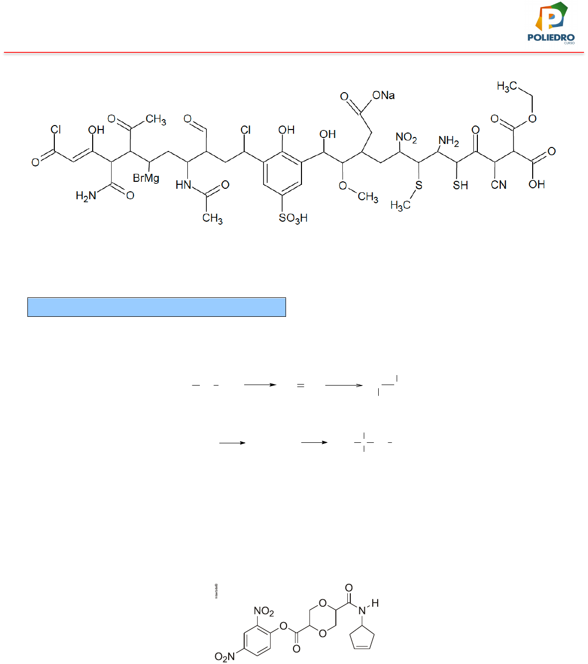 Prof. Calçada 2019 Sinopse de funções 1) Circule os grupos funcionais e dê os nomes das respectivas funções orgânicas. 2) Identifique dois grupos funcionais de caráter ácido e um de caráter básico. 3) Identifique um grupo que pode se converter em uma carbonila. 1) Álcoois podem sofrer reação de desidratação intramolecular ao reagir com ácido sulfúrico concentrado a quente formando alquenos. Os alquenos, por sua vez, sofrem reação de adição de halogênio,. na presença de água, formando haloidrinas (um álcool vicinal a um haleto), com formação de um halogeneto de hidrogênio como subproduto, conforme esquematizado a seguir. Essas reações foram usadas para produzir o composto a seguir a) Escreva a fórmula estrutural do composto orgânico X. b) Escreva a fórmula estrutural do composto orgânico Y. c) Escreva o nome do composto obtido. 2. (Ime 2013 - adaptado) Dentre os produtos da reação de hidrólise total do composto abaixo, um reage com bromo em tetracloreto de carbono a –5°C para gerar, como produto, uma mistura de dois isômeros; outro reage com ácido nítrico em presença de ácido sulfúrico, produzindo ácido pícrico. Determine as estruturas dos produtos da reação de hidrólise mencionada. ! ! ! ! ! ! ! ! ! ! ! ! ! ! ! ! ! ! ! ! ! ! ! ! ! ! ! ! ! ! ! ! ! ! ! ! ! ! ! ! PROF.&RICARDO&CALÇADA&SINOPSE'DE'FUNÇÕES'E'ISOMERIA'PLANA' CH3 CH� OH H2SO4 50 oC CH� CH� Br2 HOH CH� CH� Br OHAS QUESTÕES DISSERTATIVAS, NUMERADAS DE 21 A 30, DEVEM SER RESPONDIDAS NO CADERNO DE SOLUÇÕES. AS QUESTÕES NUMÉRICAS DEVEM SER DESENVOLVIDAS SEQUENCIALMENTE ATÉ O FINAL. Questão 21. Considere a rota de síntese do 1-bromo-2-metil-2-propanol mostrada abaixo: C CH2H3C CH3 OH Br Br2 H2O H2SO4 50 oC X Y a) Escreva a fórmula estrutural do composto orgânico X. b) Escreva a fórmula estrutural do composto orgânico Y. c) Escreva a fórmula estrutural do composto orgânico que seria formado se, ao invés de água, o solvente utilizado na última reação química fosse o metanol. Questão 22. Reações de Grignard são geralmente realizadas utilizando éter dietílico anidro como solvente. a) Escreva a fórmula estrutural do reagente de Grignard cuja reação com gás carbônico e posterior hidrólise produz ácido di-metil-propanóico. b) Por que o solvente utilizado em reações de Grignard deve ser anidro? Escreva uma equação química para justificar sua resposta. Questão 23. Sabendo que o produto de solubilidade do calomelano (cloreto de mercúrio I) é Kps = 2,6 x 10−18 e que seu logaritmo natural é ln(Kps) = −40,5, determine: a) a concentração, em mol·L−1, de Hg22+ e de Cl− numa solução aquosa saturada de calomelano. b) o potencial padrão de um eletrodo de calomelano. Questão 24. Dadas as informações: I. O poder calorífico de um combustível representa a quantidade de calor gerada na combustão por unidade de massa. II. O poder calorífico do H2(g) é aproximadamente 3 vezes o da gasolina. III. O calor latente de ebulição do H2(ℓ) é desprezível frente ao poder calorífico do H2(g). IV. A massa específica do H2(ℓ) é de 0,071 g·cm−3 e a da gasolina é de 0,740 g·cm−3. Com base nestas informações, determine o valor numérico: a) da massa de 45 L de gasolina. b) do volume de H2(ℓ) que, ao sofrer combustão, fornece a mesma quantidade de calor liberada na combustão de 45 L de gasolina. c) do volume que o H2 ocuparia se estivesse na forma de gás, à pressão de 1 bar e a 25 oC. Questão 25. Dado o seguinte mecanismo reacional, constituído de duas etapas elementares (I e II). 1 2 1 k k kI. A M II. M A C− →+!!!!⇀↽!!!! Escreva a expressão para a taxa de variação temporal da concentração do: a) reagente A. b) intermediário M. c) produto C. Questões de classe ITA - Química 1 Prof. Calçada 2019 2 3 – FUVEST 4 – CICLO ITA 2018) A condensação de Knoevenagel consiste em reagir compostos carbonílicos, num mecanismo semelhante ao das condensações aldólicas. Nessas reações o carbono de um grupo carbonila forma uma ligação dupla com o carbono alfa da outra molécula, resultando numa molécula maior com eliminação de água, como mostra a equação 1. a) Adutos de Knoevenagel podem ser obtidos em uma reação do ácido de Meldrum com um composto A. Escreva a fórmula estrutural do composto A. b) O ácido de Meldrum usado na reação anterior, é obtido pela reação de acetona (propanona) com ácido malônico (propanodioico), com eliminação de água, em reação semelhante às apresentadas. Escreva a reação de obtenção do ácido de Meldrum usando fórmulas em bastão. Química – FUVEST 2001 Q.09 A hidrólise ácida de uma nitrila produz um ácido carboxílico. As nitrilas podem ser preparadas pela reação de um haleto de alquila com cianeto de sódio ou pela reação de um composto carbonílico com ácido cianídrico, como ilustrado abaixo: Essas transformações químicas foram utilizadas para preparar, em laboratório, ácido cítrico. Assim sendo, dê a fórmula estrutural a) do ácido cítrico. b) de B. c) de A. Q.10 a) Medidas experimentais mostraram que uma gotícula de um ácido graxo "ômega-6", de volume igual a 3,10 x 10 −3 mL, contém aproximadamente 6,0 x 10 18 moléculas do ácido. Sabendo-se que a fórmula molecular desse ácido é CnH2n−4O2, determine o valor de n, utilizando os dados fornecidos. Mostre seus cálculos e escreva a fórmula molecular do ácido. b) Esse ácido é praticamente insolúvel em água. Quando se adiciona tal ácido à água, ele se distribui na superfície da água. Mostre a orientação das moléculas do ácido que estão diretamente em contato com a água. Represente as moléculas do ácido por CO2H, e a superfície da água por uma linha horizontal. Dados: densidade do ácido nas condições do experimento: 0,904 g/mL. constante de Avogadro: 6,0 x 10 23 mol −1 massas molares (g/mol) H........... 1 C......... 12 O......... 16 Prof. Calçada