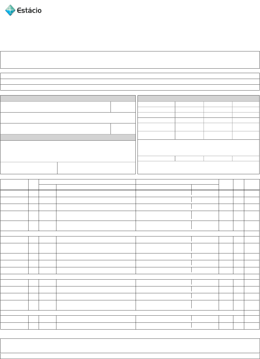 Histórico Escolar CENTRO UNIVERSITÁRIO ESTÁCIO DE RIBEIRÃO PRETO Recredenciamento: Portaria n°1843, de 14/09/2023 publicada no DOU n°178, Seção 1, Pág. 728, de 18/09/2023 Folha: 1/3 (e-MEC 1270) Histórico Escolar de Simples Conferência: Documento emitido apenas para fins de consulta, não representando a versão oficial do Histórico Escolar. O conteúdo deste documento não substitui o emitido na versão certificada. Nome do Aluno: REGINA CELIA DE NAZARE SOUZA Matrícula: 2020.01.07327-2 Nacionalidade: BRASILEIRO(A) Naturalidade: BELÉM-PA Data de Nascimento: 12/10/1970 CPF: 440888842-72 Identidade: 2111414 Órgão/UF Expedidor: SSPPA/PA Ensino Médio: CEARENSE UF: PA Ano de Conclusão: 1991 Forma de Ingresso: VESTIBULAR Total de Pontos: 500 Mês/Ano de ingresso: 01/2020 Período Acadêmico TP Disciplinas Docente Carga Código Nome Nome Titulação Horária Grau SituaçãoFinal 2020.1 M SDE0622 ÉTICA NA SAÚDE CARLA TATIANA VIEIRA DOS ANJOS MESTRADO 44 10,0 AP 2020.1 M SDE3530 BIOLOGIA CELULAR ELISALDO MENDES CORDEIRO MESTRADO 88 9,0 AP 2020.1 M SDE4268 ORGANIZAÇÃO DE POLÍTICAS PÚBLICAS DA SAÚDE CAMILA FRESSATTI FURLANETTO MESTRADO 44 6,0 AP 2020.1 M SDE4471 EDUCAÇÃO ALIMENTAR E NUTRICIONAL TERESA CRISTINA CIAVAGLIA VILARDI OLIVEIRA MESTRADO 88 6,0 AP 2020.1 M SDE4516 FORMAÇÃO PROFISSIONAL E NUTRIÇÃO TERESA CRISTINA CIAVAGLIA VILARDI OLIVEIRA MESTRADO 44 9,0 AP C.R. do Período: 7,86 2020.3 M SDE4438 ANATOMIA SISTÊMICA MAURICIO GARCIA ENNES MESTRADO 110 6,0 AP 2020.3 M SDE4452 BIOQUÍMICA JOELMA FONSECA DE OLIVEIRA FERNANDES DOUTORADO 66 8,0 AP 2020.3 M SDE4535 GENÉTICA MARINA PEIXOTO VIANNA DOUTORADO 44 8,5 AP 2020.3 M SDE4539 HISTOLOGIA E EMBRIOLOGIA MARINA PEIXOTO VIANNA DOUTORADO 88 8,0 AP 2020.3 M* SDE4563 MICROBIOLOGIA E IMUNOLOGIA MARIANA GOVEIA MELO RIBEIRO DOUTORADO 88 8,0 AP C.R. do Período: 7,50 2021.1 M SDE4461 COMPOSIÇÃO DOS ALIMENTOS GIORDANA DEMAMAN AREND MESTRADO 88 7,5 AP 2021.1 M SDE4562 MICROBIOLOGIA E HIGIENE DOS ALIMENTOS GIORDANA DEMAMAN AREND MESTRADO 88 9,0 AP 2021.1 M SDE4572 NUTRIÇÃO HUMANA ANA VITORIA BARBAN MARGUTTI DOUTORADO 88 8,0 AP 2021.1 M SDE4617 TÉCNICA DIETÉTICA RAQUEL BERNARDO NANA DE CASTRO MESTRADO 88 8,0 AP C.R. do Período: 8,13 2021.3 M SDE3532 FISIOLOGIA INTEGRATIVA DO CORPO HUMANO PATRICIA MEDEIROS DA SILVA ESPECIALIZAÇÃO 88 10,0 AP 2021.3 M SDE4443 AVALIAÇÃO NUTRICIONAL ANA VITORIA BARBAN MARGUTTI DOUTORADO 88 6,0 AP DADOS DO CURSO Curso: Nº e-MEC: NUTRIÇÃO 1458327 Titulação: BACHAREL (A) EM NUTRIÇÃO Habilitação: Currículo: 7218 ATOS REGULATÓRIOS Reconhecimento: Portaria n° 23, de 17/12/2017, DOU n° 170, Seção 1, Pág. 44, de 03/09/2018. Duração Máxima do Curso: Cursados pelo Aluno: 16 10 Optativa 44 0 - SITUAÇÃO DO ALUNO Horas Total Cumpridas A Cumprir Mínima 3234 2508 726 G1 44 44 0 G2 44 44 0 Atividades Acadêmicas Complementares (AAC) 150 168 0 Carga Horária Total 3472 2764 726 Endereço da Sede CENTRO UNIVERSITÁRIO ESTÁCIO DE RIBEIRÃO PRETO Rua Abrahão Issa Halack, 980 - Ribeirania - Ribeirão Preto - SP - CEP.: 14096-160 Endereço do Campus/Polo Av. Francisco Sales 23 ,, - Floresta - Belo Horizonte - MG - CEP.: 30.150-220 http://www.estacio.br Histórico Escolar CENTRO UNIVERSITÁRIO ESTÁCIO DE RIBEIRÃO PRETO Período Acadêmico TP Código Nome Nome Carga Horária Grau Situação FinalTitulação Disciplinas Docente Nome do Aluno: REGINA CELIA DE NAZARE SOUZA Matrícula: 2020.01.07327-2 Recredenciamento: Portaria n°1843, de 14/09/2023 publicada no DOU n°178, Seção 1, Pág. 728, de 18/09/2023 Folha: 2/3 (e-MEC 1270) Histórico Escolar de Simples Conferência: Documento emitido apenas para fins de consulta, não representando a versão oficial do Histórico Escolar. O conteúdo deste documento não substitui o emitido na versão certificada. Coeficiente de Rendimento: 7,87 Colação de Grau: Expedição de Diploma: Registro de Diploma: Data Conclusão Curso: Expedição Histórico: 2021.3 M SDE4456 BROMATOLOGIA ANA VITORIA BARBAN MARGUTTI DOUTORADO 88 10,0 AP 2021.3 M SDE4542 HISTÓRIA E ANTROPOLOGIA DA NUTRIÇÃO ANA VITORIA BARBAN MARGUTTI DOUTORADO 44 9,0 AP 2021.3 M SDE4567 NUTRIÇÃO E DIETÉTICA ANA VITORIA BARBAN MARGUTTI DOUTORADO 88 10,0 AP C.R. do Período: 9,00 2022.1 M SDE4427 ADMINISTRAÇÃO DE UNIDADE DE ALIMENTAÇÃO E NUTRIÇÃO RICARDO LAINO RIBEIRO MESTRADO 88 10,0 AP 2022.1 M SDE4505 FARMACOLOGIA APLICADA À SAÚDE ORLANDO CARLOS DA CONCEICAO NETO DOUTORADO 44 10,0 AP 2022.1 M SDE4527 FUNDAMENTOS DE EPIDEMIOLOGIA E BIOESTATÍSTICA ERVYLENE TREVENZOLI DE SOUSA MESTRADO 88 10,0 AP 2022.1 M SDE4601 PSICOLOGIA APLICADA À SAÚDE CRISTINE ROSE MERA MESTRADO 44 10,0 AP 2022.1 M SDE4618 TECNOLOGIA DOS ALIMENTOS KATARZYNA BORTNOWSKA MARINHO MESTRADO 66 9,0 AP C.R. do Período: 9,80 2022.3 M* SDE4568 NUTRIÇÃO EM GERIATRIA ANETE SOUZA MECENAS GONCALVES DOUTORADO 44 9,0 AP 2022.3 M* SDE4570 NUTRIÇÃO ESPORTIVA ANETE SOUZA MECENAS GONCALVES DOUTORADO 44 10,0 AP 2022.3 M* SDE4571 NUTRIÇÃO FUNCIONAL ANETE SOUZA MECENAS GONCALVES DOUTORADO 44 7,5 AP 2022.3 M* SDE4573 NUTRIÇÃO MATERNO INFANTIL ROBERTA CAETANO DOUTORADO 44 9,0 AP 2022.3 M SDE4600 PROJETO DE TCC EM NUTRIÇÃO TERESA CRISTINA CIAVAGLIA VILARDI OLIVEIRA MESTRADO 44 8,5 AP C.R. do Período: 8,80 2023.1 E* CEL0072 METODOLOGIA CIENTÍFICA JOAO CERINEU LEITE DE CARVALHO DOUTORADO 44 10,0 AP 2023.1 M* SDE4139 MARKETING APLICADO À NUTRIÇÃO BRUNA DOS SANTOS NUNES MESTRADO 44 9,5 AP 2023.1 M SDE4514 FISIOPATOLOGIA E DIETOTERAPIA I TERESA CRISTINA CIAVAGLIA VILARDI OLIVEIRA MESTRADO 88 9,5 AP 2023.1 M* SDE4569 NUTRIÇÃO EM SAÚDE COLETIVA ANA ALICE TABORDA DOUTORADO 88 10,0 AP 2023.1 M* SDE4576 PATOLOGIA GLAUCIO DIRE FELICIANO PÓS-DOUTORADO 44 10,0 AP C.R. do Período: 9,79 2023.3 M SDE4482 ESTÁGIO SUPERV. EM SERV. DE ALIMENTAÇÃO E NUTRIÇÃO ANA VITORIA BARBAN MARGUTTI DOUTORADO 242 0,0 RN 2023.3 M* SDE4515 FISIOPATOLOGIA E DIETOTERAPIA II ANANDA DE MESQUITA ARAUJO MESTRADO 88 8,8 AP 2023.3 E* SDE45