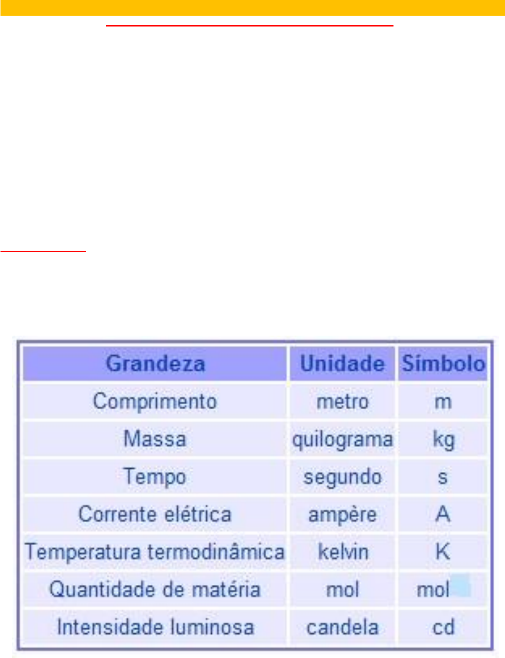 1 O Sistema Internacional de Unidades (S.I.) Sistema Internacional de Unidades (sigla SI do francês Système international d'unités) é a forma moderna do sistema métrico e é geralmente um sistema de unidades de medida concebido em torno de sete unidades básicas e da conveniência do número dez. É o sistema mais usado do mundo de medição, tanto no comércio todos os dias e na ciência. O SI um conjunto sistematizado e padronizado de definições para unidades de medida, utilizado em quase todo o mundo moderno, que visa a uniformizar e facilitar as medições e as relações internacionais daí decorrentes. O antigo sistema métrico incluía vários grupos de unidades. O SI foi desenvolvido em 1960 do antigo sistema metro-quilograma-segundo, ao invés do sistema centímetro-grama-segundo, que, por sua vez, teve algumas variações. Visto que o SI não é estático, as unidades são criadas e as definições são modificadas por meio de acordos internacionais entre as muitas nações conforme a tecnologia de medição avança e a precisão das medições aumenta. O sistema tem sido quase universalmente adotado. As três principais exceções são a Myanmar, a Libéria e os Estados Unidos. O Reino Unido adotou oficialmente o Sistema Internacional de Unidades, mas não com a intenção de substituir totalmente as medidas habituais. Unidades do SI ➢ Básicas Definiram-se sete grandezas físicas postas como básicas ou fundamentais. Por conseguinte, passaram a existir sete unidades básicas correspondentes — as unidades básicas do SI — descritas na tabela. A partir delas, podem- se derivar todas as outras unidades existentes. ➢ Derivadas Todas as unidades existentes podem ser derivadas das unidades básicas do SI. Entretanto, consideram-se unidades derivadas do SI apenas aquelas que podem ser expressas através das unidades básicas do SI e sinais de multiplicação e divisão, ou seja, sem qualquer fator multiplicativo ou prefixo com a mesma função. Desse modo, http://pt.wikipedia.org/wiki/L%C3%ADngua_francesa http://pt.wikipedia.org/wiki/L%C3%ADngua_francesa http://pt.wikipedia.org/wiki/L%C3%ADngua_francesa http://pt.wikipedia.org/wiki/Sistema_m%C3%A9trico http://pt.wikipedia.org/wiki/Sistema_m%C3%A9trico http://pt.wikipedia.org/wiki/Sistema_m%C3%A9trico http://pt.wikipedia.org/wiki/Sistema_m%C3%A9trico http://pt.wikipedia.org/wiki/Sistema_m%C3%A9trico http://pt.wikipedia.org/wiki/Unidades_de_medida http://pt.wikipedia.org/wiki/Unidades_de_medida http://pt.wikipedia.org/wiki/Unidades_de_medida http://pt.wikipedia.org/wiki/Unidades_b%C3%A1sicas_do_SI http://pt.wikipedia.org/wiki/Unidades_b%C3%A1sicas_do_SI http://pt.wikipedia.org/wiki/Unidades_b%C3%A1sicas_do_SI http://pt.wikipedia.org/wiki/Unidades_b%C3%A1sicas_do_SI http://pt.wikipedia.org/wiki/Unidades_b%C3%A1sicas_do_SI http://pt.wikipedia.org/wiki/Unidade_de_medida http://pt.wikipedia.org/wiki/Unidade_de_medida http://pt.wikipedia.org/wiki/Medi%C3%A7%C3%A3o http://pt.wikipedia.org/wiki/Medi%C3%A7%C3%A3o http://pt.wikipedia.org/wiki/Medi%C3%A7%C3%A3o http://pt.wikipedia.org/wiki/Sistema_m%C3%A9trico http://pt.wikipedia.org/wiki/Sistema_m%C3%A9trico http://pt.wikipedia.org/wiki/Sistema_m%C3%A9trico http://pt.wikipedia.org/wiki/1960 http://pt.wikipedia.org/wiki/1960 http://pt.wikipedia.org/wiki/1960 http://pt.wikipedia.org/wiki/Sistema_CGS_de_unidades http://pt.wikipedia.org/wiki/Sistema_CGS_de_unidades http://pt.wikipedia.org/wiki/Sistema_CGS_de_unidades http://pt.wikipedia.org/wiki/Sistema_CGS_de_unidades http://pt.wikipedia.org/wiki/Sistema_CGS_de_unidades http://pt.wikipedia.org/wiki/Sistema_CGS_de_unidades http://pt.wikipedia.org/wiki/Myanmar http://pt.wikipedia.org/wiki/Myanmar http://pt.wikipedia.org/wiki/Lib%C3%A9ria http://pt.wikipedia.org/wiki/Lib%C3%A9ria http://pt.wikipedia.org/wiki/Lib%C3%A9ria http://pt.wikipedia.org/wiki/Estados_Unidos http://pt.wikipedia.org/wiki/Estados_Unidos http://pt.wikipedia.org/wiki/Estados_Unidos http://pt.wikipedia.org/wiki/Reino_Unido http://pt.wikipedia.org/wiki/Reino_Unido http://pt.wikipedia.org/wiki/Reino_Unido 2 há apenas uma unidade do SI para cada grandeza. Contudo, para cada unidade do SI pode haver várias grandezas. Às vezes, dão-se nomes especiais para as unidades derivadas. Segue uma tabela com as unidades SI derivadas que recebem um nome especial e símbolo particular: 1 Em Portugal: esterradiano. É fácil de perceber que, em tese, são possíveis incontáveis (por extensão, "infinitas") unidades derivadas do SI (por exemplo; m², m³, etc.), tantas quantas se possam imaginar com base nos princípios constitutivos fundamentais. As tabelas que se seguem não pretendem ser uma lista exaustiva. São, tão-somente, uma apresentação organizada, tabulada, das unidades do SI das principais grandezas, acompanhadas dos respectivos nomes e símbolos. Na primeira tabela, unidades que não fazem uso das unidades com nomes especiais: http://pt.wikipedia.org/wiki/Esterradiano http://pt.wikipedia.org/wiki/Esterradiano http://pt.wikipedia.org/wiki/Esterradiano http://pt.wikipedia.org/wiki/M%C2%B2 http://pt.wikipedia.org/wiki/M%C2%B2 http://pt.wikipedia.org/wiki/M%C2%B2 http://pt.wikipedia.org/wiki/M%C2%B3 http://pt.wikipedia.org/wiki/M%C2%B3 3 Algumas unidades do S.I. são empregadas juntamente com outras que não fazem parte do S.I., já estando amplamente difundidas. Veja no quadro a seguir: Unidades não Pertencentes ao Sistema Internacional 4 EXERCÍCIOS DO PROFESSOR 01. Converta para unidades S.I.: a) 23km b) 1350cm c) 78541mm d) 12min e) 4h f) 0,3h g) 0,8t h) 750g i) 154 l 02. Escreva os seguintes números em Notação Científica: a) 600 000 b) 30 000 000 c) 500 000 000 000 000 d) 7 000 000 000 000 000 000 000 000 000 000 000 e) 0, 000 4 f) 0, 000 000 01 g) 0, 000 000 000 000 000 6 h) 0, 000 000 000 000 000 000 000 000 000 000 000 0000 000 000 000 008 5 Cinemática Escalar Cinemática (do grego κινημα, movimento) é o ramo da Física que se ocupa da descrição 