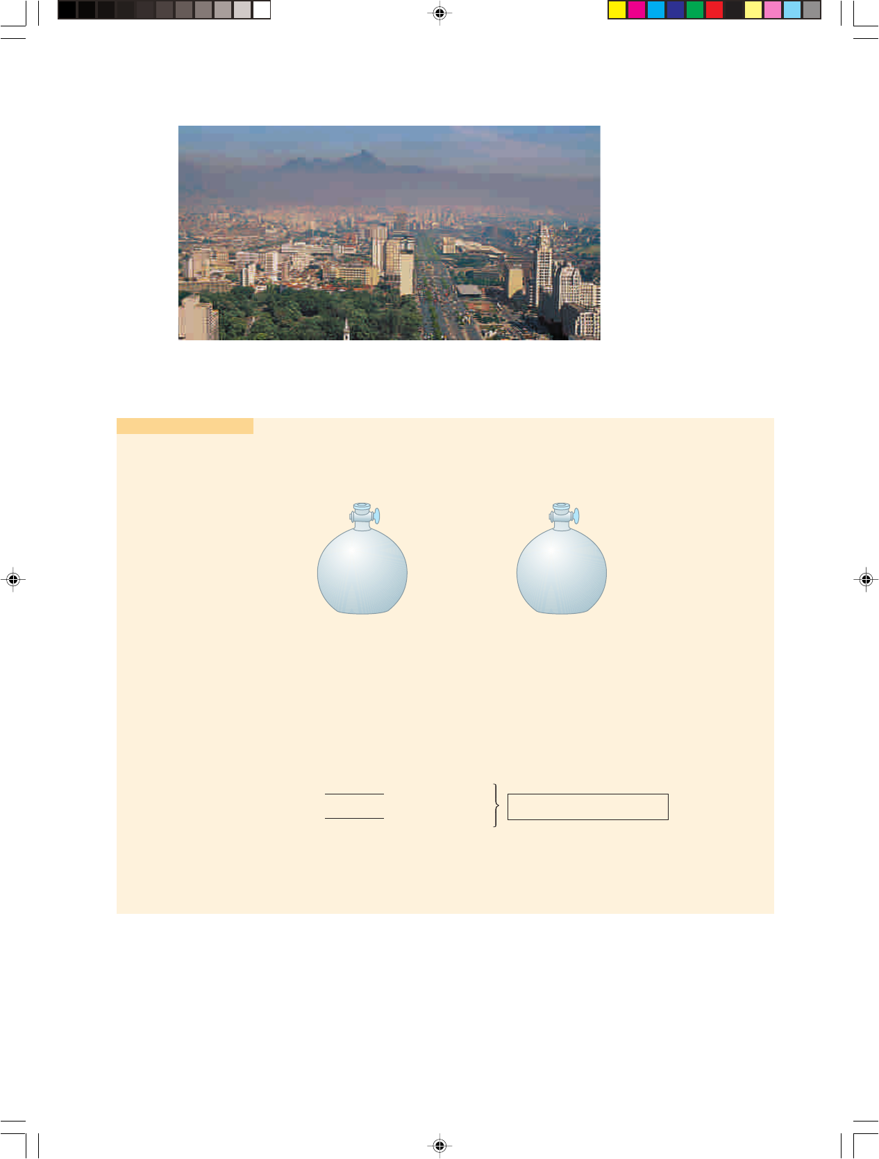 R ep ro du çã o pr oi bi da .A rt .1 84 do C ód ig o P en al e Le i 9 .6 10 de 19 de fe ve re iro de 19 98 . 309Capítulo 12 • ESTUDO DOS GASES 98 (PUC-Campinas-SP) A dispersão dos gases SO2, NO2, O3, CO e outros poluentes do ar fica prejudicada quando ocorre a inversão térmica. Considere que, numa dessas ocasiões, a concentração do CO seja de 10 volumes em 1 # 106 volumes de ar (10 ppm % 10 partes por milhão). Quantos m3 de CO há em 1 # 103 m3 do ar? a) 100 b) 10,0 c) 1,00 d) 0,10 e) 0,010 Exercício resolvido 99 (UFRJ) As figuras abaixo mostram dois balões iguais e as condições de temperatura e pressão a que eles estão submetidos. O balão A contém 41 L de oxigênio puro, e o B contém uma mistura de oxigênio e vapor d’água (oxigênio úmido). P = 3 atm t = 27 °C A O2 (g) P = 3 atm t = 27 °C B O2 (g) H2O (g) a) Quantas moléculas de oxigênio existem no balão A? b) Qual dos dois balões é o mais pesado? Justifique sua resposta. Resolução a) Cálculo da quantidade de mols de O2 existente no balão A: PV % nRT ⇒ 3 # 41 % n # 0,082 # 300 ⇒ n % 5 mol de O2 Cálculo do número de moléculas de O2 em A: b) O balão A é mais pesado. De fato, os dois balões têm V, P e T iguais. Pela lei de Avogadro, eles encerram o mesmo número de moléculas. No balão A, todas as moléculas são de O2 (com massa molar % 32 g). No balão B, há moléculas de O2 e algumas moléculas de H2O (massa molar % 18 g), que pesam menos que O2 e portanto darão massa final menor que a do balão A. 1 mol de O2 6 # 10 23 moléculas 5 mol de O2 x x % 3 # 1024 moléculas de O2 100 (ITA-SP) Dois balões de vidro, A e B, de mesmo volume contêm ar úmido. Em ambos os balões a pressão e a tempera- tura são as mesmas, a única diferença sendo que no balão A a umidade relativa do ar é de 70% enquanto no balão B ela é de apenas 10%. Em relação ao conteúdo destes dois balões é errado afirmar que: a) Os dois balões contêm o mesmo número de moléculas. b) Os dois balões contêm a mesma quantidade de gás, expressa em mol. c) No balão B há maior massa de nitrogênio. d) No balão A há maior massa total de gás. e) A quantidade (mol) e a massa (grama) de vapor de água são maiores no balão A. D E LF IM M A R TI N S / P U LS A R Vista do Rio de Janeiro, vendo-se a avenida Presidente Vargas e uma faixa de poluição ao fundo (1997). Capitulo 12C-QF1-PNLEM 29/5/05, 20:55309 R ep ro du çã o pr oi bi da .A rt .1 84 do C ód ig o P en al e Le i9 .6 10 de 19 de fe ve re iro de 19 98 . 310 101 (UFPI) Sabemos que o gás etileno-C2H4 emitido pelas próprias frutas é responsável por seu amadurecimento. A resposta que explica por que uma penca de bananas amadurece mais rápido quando “abafada” (fechada em um saco plástico), do que em uma fruteira é: a) menor grau de umidade. b) maior pressão parcial do gás etileno. c) menor temperatura ambiente. d) ausência de luz. e) menor concentração do gás etileno. 102 Misturando-se 4 g de hidrogênio (H2) e 16 g de oxigê- nio (O2) num recipiente de 82 L mantido a 27 °C, per- gunta-se: a) Quais as frações molares dos dois gases? b) Quais suas pressões parciais? c) Qual a pressão total da mistura? 103 (Mackenzie-SP) No interior de um cilindro de êmbolo móvel e de massa desprezível, encontram-se aprisiona- dos 2,0 g de hélio e 0,25 mol de hidrogênio gasosos. Se a temperatura é de 127 °C e a capacidade do cilindro de 10 L, a pressão que deverá ser aplicada ao êmbolo para que este permaneça em equilíbrio estático será: a) 2,46 atm b) 1,64 atm c) igual à pressão atmosférica normal d) 1.520,00 mmHg e) 1.246,40 mmHg (FEI-SP) As duas questões a seguir estão relacionadas com o seguinte enunciado: Um recipiente fechado con- tém 1,2 # 1023 moléculas de dióxido de carbono (CO2), 0,6 mol de oxigênio (O2) e 33,6 g de nitrogênio, à pres- são de 750 mmHg. 104 A massa molecular aparente da mistura gasosa é: a) 34,67 c) 61,6 e) 30,8 b) 52 d) 58,6 105 A pressão parcial de O2 na mistura gasosa, em milíme- tros de mercúrio, é: a) 525 c) 75 e) 450 b) 225 d) 250 106 (UCB-DF) Uma amostra de ar foi coletada no interior do túnel Rebouças, Rio de Janeiro, para verificação do nível de poluição do seu interior. O volume do cilindro do ar coletado era igual a 0,1 m3 e a temperatura mé- dia observada no interior do túnel foi de 27 °C. A análi- se da amostra de ar indicou que na amostra coletada havia 1 mol de NO2; 2 mols de SO2 e 2 mols de CO. (Dados: N % 14; O % 16; C % 12 e S % 32.) Analise as afirmativas seguintes, julgando-as como ver- dadeiras ou falsas. 0. O número total de moléculas na mistura gasosa co- letada é igual a 5. 1. Supondo que os gases são ideais R % 0,082 atm L mol K # # , pode-se afirmar que a pressão total dentro do cilindro nas condições especificadas era igual a 12,3 atm. 2. A percentagem em massa do gás NO2 na mistura é igual a 20%. Massas atômicas: H % 1; O % 16 3. O volume de ar amostrado, 0,1 m3 a 27 °C, corresponde a 0,15 L na temperatura de 450 K. 4. Gás ideal é aquele que não apresenta desvios da equação de estado, ou seja, segue a equação PV % nRT. 107 (UFC-CE) O monóxido de carbono é um dos poluentes do ar presente especialmente em zona urbana. A pres- são do monóxido de carbono de 0,004 atm, no ar, re- sulta em morte, em pouco tempo. Um carro ligado, porém parado, pode produzir, entre outros gases, 0,60 mol de monóxido de carbono por minuto. Se uma garagem a 27 °C tem volume de 4,1 # 104 L, em quanto tempo, na garagem fechada, atinge-se a concentração letal de CO? Observação: Considere que a pressão, na garagem, per- manece constante e que não há monóxido de carbono presente, inicialmente constante dos gases % 0,082 atm L mol K # # . 108 (FMTM-MG) O limite superior recomendado de amô- nia em um ambiente de trabalho é de 50 ppm em volu- me. Considere que um determinado indivíduo inspira cerca de 39 kg de ar por dia e que o mesmo trabalha numa fábrica 