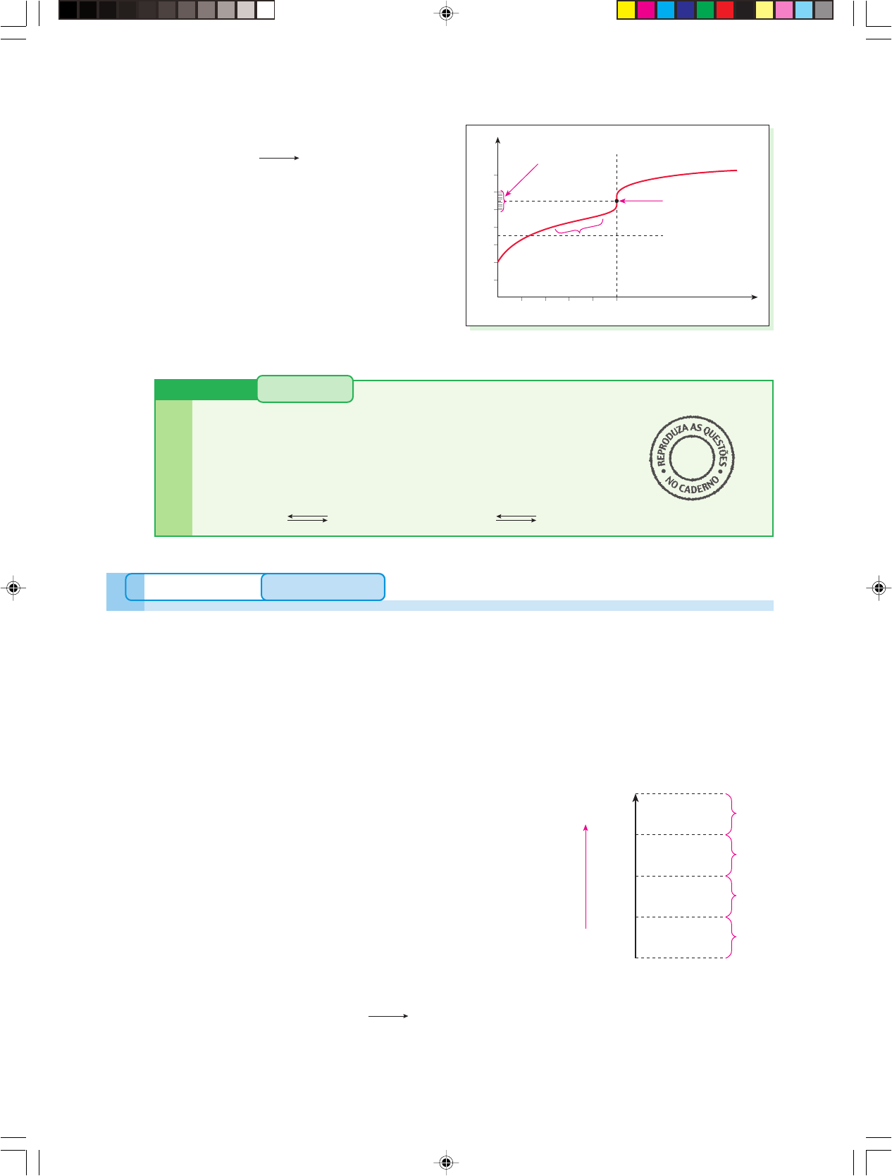 R ep ro du çã o pr oi bi da .A rt .1 84 do C ód ig o P en al e Le i9 .6 10 de 19 de fe ve re iro de 19 98 . 248 Terceiro caso: ácido fraco e base forte Consideremos, por exemplo, a titulação do vi- nagre: CH3COOH " NaOH CH3COONa " H2O Nesse caso, ocorre o inverso do que ocorreu no caso anterior — no final da reação, teremos um pH maior que 7, pois o sal formado (CH3COONa) por hidrólise dá uma solução de caráter básico (veja pá- gina 244). A subida da curva também será suave de- vido ao efeito tampão. E, evidentemente, seremos obrigados a usar indicadores com ponto de viragem adequado (acima de pH % 7), como por exemplo, a fenolftaleína (página 238). Ácido neutralizado (%) pH Ponto de equivalência 2 0 4 6 8 10 12 14 20 100806040 Faixa de viragem do indicador pH = 7 Solução- tampão O caráter ácido-básico das soluções salinas 80 (Unifor-CE) Carbonato de sódio, quando dissolvido em água, origina solução básica. Isso porque o ânion do sal interage com íons H" (aq) da água originando o quê? a) Ácido fraco. c) Sal básico pouco solúvel. e) Gás de caráter ácido. b) Base fraca. d) Sal ácido pouco solúvel. 81 (UFSM-RS) Qual o caráter das soluções resultantes da hidrólise dos sais NaCl (sal de cozinha), NaHCO3 (usado como fermento) e NH4NO3 (usado na fabricação de fertilizantes), respectivamente? a) neutro, básico, ácido. c) básico, ácido, neutro. e) básico, neutro, básico. b) ácido, neutro, básico. d) neutro, ácido, ácido. 82 (Unifor-CE) Ao lado é apresentada uma escala relativa da % de ionização de alguns ácidos, em solução aquosa. (Dado: NaOH é uma base, em solução aquosa, 100% ionizada) Considerando esses dados, pode-se afirmar corretamente que quando dis- solvidos em água: I. NaCl e Na2SO4 dão uma solução de caráter ácido. II. Na3PO4 e NaF dão uma solução de caráter básico. III. Na2S e Na2CO3 dão uma solução de caráter neutro. Está correto o que se afirma somente em: a) I. c) III. e) II e III. b) II. d) I e II. Ácido A ci de z au m en ta 100% ionizado HCl H2SO4 H3PO4 HF H2CO3 H2S H2OIonização negligenciável Forte Médio Fraco Fraquíssimo 83 (Mackenzie-SP) Presente em alguns cremes dentais e em “sal de frutas”, o bicarbonato de sódio dissolve-se quando coloca- do em água, conforme a equação: NaHCO3 (s) " H2O (l) W (g) " H2O (l) " Na 1" (aq) " X1# (aq) Dessa forma, W, X1# e o pH da solução obtida são, respectivamente: a) CO2; HCO3 1# e pH menor que 7. c) H2CO3; OH 1# e pH igual a 7. e) CO2; OH 1# e pH menor que 7. b) CO2; OH 1# e pH maior que 7. d) H2CO3; HCO3 1# e pH maior que 7. a) O que é reação de hidrólise de um sal? b) Quem, na realidade, sofre hidrólise? c) O íon que sofre hidrólise libera o que da água? d) Por que a reação de hidrólise muda o pH da solução? e) Represente as constantes de hidrólise das seguintes reações: A" " H2O H " " AOH e B# " H2O HB " OH #. REVISÃO Responda emseu caderno EXERCÍCIOS Registre as respostasem seu caderno Capitulo 06B-QF2-PNLEM 4/6/05, 17:33248 R ep ro du çã o pr oi bi da .A rt .1 84 do C ód ig o P en al e Le i 9 .6 10 de 19 de fe ve re iro de 19 98 . 249Capítulo 6 • EQUILÍBRIOS IÔNICOS EM SOLUÇÕES AQUOSAS 84 (Vunesp) Quando se adiciona o indicador fenolftaleína a uma solução aquosa incolor de uma base de Arrhenius, a solução fica vermelha. Se for adicionada a uma solução aquosa de um ácido de Arrhenius, a solução continua incolor. Quando se dissolve cianeto de sódio, a solução fica vermelha após adição de fenolftaleína. Se a fenolftaleína for adicionada a uma solução aquosa de cloreto de amônio, a solução continua incolor. a) Explique o que acontece no caso de cianeto de sódio, utilizando equações químicas. b) Explique o que acontece no caso de cloreto de amônio, utilizando equações químicas. 85 (PUC-Campinas-SP) Como são, em geral, os solos que contêm altos teores de ferro e alumínio sob forma de íons? a) ácidos, devido ao fato de sofrerem oxidação. d) básicos, devido ao fato de sofrerem oxidação. b) ácidos, devido ao fato de sofrerem hidrólise. e) básicos, devido ao fato de sofrerem hidrólise. c) ácidos, devido ao fato de sofrerem redução. 86 (UFU-MG) A água sanitária, utilizada no branqueamento de roupas, como bactericida e em muitas outras aplicações, é uma solução aquosa de hipoclorito de sódio (dados: HClO é ácido fraco; Ka % 3,5 " 10 #8). Como deve ser essa solução? a) ser má condutora de eletricidade, pois a maior parte do composto se encontra como moléculas não dissociadas. b) apresentar pH % 7,0, pois se trata de um sal derivado do HClO e NaOH. c) apresentar pH ' 7,0, porque há formação de HClO, que, sendo ácido fraco, ioniza parcialmente na água, formando H". d) apresentar pH ( 7,0, porque o ânion sofre hidrólise em água. A constante de hidrólise 87 Escreva a expressão da constante de hidrólise para as soluções aquosas dos seguintes sais: a) NH4NO3 b) KNO2 c) CH3COONH4 Exercício resolvido 88 Calcule a constante de hidrólise do cloreto de amônio, sabendo que em solução 0,001 mol/L esse sal está 10% hidrolisado. Calcule também o pH da solução. Resolução • Cálculo da constante de hidrólise Considerando que a dissociação NH4Cl NH4 " " Cl# é completa, concluímos que o 0,001 mol/L de NH4Cl produzirá 0,001 mol/L de NH4 " e 0,001 mol/L de Cl#. Como a hidrólise é um equilíbrio como outro qualquer, podemos empregar a tabela usual, em que somente o NH4 " (“íon fraco”) irá hidrolisar-se e em que teremos α % 10%, ou seja, α % 0,10. Note que a coluna de H2O foi deixada em branco, pois a concentração de H2O — [H2O] — não aparece na expressão da constante de hidrólise: K K Kh 4 4 h h 5NH OH H NH 0,0001 0,0001 0,0009 1,11 10% % % " " #[ ][ ] [ ] ⇒ ⇒" " • Cálculo do pH da solução Da tabela anterior, tiramos: [H"] % 0,0001 ⇒ [H"] % 10#4 ⇒ pH % #log [H"] % #log 10#4 ⇒ pH % 4 NH"4 " H2O NH4OH " H " Molarid