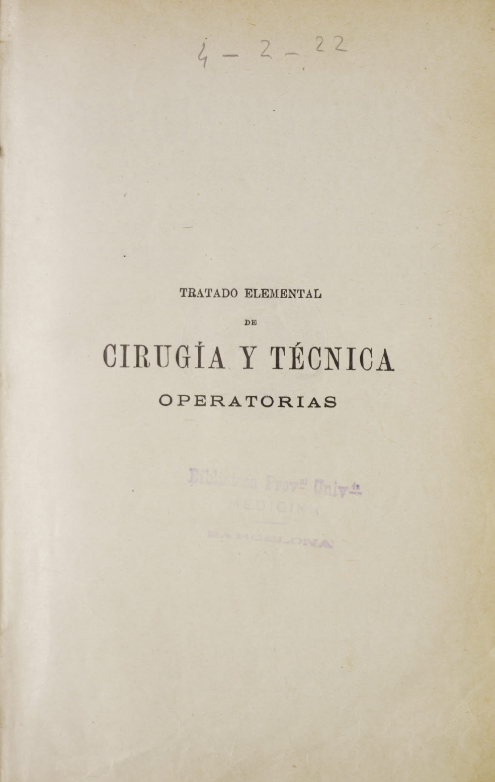 TRATADO ELEMENTAL DE CIRUGÍA Y TÉCNICA OPERATORIAS PROFESOR DE CLÍNICA QUIRÚRGICA DI LA FACULTAD DE MEDICINA DE TOULOUSB TRATADO ELEMENTAL DE Y UBICA OPERATORIAS POR LOS DOCTORES V. CH ALOT ET. CESTAN EDICIÓN COMPLETAMENTE MODIFICADA POR EL DR. ET. GESTAN PROFESOR AGREGADO ENCARGADO DEL CURSO DE CLÍNICA QUIRÚRGICA DE LA FACULTAD DE MEDICINA DE TOULOUSE CIRUJANO DE LOS HOSPITALES SEXTA EDICIÓN ESPANOLA, REVISADA Y ANOTADA POR EL DR. D. RAMÓN TORRES CASANOVAS CATEDRÁTICO DI CLÍNICA QUIRÚRGICA DE LA UNIVERSIDAD La BARCELONA T CON EL PROLOGO DE LA EDICIÓN ANTERIOR DEL DR. D GIL SALTOR Y LAVALL Catedrático de Patología yClínica quirúrgicas en la Facultad de Medicina de Barcelona Ilustrado con 1,339 grabados B XRCELONA. HIJOS DE J. ESPASA , EDITORES b;9 Y 581, CALLE I•it LAS CORTES, b7 Y OS' — Es propiedad f?. C4 q TIPOGRAPi• O HUOS DB J. ESPAGAL, CALLE DE LAS COSTES, 579 Y 581.-B•PCIL$.011A PRÓLOGO CJE LA QUINTA EDICIÓN «Dista mucho de ser tarea fácil la de escribir un Tratado de Opera toria quirúrgica, si se desea que el libro llene cumplidamente las con diciones que pueden exigírsele y que en realidad hay que buscar en las obras de esta clase: en efecto, aunque se limite en lo posible el cuadro de materias, aun prescindiendo de detalles que sólo incumben a un especialista, aunque el autor se concrete a tratar sólo lo que de un modo más directo atane a las operaciones propiamente dichas, es decir, al estudio detenido de las indicaciones de la intervención quirúrgica y a exponer con claridad la manera cómo debe ésta llevarse a cabo, siem pre resulta vastísimo el campo que hay que abarcar y es, por lo tanto, muy difícil no queden olvidados, o sean vistos muy a la ligera, puntos de relativo interés. A medida que va progresando la Cirugía acrecen también las dificultades, pues, aun formado el propósito de no tratar más que lo relativo a las indicaciones y a la técnica de las intervencio nes cruentas, el vuelo cada día mayor de la Operatoria hace que pocas veces pueda tener el autor experiencia personal suficiente para juzgar con acierto todos y cada uno de los múltiples asuntos de que habrá de ocuparse. »Para formular con acierto las indicaciones generales de una ope ración es preciso, ante todo, conocimiento exacto, no sólo de la región anatómica (que éste es siempre absolutamente indispensable al ciru jano), sino también de las lesiones y procesos morbosos que puedan motivar aquélla, y es necesario asimismo recto criterio para apreciar V.II PRÓLOGO DE LA QUINTA EDICIÓN debidamente los resultados próximos y lejanos que de la intervención cruenta puedan esperarse, así por lo que respecta a la parte interesada, como por lo que se refiere al individuo en conjunto según las diversas circunstancias en que se hallare colocado. Estas y no otras han de ser las fuentes de las indicaciones que decidan al cirujano a intervenir con mano armada: proceder de otra suerte es exponerse quizá a lamentables fracasos, ya en el mismo acto operatorio, ya con posterioridad si se puede averiguar el estado ulterior, definitivo, del operado: no hemos de p iiisar solamente en la mayor o menor brillantez de la intervención qui rúrgica y en el éxito inmediato de la misma, sino también en la utili dad que para el paciente debe la operación reportar; jamás deberemos decidirnos a operar, aun cuando a ello se nos inste reiteradamente, aun cuando con ello pudiéramos de momento alcanzar nosotros beneficio moral, llevando a cabo una difícil y atrevida intervención que baste para acreditar nuestra serenidad y destreza, si no tenemos motivos fun dados para creer que hemos de proporcionar un bien al enfermo, así por 13 que a su estado inmediato se refiere como por lo que dice relación a lis condiciones en que podrá continuar gozando de la existencia una vez haya curado definitivamente la herida. *No menor interés ofrece todo lo relativo a la Técnica operatoria propiamente dicha: en esta parte resalta también en gran manera lo acertado o desacertado del criterio de un autor. No basta exponer más o menos detenidamente todos los diversos métodos y procedimientos que pueden seguirse para llevar a cabo una operación determinada; es más, S3 nos figura que enumerar uno a uno los infinitos procedimientos i leados por los cirujanos para las diferentes intervenciones cruentas es ciando menos inútil, si no perjudicial, a no ser que se quiera escribir una obra interminable, propia sólo para consultar en alguno que otro caso, pues esas listas de tantos y tantos procederes, a veces distintos solamente en pequenos detalles, son buenas únicamente para demostrar erudición, pero en la práctica sirven de muy poca cosa, porque resulta casi imposible recordar sin equivocarse esa larga serie de nombres y de ligeras variantes técnicas, y porque la mayoría de las veces frente a cada enfermo no puede seguirse con escrupulosa minuciosidad este o aquel procedimiento, sino que el cirujano ha de alterarlo, ha de modi ficarlo según convenga. He aquí por qué a nuestro entender es prefe rible no fatigar inútilmente la memoria y llenar crecido número de • PRÓLOGO DE LA QUINTA EDICIÓN I X. Opinas exponiendo métodos y más métodos, procedimientos y más pro cedimientos, para la realización de cada operación quirúrgica, y en vez de ello, estudiadas ya las indicaciones, describir sólo los métodos gene rales que pueden seguirse y uno o dos procedimientos, los que la expe riencia propia haya demostrado ser más ventajosos, para efectuar la intervención cruenta. Por mucha extensión que se diera a esta parte, sin duda la más importante de la Operatoria, fuera imposible citar abso lutamente todos los procederes ideados y siempre resultarían en la clínica infi_idad de casos en que no pudiéramos ajustarnos de un modo preciso y exacto a ninguno de ellos. Conocidos los métodos generales que pueden elegirse para una operación determinada, deben describirse, por lo me