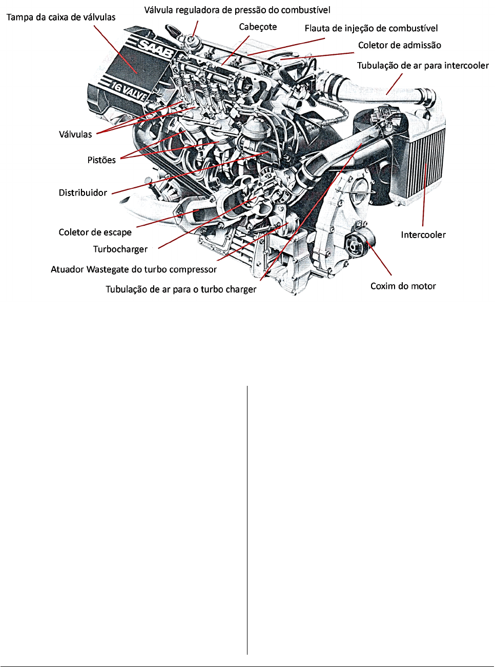 5-1 Motores a Combustão Interna Prof. Fernando Porto Curso Eng. Mecânica - UNITAU 5. PRINCIPAIS COMPONTENTES MÓVEIS DO MOTOR 5.1. PRINCIPAIS COMPONENTES DO MOTOR Figura 5-1: Motor a combustão interna, alternativo, e alguns dos seus componentes. Os componentes dos motores a combustão interna, alternativos, podem ser classificados em relação as suas características de funcionamento: componentes fixos, móveis e auxiliares. A lista a seguir menciona os principais deles: Componentes fixos: Bloco Cabeçote Cárter Cilindro Componentes móveis: Anéis Biela Bronzinas ou casquilhos Eixo comando de válvulas Molas Pino do pistão Pistão Válvulas Virabrequim Volante Componentes auxiliares: Alternador Bicos injetores Bomba d'água Bomba de combustível Bomba de óleo lubrificante Coletor de admissão Coletor de escape Distribuidor Filtros de ar Filtros de combustível Filtros de óleo Flauta de injeção Intercooler Turbo compressor Velas etc. 5-2 Motores a Combustão Interna Prof. Fernando Porto Curso Eng. Mecânica - UNITAU Este capítulo tem por objetivo apresentar os componentes móveis. 5.2. VÁLVULAS As válvulas são feitas de aço de alta qualidade e resistência mecânica, e, no caso da válvula de escape, de elevada resistência ao calor, pois estas podem operar em temperaturas que excedam 700oC. Figura 5-2: Válvula A) Pinças de válvula: fixam a haste da válvula ao retentor da mola, que é a peça que permite que a mola traga a válvula para o seu assento B) Retentor da mola. C) Mola: mantém a válvula sob o controle do eixo comando de válvulas, e a mantém firme em seu assento quando fechadas. D) Vedação da haste da válvula: impede que o óleo seja escoe através do guia de válvula para a câmara de combustão. E) Parte do cabeçote que contém o assento e a guia da válvula. F) Válvula: O assento da válvula normalmente é cortado em 44,5o na cabeça da válvula; já o acoplamento do assento de válvula no cabeçote é cortado em um ângulo de 45o. Isto proporciona uma vedação hermética quando a válvula está fechada. Figura 5-3: Detalhes da válvula. A guia da válvula mostrada na Figura 5-3 é um cilindro oco inserido no cabeçote e seu propósito é garantir que a válvula permaneça concêntrica com o assento da válvula. As guias de válvulas são normalmente feitas de ferro fundido ou bronze de fósforo. Um outro arranjo comum, usado normalmente em cabeças de cilindro em ferro fundido, é a guia da válvula ser parte integrante do cabeçote (como mostrado na citada figura). Em operação a guia da válvula tira o calor da válvula e o direciona ao sistema de refrigeração do motor. 5-3 Motores a Combustão Interna Prof. Fernando Porto Curso Eng. Mecânica - UNITAU 5.3. EIXO COMANDO DE VÁLVULAS O eixo comando de válvulas (também denominada de árvore de cames, eixo de cames, eixo de excêntricos) tem cames cuja função é transmitir movimento do eixo para as válvulas. Figura 5-4: Exemplo de eixo comando de válvulas. 1. Eixo comando de válvulas 2. Tucho 3. Haste impulsora (vareta) 4. Pedestal 5. Regulagem ou ajuste 6. Balancim 7. Retentor da válvula 8. Mola da válvula 9. Guia da válvula 10. Válvula 11. Assento da válvula Figura 5-5: Acionamento de válvulas por meio de varetas ou hastes impulsoras, motor OHV (overhead valve) 1. Tucho 2. Eixo comando de válvulas 3. Porca retentora do berço do eixo comando 4. Folga 5. Regulagem ou ajuste Uma vantagem do sistema OHC sobre o OHV é que é necessário um menor número de peças para transmitir o movimento do eixo comando para a válvula. No entanto, requer um abundante suprimento de óleo para o eixo comando, exigindo maior complexidade para a parte superior do motor. Figura 5-6: Acionamento direto de válvulas, motor OHC (overhead camshaft). 5-4 Motores a Combustão Interna Prof. Fernando Porto Curso Eng. Mecânica - UNITAU 5.4. MOLAS DE VÁLVULAS Molas mantém a válvula sob o controle do eixo comando de válvulas, e a mantém firme em seu assento quando fechadas. Molas são normalmente feitas de aço alto carbono ou aço liga, e são projetadas para suportar o ciclo completo de vida do motor. Entretanto, na prática, por vezes as molas perdem sua força e sua substituição é necessária. Figura 5-7: Montagem mola, balancim e haste de válvula. 5.4.1. MOLA HELICOIDAL SIMPLES Figura 5-8: Molas helicoidais padrão, constante de passo fixo (single rate spring). A mola helicoidal simples, ou de constante de mola fixa, é o tipo mais amplamente utilizado nos motores automotivos. Molas vibram quando comprimidas e liberadas; a frequência em que vibram é chamada de frequência natural de vibração. Se a frequência natural coincide com a frequência em que a válvula está sendo aberta e fechada, pode ocorrer ressonância. Quando isso acontece, o movimento da válvula sai do controle do eixo comando de válvulas, e isto pode causar danos sérios ao motor. É mais provável que este fenômeno ocorra se a rotação do motor exceder o seu máximo projetado ou se as molas se tornaram fracas. 5-5 Motores a Combustão Interna Prof. Fernando Porto Curso Eng. Mecânica - UNITAU 5.4.2. MOLA DE PASSO VARIÁVEL Esta mola tem, na sua extremidade, um passo menor, o que tem o efeito de mudar a rigidez da mola à medida que a válvula se movimenta. Isso altera a frequência de vibração e diminui as chances de ocorrência de ressonância. Figura 5-9: Molas helicoidais de passo variável (variable rate spring). 5.4.3. MOLAS DUPLAS Trata-se de um par de molas, no qual uma mola de menor diâmetro se encaixa dentro de outra, maior. As molas têm diferentes frequências de vibração e isso reduz a possibilidade de ressonância. Figura 5-10: Molas helicoidais duplas (double springs). 5.5. ACIONAMENTO DO EIXO COMANDO O movimento das válvulas é controlado pelo eixo comando e uma mola. A válvula de admissão abre e fecha uma vez a cada quatro golpes do pistão, ou duas rotações do virabrequim, assim como a válvul