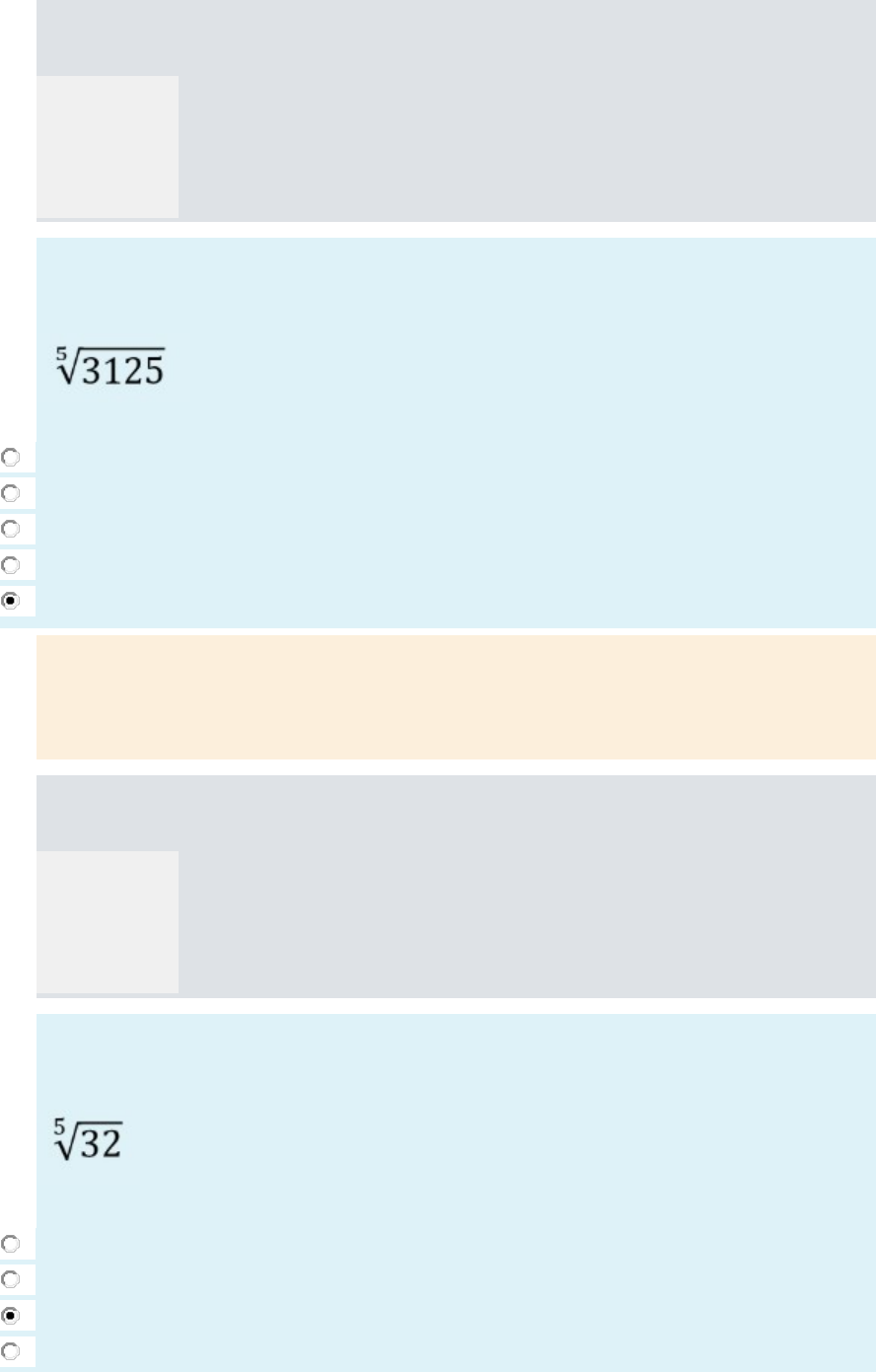 Questão 1 Correto Atingiu 1,00 de 1,00 Marcar questão Texto da questão Calcule o resultado da operação a seguir, sem o uso da calculadora: Escolha uma: a. 4 b. 25 c. - 5 d. 15 e. 5 Feedback Sua resposta está correta. A resposta correta é: 5. Questão 2 Correto Atingiu 1,00 de 1,00 Marcar questão Texto da questão Calcule o resultado da operação a seguir, sem o uso da calculadora: Escolha uma: a. 1 b. - 2 c. 2 d. 8 e. 4 Feedback Sua resposta está correta. A resposta correta é: 2. Questão 3 Correto Atingiu 1,00 de 1,00 Marcar questão Texto da questão Calcule o resultado da operação a seguir, sem o uso da calculadora: Questão 4 Correto Atingiu 1,00 de 1,00 Marcar questão Texto da questão Questão 5 Correto Atingiu 1,00 de 1,00 Marcar questão Texto da questão O resultado da operação inexiste para o conjunto de número reais, ou seja, . Escolha uma opção: Verdadeiro Falso Feedback A resposta correta é 'Verdadeiro'. Questão 6 Correto Atingiu 1,00 de 1,00 Marcar questão Texto da questão Questão 7 Correto Atingiu 1,00 de 1,00 Marcar questão Texto da questão Questão 8 Correto Atingiu 1,00 de 1,00 Marcar questão Texto da questão Calcule o resultado da operação a seguir, sem o uso da calculadora: Escolha uma: a. 4 b. - 2 c. 24 d. 2 e. 12 Feedback Sua resposta está correta. A resposta correta é: 2. Questão 9 Correto Atingiu 1,00 de 1,00 Marcar questão Texto da questão O resultado da operação inexiste para o conjunto de número reais, ou seja, . Escolha uma opção: Verdadeiro Falso Feedback A resposta correta é 'Verdadeiro'. Questão 10 Correto Atingiu 1,00 de 1,00 Marcar questão Texto da questão Calcule o resultado da operação a seguir, sem o uso da calculadora: Escolha uma: a. - 3 b. 3 c. 9 d. - 9 e. 4,33 Feedback Sua resposta está correta. A resposta correta é: 4,33. Questão 1 Não respondido Vale 1,00 ponto(s). Marcar questão Texto da questão Calcule o resultado da operação a seguir, sem o uso da calculadora: Escolha uma: a. 1 b. - 2 c. 2 d. 4 e. 8 Feedback Sua resposta está incorreta. A resposta correta é: - 2. Questão 2 Não respondido Vale 1,00 ponto(s). Marcar questão Texto da questão O resultado da operação é 1. Escolha uma opção: Verdadeiro Falso Feedback O resultado correto é 0. A resposta correta é 'Falso'. Questão 3 Não respondido Vale 1,00 ponto(s). Marcar questão Texto da questão Questão 4 Não respondido Vale 1,00 ponto(s). Marcar questão Texto da questão O resultado da operação inexiste para o conjunto de número reais, ou seja, . Escolha uma opção: Verdadeiro Falso Feedback A resposta correta é 'Verdadeiro'. Questão 5 Não respondido Vale 1,00 ponto(s). Marcar questão Texto da questão O resultado da operação inexiste para o conjunto de número reais, ou seja, . Escolha uma opção: Verdadeiro Falso Feedback A resposta correta é 'Verdadeiro'. Questão 6 Não respondido Vale 1,00 ponto(s). Marcar questão Texto da questão Questão 7 Não respondido Vale 1,00 ponto(s). Marcar questão Texto da questão Calcule o resultado da operação a seguir, sem o uso da calculadora: Escolha uma: a. 10 b. 4 c. 5 d. 2 e. 1 Feedback Sua resposta está incorreta. A resposta correta é: 10. Questão 8 Não respondido Vale 1,00 ponto(s). Marcar questão Texto da questão Calcule o resultado da operação a seguir, sem o uso da calculadora: Escolha uma: a. 16 b. 10 c. 8 d. 2 e. 4 Feedback Sua resposta está incorreta. A resposta correta é: 8. Questão 9 Não respondido Vale 1,00 ponto(s). Marcar questão Texto da questão Calcule o resultado da operação a seguir, sem o uso da calculadora: Escolha uma: a. - 9 b. 6 c. - 3 d. 9 e. 3 Feedback Sua resposta está incorreta. A resposta correta é: 3. Questão 10 Não respondido Vale 1,00 ponto(s). Marcar questão Texto da questão Calcule o resultado da operação a seguir, sem o uso da calculadora: Escolha uma: a. - 3 b. 3 c. 9 d. 6 e. - 9 Feedback Sua resposta está incorreta. A resposta correta é: - 3. Questão 1 Não respondido Vale 1,00 ponto(s). Marcar questão Texto da questão Calcule o resultado da operação a seguir, sem o uso da calculadora: Escolha uma: a. 9 b. - 3 c. - 9 d. 6 e. 3 Feedback Sua resposta está incorreta. A resposta correta é: - 3. Questão 2 Não respondido Vale 1,00 ponto(s). Marcar questão Texto da questão Questão 3 Não respondido Vale 1,00 ponto(s). Marcar questão Texto da questão Calcule o resultado da operação a seguir, sem o uso da calculadora: Escolha uma: a. 8 b. 4 c. 2 d. - 2 e. 1 Feedback Sua resposta está incorreta. A resposta correta é: 2. Questão 4 Não respondido Vale 1,00 ponto(s). Marcar questão Texto da questão Calcule o resultado da operação a seguir, sem o uso da calculadora: Questão 5 Não respondido Vale 1,00 ponto(s). Marcar questão Texto da questão Calcule o resultado da operação a seguir, sem o uso da calculadora: Questão 6 Não respondido Vale 1,00 ponto(s). Marcar questão Texto da questão Calcule o resultado da operação a seguir, sem o uso da calculadora: Escolha uma: a. 12 b. 24 c. 2 d. 4 e. - 2 Feedback Sua resposta está incorreta. A resposta correta é: 2. Questão 7 Não respondido Vale 1,00 ponto(s). Marcar questão Texto da questão Calcule o resultado da operação a seguir, sem o uso da calculadora: Escolha uma: a. 4 b. 5 c. 10 d. 1 e. 2 Feedback Sua resposta está incorreta. A resposta correta é: 10. Questão 8 Não respondido Vale 1,00 ponto(s). Marcar questão Texto da questão Calcule o resultado da operação a seguir, sem o uso da calculadora: Escolha uma: a. 4 b. 2 c. 10 d. 16 e. 8 Feedback Sua resposta está incorreta. A resposta correta é: 8. Questão 9 Não respondido Vale 1,00 ponto(s). Marcar questão Texto da questão Calcule o resultado da operação a seguir, sem o uso da calculadora: Escolha uma: a. 4,33 b. - 3 c. - 9 d. 9 e. 3 Feedback Sua resposta está incorreta. A resposta correta é: 4,33. Questão 10 Não respondido Vale 1,00 ponto(s). Marcar questão Texto 