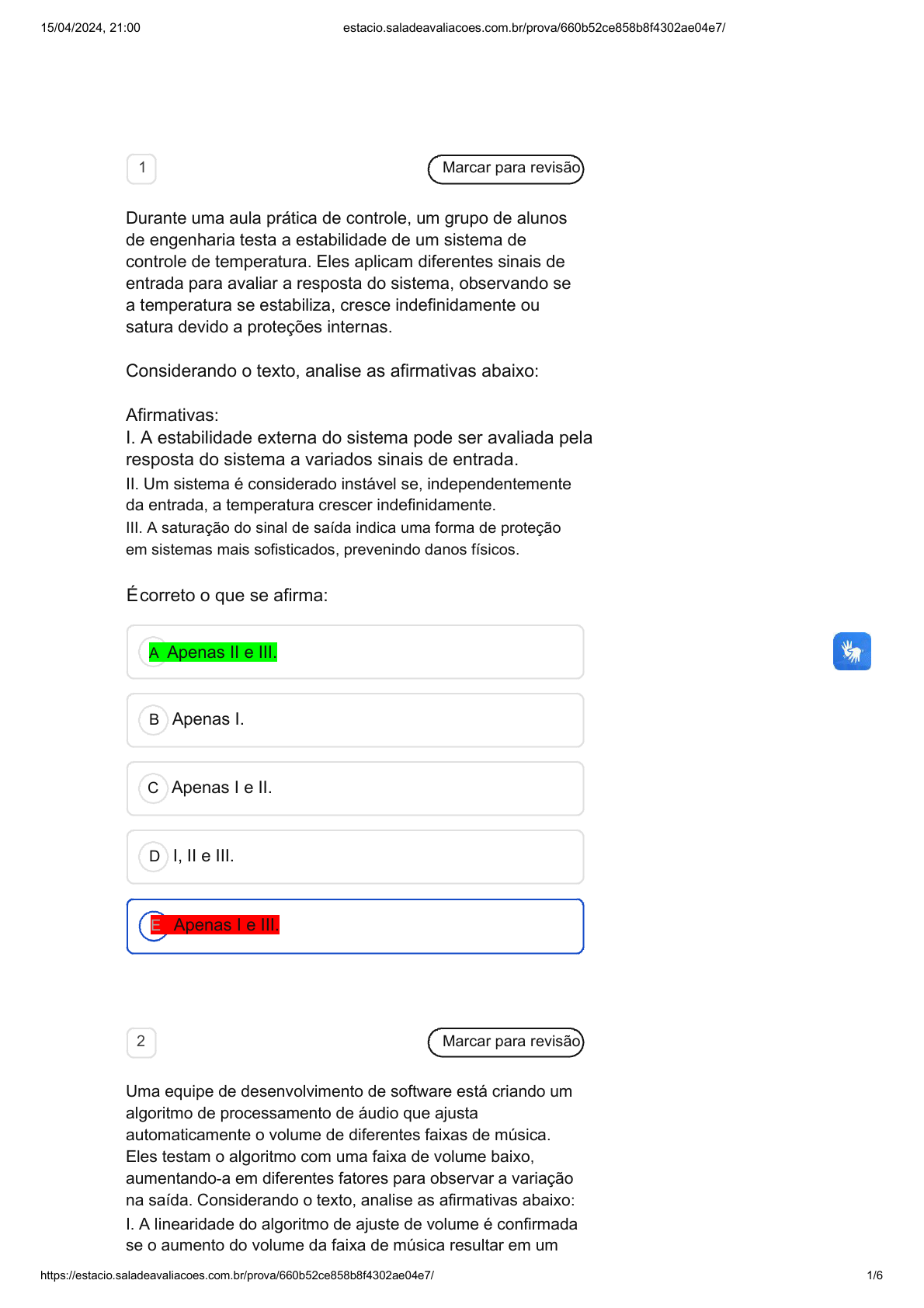 https://estacio.saladeavaliacoes.com.br/prova/660b52ce858b8f4302ae04e7/ 1/6