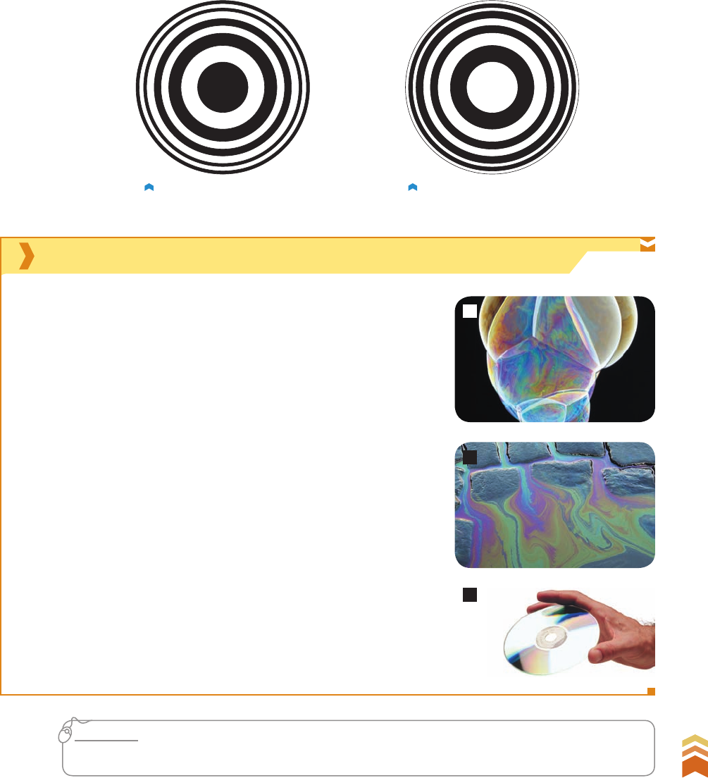 455 C a p ít u lo 1 8 • In te rf e rê n ci a d e o n d a s 455 R ep ro d uç ão p ro ib id a. A rt .1 84 d o C ód ig o P en al e L ei 9 .6 10 d e 19 d e fe ve re iro d e 19 98 . Figura 19. Anéis de Newton observados por luz refletida. Figura 20. Anéis de Newton observados por luz transmitida. No endereço eletrônico http://br.geocities.com/saladefisica3/laboratorio/aneisnewton/aneisnewton.htm (acesso em agosto/2009) você pode visualizar as franjas de interferência. Mudando o comprimento de onda da radiação incidente muda a coloração das franjas. É possível também mudar o raio de curvatura da superfície esférica. Entre na redeEntre na rede A lâmina de ar de espessura variável é a que se estabelece entre a face curva da lente e a face plana da lâmina de vidro. Ocorre interferência entre os raios refletidos e refratados nas superfícies de separação entre a face curva da lente e a face plana da lâmina de vidro. Como a lâmina tem espessura variável, a superfície observada não se apresenta uniformemente clara ou escura. Para pontos equidistantes do centro, ocorre o mesmo tipo de interferência, cons- trutiva ou destrutiva, de maneira a formarem-se anéis concêntricos, alternadamente brilhantes (da cor da luz utilizada) e escuros. Se um anel for brilhante quando visto por luz refletida, isto é, com o observador posicionado acima da lente (fig. 19), ele será escuro quando visto por luz transmitida, isto é, com o observador posicionado abaixo da lâmina de vidro (fig. 20). A região central é sempre escura por luz refletida e sempre brilhante por luz transmitida, qualquer que seja o comprimento de onda da luz utilizada. O fenômeno da interferência da luz no dia a dia 1 2 3 A interferência da luz explica as diversas colorações observadas nas bolhas de sabão (foto 1) e nas películas de óleo depositadas sobre a água (foto 2). A interferência entre os raios de luz refletidos nas faces superior e inferior da bolha ou da película produzem as colorações. Uma mesma bolha ou uma mesma película apresentam diversas cores devido à variação da espessura de suas paredes. As cores que se observam na superfície de um disco compacto, que conhecemos por CD (foto 3), têm uma explicação um pouco mais com- plexa. A superfície do CD constitui uma rede de difração, consistindo em um conjunto de finíssimas ranhuras (linhas) de informação. Em cada milímetro de sua extensão podem caber de 500 a 1.000 dessas ranhuras. Tendo dimensões comparáveis às do comprimento de onda da luz, essas linhas agem como rede de difração para a reflexão das ondas luminosas que incidem na superfície do disco. Como o desvio da onda difratada depende do comprimento de onda, inicialmente as várias cores do feixe de luz incidente se “espalham” em diferentes direções. Em seguida, cores iguais (comprimentos de onda iguais) do feixe refletido, em determinadas direções, sofrem interferência construtiva e se reforçam, e, em outras direções, sofrem interferência destrutiva, anulando-se. O resultado final é semelhante ao obtido com o prisma, isto é, a decomposição do feixe de luz policromática em seus componentes monocromáticos, porém dessa vez com uma separação mais nítida e mais uniforme, em virtude da ocorrência da interferência entre os feixes refletidos de diversas cores. V2_P3_UN_F_CAP_18.indd 455 02.09.09 10:21:16 456456 R ep ro d uç ão p ro ib id a. A rt .1 84 d o C ód ig o P en al e L ei 9 .6 10 d e 19 d e fe ve re iro d e 19 98 . R. 129 Uma fonte luminosa, colocada no foco principal objeto F de uma lente convergente, emite uma ra- diação monocromática. Após atravessar a lente, a luz proveniente da fonte incide numa tela opaca T, perpendicular ao eixo principal da lente. Nessa tela existem duas fendas paralelas muito estreitas, separadas por uma distância d 5 1 mm, ambas à mesma distância do ponto M de interseção da tela T com o eixo principal da lente. Sobre o anteparo A (paralelo a T e à distância L 5 10 m desta) observa-se a distribuição de intensidade luminosa I, confor- me o gráfico da figura abaixo, sendo y a distância vertical contada a partir do ponto O. Lente d L M T A O y Eixo principal F P1 I 3 mm 0 y Determine a frequência da radiação incidente, sabendo que a velocidade da luz no meio em que é feita a experiência é 3 3 1010 cm/s. S 5 i H __ 2 ] S 5 H __ 2 Como S 5 dy ___ L , com d 5 1 mm 5 103 m e L 5 10 m, vem: exercícios resolvidos Solução: O ponto P1 do gráfico: y 5 3 mm 5 3 3 103 m cor- responde à primeira interferência destrutiva da luz (i 5 1), em que: R. 130 Numa película transparente de índice de refração 1,5 incide luz monocromática de comprimento de onda 6,0 3 107 m no ar, cujo índice de refração é 1,0. Verifica-se que essa película se apresenta escura, quan do observada por luz refletida, e brilhante, quan- do observada por luz transmitida. Determine a mí- ni ma espessura que essa película deve ter para que tal situação aconteça. H __ 2 5 103 3 3 3 103 _____________ 10 ] H 5 6 3 107 m ] ] H 5 6 3 105 cm Sendo v 5 3 3 1010 cm/s e v 5 Hf, obtemos: f 5 v __ H ] f 5 3 3 1010 _______ 6 3 105 ] f 5 0,5 3 1015 ] ] f 5 5 3 1014 Hz Resposta: 5 3 1014 Hz n 3 H 5 nar 3 Har ] 1,5 3 H 5 1,0 3 6,0 3 107 ] A película se apresenta brilhante (interferência cons- trutiva) por luz transmitida. Então, devemos ter: S 5 2d 5 p H __ 2 Como se pede a mínima espessura, devemos ter p 5 2. Não faz sentido usar o valor p 5 0, porque a diferença de caminhos S das ondas que inter- ferem não pode ser nula. Substituindo os valores de p e H na fórmula da condição de interferência, temos: Observe que, se usássemos a condição de interfe- rência para a luz refletida, o resultado seria idêntico (face escura ] interferência destrutiva ] p 5 2). Solução: No ar, de índice de refração nar 5 1,0, a luz tem comprimento de onda Har 5 6,0 3 107 m. O com- primento de onda H da luz do material da películ