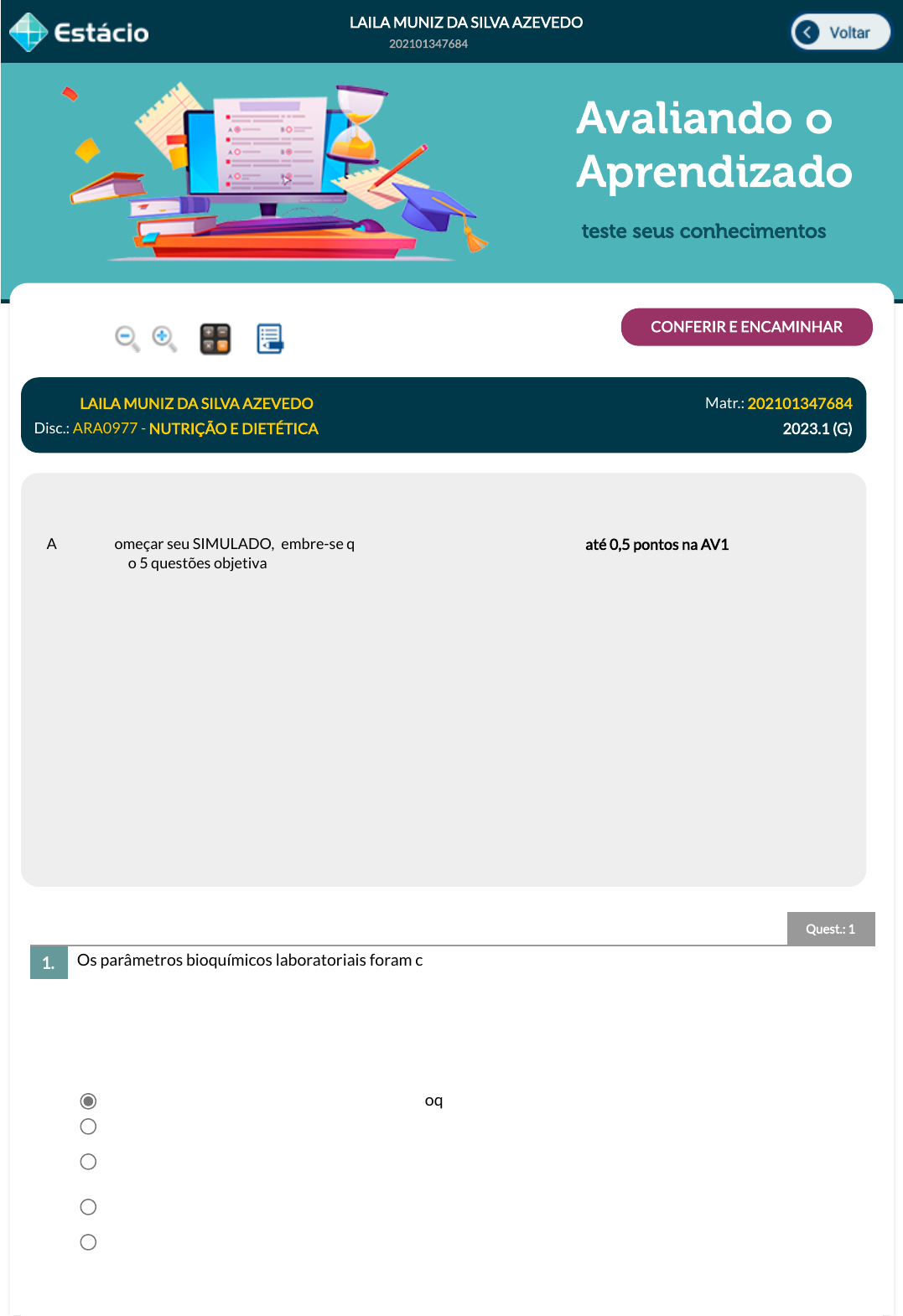 Antes de começar seu SIMULADO, lembre-se que nesse exercício você pode obter até 0,5 pontos na AV1, acertando as