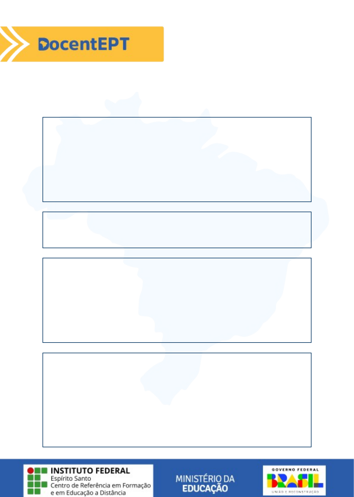 AVALIAÇÃO INTEGRADA Disciplinas: Pesquisa e Extensão Tecnológicas / Libras Roteiro para o Encontro Síncrono Online Professoras formadoras: Danielle Piontkovsky e Fernanda Zanetti Becalli; Eliana Firmino Ribeiro e Fernanda Nogueira Professor(a) mediador(a): Coordenador(a) local: Turma: Nome dos componentes do grupo: Data: ___/____/_______ Valor: 30 pontos 1º momento: acolhida e orientação Objetivo da atividade: elaborar um material digital para divulgar ao público surdo e ouvinte o Evento de extensão proposto pelo grupo. 2º momento: desenvolvimento da atividade avaliativa (duração estimada: 60 minutos) Escolher e elaborar uma forma de divulgação do Evento de extensão proposto, podendo ser: convite, cartaz, folder, panfleto, vídeo ou outro recurso digital aprendido nas disciplinas de Ambientação em EAD, Tecnologias Educacionais, Práticas Pedagógicas Inclusivas, etc. Esperamos que o grupo use a criatividade! Lembrem-se também de sinalizar que o Evento será acessível. 3º momento: postagem do arquivo e explicação (duração estimada: 60 minutos) a) Link para o arquivo de divulgação elaborado: após produzir o material, salve-o em um serviço de armazenamento em nuvem (por exemplo: Youtube para vídeos, Google Drive para arquivos) e indique o link de acesso. b) Explique como tornar o material elaborado acessível às pessoas surdas usuárias de Libras. 4º momento: apresentação (duração estimada para estudo: 60 minutos) Este será o momento do grupo socializar e apresentar aos colegas o material (recurso digital) produzido. Neste momento, para que a atividade fique mais significativa, o grupo deverá também explicar qual foi a proposta de Evento de extensão planejada e como foram organizados os aspectos em torno da acessibilidade para pessoas surdas usuárias de Libras. Não necessariamente o grupo precisa ter fluência em Libras para realizar a tradução ou a interpretação do material confeccionado para essa Língua, o mais importante é que sejam levadas em consideração as ações necessárias no sentido de atender questões de acessibilidade, principalmente relacionadas às pessoas surdas que utilizam a Língua Brasileira de Sinais (Libras) para se comunicarem. Lembrando que em muitos casos a legenda não atende às necessidades desse público. IMPORTANTE: ● Indica-se que apenas um componente do grupo faça a apresentação para otimizar o tempo. ● A duração de cada apresentação dependerá da quantidade de grupos, devendo ser organizada pelo(a) professor(a) mediador(a). No entanto, indicamos que seja, no mínimo, 5 minutos para cada grupo. image1.png