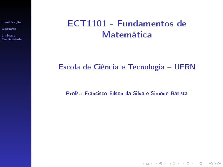 I Antes de estudarmos o cálculo dos limites de uma função e