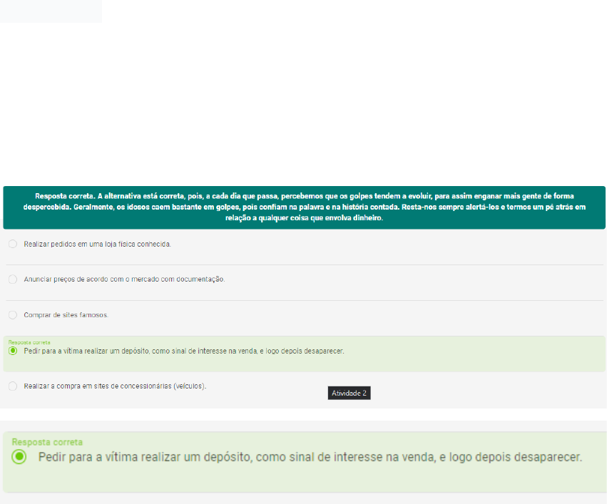 Atividade 2 No mundo da Internet (ciberespaço), existem diversos tipos de golpes que visam enganar ou se aproveitar da inocência de suas vítimas. Existem vários casos de pessoas que recebem e-mails oferecendo ofertas encantadoras, produtos com preços abaixo do mercado e um botão escrito “clique aqui”, e é ele a armadilha. Ao clicar, o usuário é levado a uma conta falsa e, sem saber, acaba sendo vítima de um golpe. Nesse sentido, assinale a alternativa que indique golpes de compra e vendas na Internet: Com um gerenciamento de risco bem definido em uma organização, com base em normas e padrões, é possível identificar e priorizar os principais ativos de uma organização. Dentre o universo de diferentes tipos de ataques, existe um, que é muito comum e que visa sobrecarregar algum serviço (por exemplo, de um site) enviando milhares de requisições. KIM, D.; SOLOMON, M. G. Fundamentos de segurança de sistemas de informação. São Paulo: LTC, 2014. A respeito dos tipos de ataque, assinale a alternativa que identifique a ameaça que visa sobrecarregar algum serviço enviando milhares de requisições: Vimos os conceitos de evento e incidente. Por exemplo, um empregado pode gerar um erro no sistema criando um incidente não desejado, em que se podem abrir oportunidades para ataques. Vimos que um evento é algo relacionado a um comportamento inesperado de um ativo. KIM, D.; SOLOMON, M. G. Fundamentos de segurança de sistemas de informação. São Paulo: LTC, 2014. Nesse sentido, assinale a alternativa que melhor descreve o conceito de “incidente não desejado”: Existe também um tipo de ataque que visa divulgar produtos por e-mail. Diariamente, recebemos alguns desses tipos de mensagens, os quais apresentam títulos interessantes para despertar nossa atenção e curiosidade. Estima-se que, em 2018, 55% de todos os e-mails foram considerados desse tipo de ameaça. KIM, D.; SOLOMON, M. G. Fundamentos de segurança de sistemas de informação. São Paulo: LTC, 2014. Nesse sentido, assinale a alternativa que descreva o conceito apresentado: Infelizmente, uma ameaça está presente em todas as organizações. Uma das opções de medida de proteção mais simples é a que usa a detecção. Aqui, sabe-se da ameaça e, por meio de um software de monitoramento, é possível saber o momento que ela acontece. HINTZBERGEN, J. et al. Fundamentos de segurança da informação, com base na ISO 27001 e na ISO 27002. São Paulo: Brasport, 2018. Apesar de a medida de detecção ser bastante utilizada, existe outra medida cujo principal objetivo é solucionar/reduzir o dano causado pelo incidente. Assinale a alternativa que melhor descreva essa outra medida: O ataque via cavalo de Troia tem como objetivo esconder-se na máquina-alvo e em um tempo oportuno efetuar uma série de coletas de informações ou simplesmente causar algum prejuízo. Ele pode colher cookies, senhas, números de cartões, informações de redes sociais etc. Por meio desse tipo de ataque, é possível se instalar novos programas, além de alterar configurações no navegador. KIM, D.; SOLOMON, M. G. Fundamentos de segurança de sistemas de informação. São Paulo: LTC, 2014. Nesse sentido, assinale a alternativa que descreva a definição apresentada: Um dos ataques mais utilizados na Internet é o de negação de serviço (DoS - Denial of Service). Por meio dele, é possível enviar milhares de requisições (solicitação) a um determinado serviço. Um outro tipo de ameaça é a não definição de políticas de acesso a recursos internos e uso da Internet. Por exemplo, um usuário não pode acessar determinados arquivos contendo informações sigilosas da organização, mas lhe é permitido. HINTZBERGEN J. et al. Fundamentos de segurança da informação, com base na ISO 27001 e na ISO 27002. São Paulo: Brasport, 2018. Nesse sentido, assinale a alternativa que descreva o conceito apresentado: A cada ano, o número de ameaças cresce. Algumas empresas, como a Symantec (área de segurança), fazem um balanço anual, a fim de conhecer os tipos de ataques juntamente com o seu número. Isso permite que se observem as tendências dos ataques ao longo do tempo. Nota-se que alguns ataques antes famosos deixaram de ser bem-sucedidos, pois o alerta das mídias (TVs, Internet, revistas etc.) e do avanço de contramedidas, como o antivírus, tornou tal ataque menos ineficiente. CLARKE, R. A.; KNAKE, R. K. Guerra cibernética: a próxima ameaça à segurança e o que fazer. São Paulo: Brasport, 2015. Nesse sentido, assinale a alternativa que indique as ameaças que vêm crescendo a cada ano: Há também um tipo de ataque de que visa obter informações sobre uma determinada organização ou indivíduo por meio de seus funcionários/pessoas próximos. Ele busca explorar a boa-fé das pessoas a fim de obter algum tipo de informação sigilosa. KIM, D.; SOLOMON, M. G. Fundamentos de segurança de sistemas de informação. São Paulo: LTC, 2014. Nesse sentido, assinale a alternativa que represente tal conceito: Nem sempre é fácil identificar um risco e muito menos saber sua dimensão. Um exemplo é como identificar o dano/prejuízo causado sobre um conjunto de dados de uma instituição financeira. Na avaliação de riscos, independentemente do modelo de processo utilizado temos de saber a dimensão do risco. A partir dele, podemos definir custos e estratégias apropriadas. HINTZBERGEN, J. et al. Fundamentos de segurança da informação, com base na ISO 27001 e na ISO 27002. São Paulo: Brasport, 2018. De acordo com o conhecimento adquirido durante os estudos, assinale a alternativa que identifique as principais formas de se medir um risco: