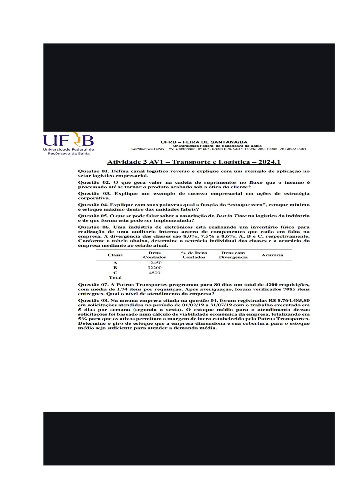 Q01. Canal logístico reverso é a parte do processo logístico que gerencia o retorno de produtos, materiais ou componentes do consumidor final ou do ponto de consumo para a empresa ou para um ponto de recuperação específico, como um centro de distribuição ou de reciclagem. Esse tipo de canal é fundamental para lidar com devoluções, reciclagem, descarte adequado de produtos e reutilização de materiais. Um exemplo de aplicação no setor logístico empresarial seria uma empresa de eletrônicos que implementa um programa de reciclagem de seus produtos. Nesse caso, os consumidores poderiam devolver produtos eletrônicos antigos para a empresa, que os encaminhará para um centro de reciclagem. Esse processo não apenas ajuda a empresa a cumprir obrigações legais e ambientais, mas também pode ser uma fonte de materiais reciclados para a produção de novos produtos, fechando assim um ciclo sustentável. Q02. Na cadeia de suprimentos, o valor é gerado em várias etapas do fluxo, desde o insumo até o produto acabado, sob a ótica do cliente. Alguns dos pontos que geram valor nesse processo incluem: 1. Qualidade do Produto: O cliente valoriza a qualidade do produto final. Portanto, todas as etapas do processo, desde a seleção dos insumos até o processo de fabricação, devem garantir a qualidade do produto final. 2. Tempo de Entrega: A rapidez na entrega do produto é outro fator importante para o cliente. Uma cadeia de suprimentos eficiente é capaz de entregar o produto no prazo desejado pelo cliente. 3. Custo: O custo do produto final também é crucial. Uma cadeia de suprimentos eficiente é capaz de reduzir custos em várias etapas do processo, o que pode se refletir em um preço final mais competitivo para o cliente. 4. Customização: A capacidade de personalizar o produto de acordo com as necessidades do cliente também gera valor. Uma cadeia de suprimentos flexível e ágil é capaz de atender a essas demandas. 5. Sustentabilidade: Cada vez mais, os clientes valorizam produtos e empresas que adotam práticas sustentáveis em sua cadeia de suprimentos. Isso inclui o uso de materiais sustentáveis, práticas de fabricação e transporte eco-friendly, entre outros. Portanto, uma cadeia de suprimentos eficiente e bem gerenciada é capaz de agregar valor ao produto em todas as etapas do processo, desde o insumo até o produto final, atendendo assim às expectativas e necessidades do cliente. Q03. Um exemplo de sucesso empresarial em ações de estratégia corporativa é a transformação da Apple de uma empresa de tecnologia à beira da falência, na década de 1990, em uma das empresas mais valiosas e inovadoras do mundo atualmente. A estratégia corporativa da Apple foi baseada em diversos pilares, como: 1. **Inovação de Produtos:** A empresa focou em desenvolver produtos inovadores e revolucionários, como o iPod, iPhone e iPad, que redefiniram mercados inteiros. 2. **Experiência do Cliente:** A Apple sempre priorizou a experiência do cliente, desde a compra dos produtos até a utilização dos mesmos, criando uma base de clientes leais e engajados. 3. **Ecossistema Integrado:** A empresa desenvolveu um ecossistema integrado de produtos e serviços, como o iTunes, App Store e iCloud, que oferecem uma experiência consistente aos usuários. 4. **Design e Marketing:** A Apple é conhecida por seu design elegante e minimalista, bem como por suas campanhas de marketing marcantes, que criaram uma forte identidade de marca. 5. **Diversificação:** A empresa diversificou seus produtos e serviços ao longo do tempo, expandindo para áreas como serviços de streaming, wearables e serviços financeiros. Essa estratégia corporativa permitiu que a Apple se destacasse em um mercado altamente competitivo e em constante mudança, mostrando como uma abordagem estratégica bem pensada pode transformar uma empresa e impulsionar seu sucesso. Q04. Dentro das unidades fabris, o estoque zero, estoque mínimo e estoque máximo desempenham funções específicas relacionadas à gestão de materiais e produção: 1. **Estoque Zero:** O estoque zero é uma estratégia em que a empresa busca minimizar ou eliminar completamente a quantidade de estoque de determinado item. Isso é feito para reduzir custos associados ao armazenamento e à obsolescência, além de incentivar práticas de produção enxuta (como o Just-In-Time), onde os materiais chegam exatamente no momento necessário para a produção. 2. **Estoque Mínimo:** O estoque mínimo é o nível mais baixo de estoque que a empresa precisa manter para garantir que não ocorram interrupções na produção devido a atrasos ou problemas na cadeia de suprimentos. Ele é calculado com base no lead time (tempo de reposição) e na demanda média do item. 3. **Estoque Máximo:** O estoque máximo é o nível mais alto de estoque que a empresa está disposta a manter. Ele é determinado considerando fatores como a demanda sazonal, variações na oferta, custos de armazenamento e riscos associados à obsolescência. Portanto, o estoque zero busca eliminar completamente o estoque, o estoque mínimo garante a continuidade da produção sem interrupções e o estoque máximo define um limite superior para evitar excessos que possam gerar custos adicionais. O equilíbrio entre esses três níveis de estoque é essencial para garantir a eficiência e a competitividade da unidade fabril. Q05. A associação do Just-In-Time (JIT) na logística da indústria é uma estratégia que visa reduzir desperdícios, custos e melhorar a eficiência operacional. O JIT é um sistema de produção que busca entregar os materiais necessários na quantidade certa, no momento certo e no local certo, eliminando assim a necessidade de estoques excessivos. Para implementar o Just-In-Time na logística da indústria, algumas práticas e técnicas podem ser adotadas: 1. **Gestão de Estoque:** Reduzir os níveis de estoque ao mínimo necessário, utilizando técnicas 