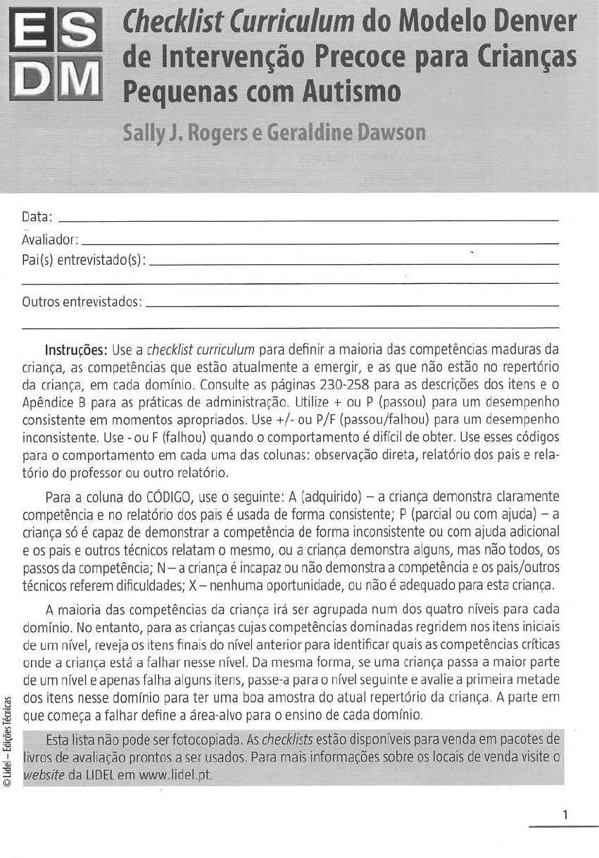 dositens nesse domínio para ter uma boa amostra do atual repertório da criança. A parte em