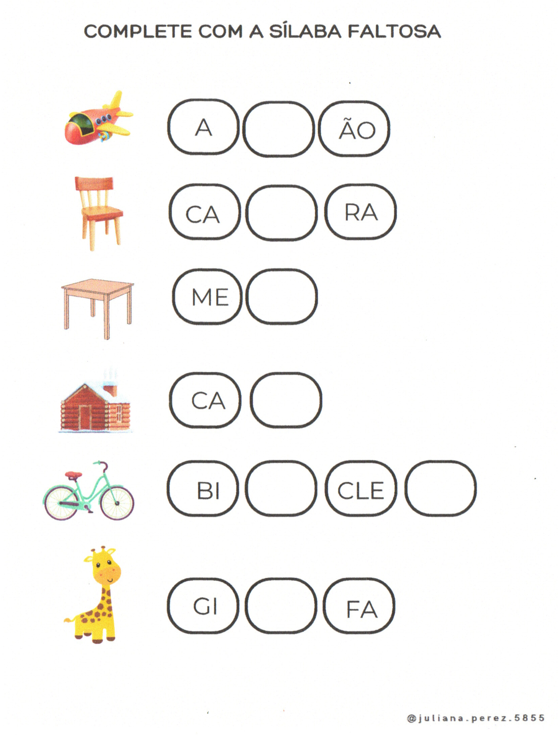 COMPLETE COM A SÍLABA FALTOSA A CA RA ME CA BI CLE GI FA @ j uliana.perez - 5855