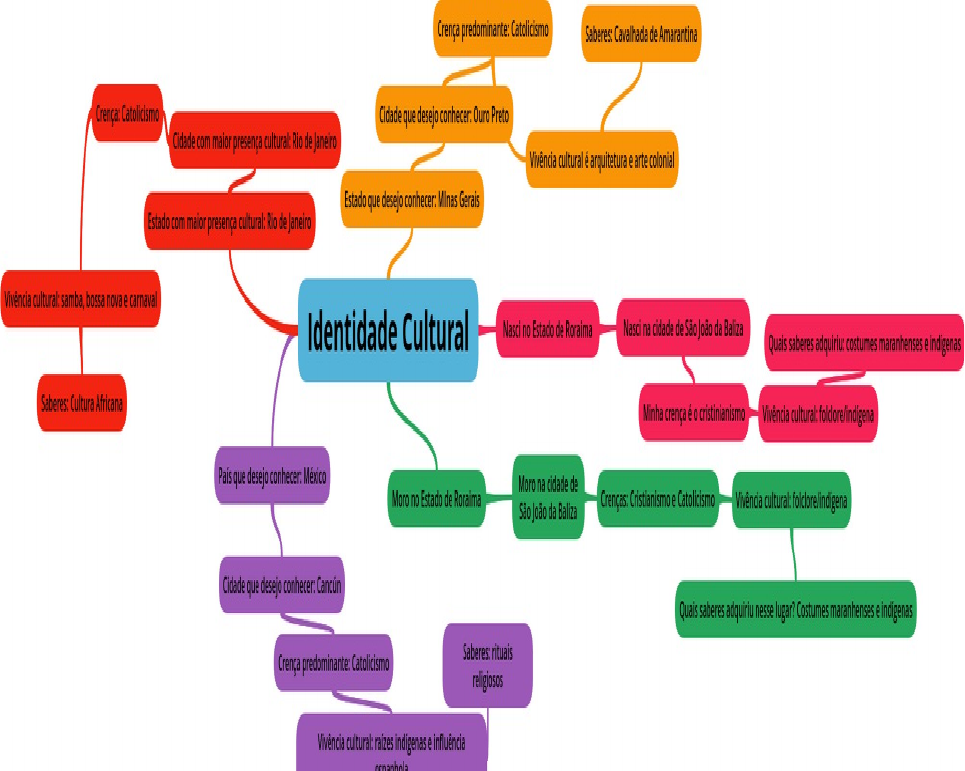 <p>Crença predominante Catolicismo Saberes Cavalhada de Amarantina Crenca Catolicismo Cidade que desejo conhecer Ouro Preto Cidade com presença cultural Rio Janeiro Vivência cultura Estado que desejo conhecer Minas Gerais maior presença cultural Janeiro samba bossa nova e carnava Identidade Cultura Nascino Roraima Nasci João da Baliza Quais saberes adquiriu costumes maranhenses indigenas Saberes Cultura Africana Vivência cultural folclore/indigena desejo conhecer México Moro na cidad de Moro no Estado de Roraima da Baliza Crenças Cristianismo Catolicismo Vivência folclore/indigena Cidade que Cancun Quais saberes adquiriu nesse lugar? Costumes maranhenses rituais Crença predominante Catolicismo religiosos Vivência cultural raizes indigenas</p>