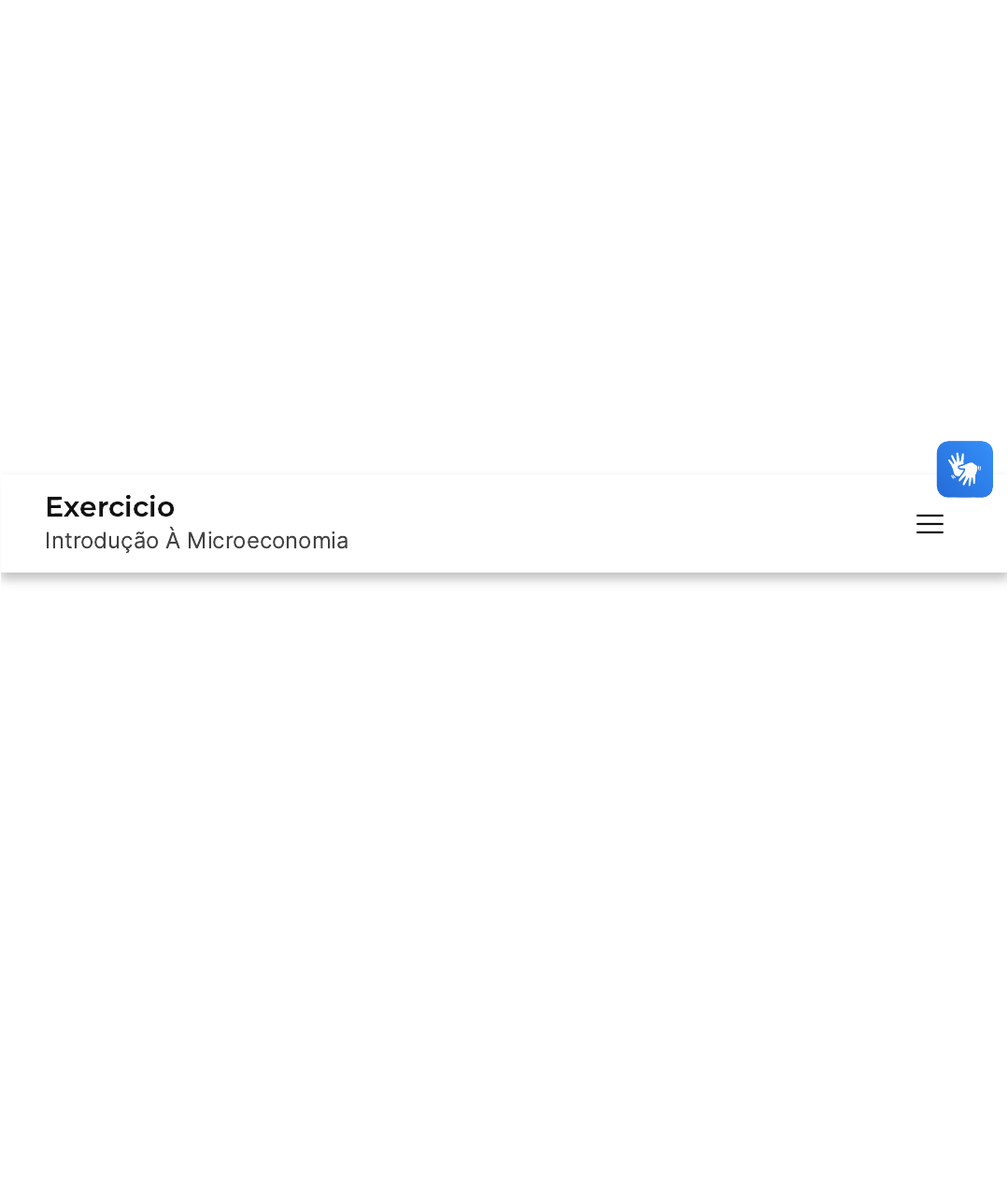 <p>Exercicio</p><p>Introdução À Microeconomia</p><p>Verificar Desempenho</p><p>A</p><p>B</p><p>C</p><p>D</p><p>E</p><p>1 Marcar para revisão</p><p>Taxa marginal de substituição decrescente é uma importante medida na análise</p><p>econômica. Assinale a alternativa que indica o que exatamente significa essa</p><p>taxa.</p><p>É a relação entre a quantidade demandada de um bem e seu preço de</p><p>mercado.</p><p>É a quantidade de um bem que um consumidor pode adquirir com uma</p><p>renda dada e preços de mercado.</p><p>É a relação entre a oferta e a quantidade demandada de um bem ou</p><p>serviço.</p><p>É o achatamento das curvas de indiferença que refletem a lógica da</p><p>utilidade marginal decrescente.</p><p>É a relação entre a renda do consumidor e a quantidade de um bem ou</p><p>serviço que ele pode adquirir.</p><p>Resposta incorreta</p><p>Opa! A alternativa correta é a letra D. Confira o gabarito comentado!</p><p>Gabarito Comentado</p><p>A taxa marginal de substituição decrescente é o achatamento das curvas</p><p>de indiferença que refletem a lógica da utilidade marginal decrescente. Ela</p><p>informa que um indivíduo que consome poucas unidades do bem C e</p><p>A</p><p>B</p><p>C</p><p>D</p><p>E</p><p>Existem diferentes conceitos e classificações envolvendo o custo dos produtos</p><p>e total das firmas que permitem uma análise econômica plena. Nesse contexto,</p><p>qual é a definição de custo marginal?</p><p>O custo total da produção dividido pelo número de unidades produzidas.</p><p>A variação no custo total ao se reduzir uma unidade de trabalho.</p><p>A variação no custo total ao se acrescentar uma unidade de trabalho.</p><p>A média dos custos fixos e variáveis da produção.</p><p>O lucro obtido com a venda de uma unidade adicional de produto.</p><p>Resposta correta</p><p>Parabéns, você selecionou a alternativa correta. Confira o gabarito</p><p>comentado!</p><p>Gabarito Comentado</p><p>Assim como observamos no produto marginal, o custo marginal é a</p><p>variação no custo total ao se acrescentar uma unidade de trabalho (por</p><p>exemplo, um trabalhador a mais ou um dia a mais de trabalho).</p><p>3 Marcar para revisão</p><p>Os conceitos de firma e função de produção da firma são fundamentais para a</p><p>análise microeconômica. Nesse contexto, assinale a alternativa que indica qual</p><p>é a definição de função de produção na análise econômica.</p><p>C</p><p>D</p><p>E</p><p>A</p><p>serviço.</p><p>É a relação entre a quantidade de produto produzida por uma firma e seu</p><p>montante de insumos.</p><p>É a relação entre a renda do consumidor e a quantidade de um bem ou</p><p>serviço que ele pode adquirir.</p><p>Resposta correta</p><p>Parabéns, você selecionou a alternativa correta. Confira o gabarito</p><p>comentado!</p><p>Gabarito Comentado</p><p>Primeiramente, precisamos definir o que é firma. É a organização que</p><p>produz bens e serviços com o objetivo de vendê-los. Para produzi-los, ela</p><p>precisa de insumos que envolvem custos. Já a função de produção da firma</p><p>é a relação entre a quantidade de produto feita por ela e seu montante de</p><p>insumos. Um exemplo de insumo é o número de trabalhadores da firma. O</p><p>custo seria o salário deles.</p><p>4 Marcar para revisão</p><p>Nem todos os custos são tratados da mesma forma nas análises econômicas.</p><p>Os custos fixos e variáveis recebem tratamentos distintos, muitas vezes. Nesse</p><p>sentido, qual é a diferença entre o custo fixo e o custo variável?</p><p>O custo fixo é o custo de um insumo que varia de acordo com a</p><p>quantidade produzida, enquanto o custo variável é um custo que não</p><p>varia.</p><p>O custo fixo é um custo que não varia de acordo com a quantidade</p><p>E</p><p>A</p><p>B</p><p>O custo fixo é o custo total da produção, enquanto o custo variável é o</p><p>lucro obtido com a venda dos produtos.</p><p>Resposta correta</p><p>Parabéns, você selecionou a alternativa correta. Confira o gabarito</p><p>comentado!</p><p>Gabarito Comentado</p><p>Insumos são custosos e apresentam dois tipos: fixos e variáveis. Cada</p><p>insumo vai ter seu custo ao ser empregado na produção. O do aluguel de</p><p>máquinas — insumos fixos, ou seja, que não variam — recebe o nome de</p><p>custo fixo �CF�. O CF não depende do montante produzido, uma vez que o</p><p>produtor já incorre nele quando toma a decisão de produzir, não podendo</p><p>mudar sua quantidade — ao menos, não no curto prazo. Já o custo do</p><p>insumo variável é denominado custo variável �CV�.</p><p>5 Marcar para revisão</p><p>No mercado perfeitamente competitivo, as decisões individuais de produtores e</p><p>consumidores não influenciam o preço de mercado de um bem específico.</p><p>Nesse contexto, assinale a alternativa que indica uma condição necessária para</p><p>a competição perfeita.</p><p>A indústria deve possuir apenas um produtor com grande participação</p><p>no mercado.</p><p>Os consumidores devem considerar os produtos de todos os produtores</p><p>diferentes e de qualidade variada.</p><p>A indústria deve possuir um número pequeno de produtores e cada um</p><p>A</p><p>B</p><p>C</p><p>Resposta correta</p><p>Parabéns, você selecionou a alternativa correta. Confira o gabarito</p><p>comentado!</p><p>Gabarito Comentado</p><p>Em um mercado perfeitamente competitivo, consumidores e produtores</p><p>são tomadores de preço. Com isso, decisões individuais, de quem quer que</p><p>elas partam, não afetam o preço de mercado de determinado bem. Além</p><p>disso, há duas condições necessárias para a competição perfeita: 1. A</p><p>indústria deve possuir um número relativamente grande de produtores e</p><p>nenhum deles pode ter grande participação no mercado. 2. Os</p><p>consumidores devem considerar os produtos de todos os produtores</p><p>equivalentes.</p><p>6 Marcar para revisão</p
