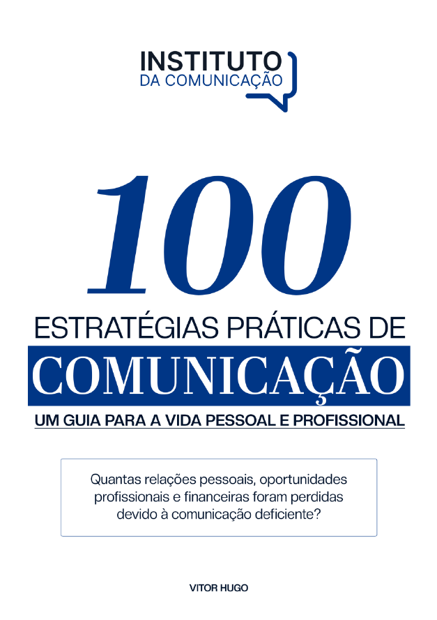 <p>1</p><p>2</p><p>Autor: Vitor Hugo @vitorhugooficialbr</p><p>E-mail: contato@vitorhugooficial.com.br</p><p>Telefone: 17 99103-8702</p><p>Todos os direitos reservados</p><p>É proibida a reprodução total ou parcial deste material, de</p><p>qualquer forma ou por qualquer meio. A violação dos direitos de</p><p>autor (lei n°9610/98) é crime estabelecido pelo artigo 184 do</p><p>Código Penal Brasileiro.</p><p>Detentor dos direitos autorais: Vitor Hugo Alves Rocco</p><p>mailto:contato@vitorhugooficial.com.br</p><p>3</p><p>DEDICATÓRIA</p><p>Dedico este livro ao meu filho, Lorenzo, à minha esposa,</p><p>Glacielle, aos meus avós, Cida e Ayres, e aos meus pais, Vanuza</p><p>e Paulo, por sempre incentivarem e apoiarem minha jornada.</p><p>4</p><p>100 ESTRATÉGIAS PRÁTICAS DE COMUNICAÇÃO</p><p>1. QUAIS SÃO OS VÍCIOS VERBAIS NA</p><p>COMUNICAÇÃO</p><p>2. COMO ELIMINAR OS VÍCIOS VERBAIS NA</p><p>COMUNICAÇÃO</p><p>3. QUAIS SÃO OS VÍCIOS CORPORAIS NA</p><p>COMUNICAÇÃO</p><p>4. COMO ELIMINAR OS VÍCIOS CORPORAIS NA</p><p>COMUNICAÇÃO</p><p>5. COMO USAR A COMUNICAÇÃO PARA SER</p><p>MAIS PRODUTIVO</p><p>6. 5 DICAS DE COMUNICAÇÃO ASSERTIVA</p><p>7. 7 DICAS PARA MELHORAR A ORATÓRIA</p><p>8. PASSOS PARA SER MAIS PERSUASIVO</p><p>9. COMUNICAÇÃO DOS LÍDERES DE SUCESSO</p><p>10. COMO MANTER O OTIMISMO</p><p>11. COMO DESENVOLVER RESILIÊNCIA</p><p>12. COMO SE MANTER MOTIVADO</p><p>PROFISSIONALMENTE</p><p>13. COMO SE MANTER MOTIVADO</p><p>PESSOALMENTE</p><p>5</p><p>14. QUAIS OS SEGREDOS PARA UTILIZAR A</p><p>COMUNICAÇÃO EM RELACIONAMENTOS</p><p>AMOROSOS</p><p>15. O QUE É ESTADO DE FLOW</p><p>16. COMO ENTRAR NO ESTADO DE FLOW</p><p>(EXEMPLO PRÁTICO)</p><p>17. COMO MELHORAR A HABILIDADE DE FAZER</p><p>NETWORKING</p><p>18. QUAIS PASSOS PARA DELEGAR</p><p>19. COMO SER UM LÍDER COM VISÃO DE</p><p>SUCESSO</p><p>20. QUAIS OS SEGREDOS PARA UMA BOA</p><p>CONTRATAÇÃO</p><p>21. COMO LIDAR COM IMPREVISTOS</p><p>22. COMO SER PACIFICADOR</p><p>23. COMO ESCUTAR COM ATENÇÃO</p><p>24. COMO EXIGIR EXCELÊNCIA</p><p>25. COMO ENCANTAR AS PESSOAS ATRAVÉS DA</p><p>COMUNICAÇÃO</p><p>26. COMO APRENDER COM OS FRACASSOS?</p><p>27. COMO SER MAIS PROATIVO</p><p>28. COMO PARAR DE PROCRASTINAR</p><p>29. COMO DESENVOLVER EMPATIA</p><p>6</p><p>30. COMO EMPODERAR MINHA EQUIPE</p><p>31. COMO ORIENTAR MINHA EQUIPE COM</p><p>CUIDADO</p><p>32. COMO SER MAIS OUSADO</p><p>33. COMO ESCOLHER OS MODELOS QUE VOU</p><p>SEGUIR</p><p>34. O QUE É LINGUAGEM CORPORAL</p><p>35. COMO DESENVOLVER LINGUAGEM</p><p>CORPORAL</p><p>36. O QUE É ENTONAÇÃO VOCAL</p><p>37. COMO MELHORAR A ENTONAÇÃO VOCAL</p><p>38. O QUE É DICÇÃO</p><p>39. COMO MELHORAR A DICÇÃO</p><p>40. COMO CONTROLAR O MEDO AO FALAR EM</p><p>PÚBLICO</p><p>41. COMO IDENTIFICAR MINHAS TRAVAS PARA</p><p>FALAR EM PÚBLICO</p><p>42. TÉCNICAS DE EXPRESSÃO VERBAL</p><p>43. TÉCNICAS DE EXPRESSÃO NÃO VERBAL</p><p>44. COMO CONTROLAR MINHA VOZ PARA</p><p>CONVENCER MAIS</p><p>45. COMO CONTROLAR O MEU CORPO PARA</p><p>CONVENCER MAIS</p><p>7</p><p>46. COMO ORGANIZAR MINHA LINHA DE</p><p>RACIOCÍNIO PARA UMA APRESENTAÇÃO</p><p>47. COMO PREPARAR ROTEIRO PARA UMA</p><p>APRESENTAÇÃO</p><p>48. COMO IMPROVISAR</p><p>49. O QUE É STORYTELLING</p><p>50. TIPOS DE STORYTELLING</p><p>51. QUAIS ELEMENTOS FUNDAMENTAIS DE UMA</p><p>BOA HISTÓRIA</p><p>52. 10 PASSOS PARA CONTAR UMA BOA HISTÓRIA</p><p>53. O QUE É RAPPORT</p><p>54. COMO DESENVOLVER RAPPORT</p><p>55. O QUE SÃO GATILHOS MENTAIS</p><p>56. GATILHO URGÊNCIA E ESCASSEZ- O QUE É E</p><p>COMO USAR</p><p>57. GATILHO AUTORIDADE- COMO USAR</p><p>58. GATILHO RECIPROCIDADE- COMO USAR</p><p>59. GATILHO PROVA SOCIAL- COMO USAR</p><p>60. GATILHO NOVIDADE- COMO USAR</p><p>61. GATILHO HISTÓRIA PESSOAL- COMO USAR</p><p>62. GATILHO MEDO DE PERDER- COMO USAR</p><p>63. GATILHO CURIOSIDADE- COMO USAR</p><p>64. GATILHO SIMPLICIDADE- COMO USAR</p><p>8</p><p>65. GATILHO SATISFAÇÃO GARANTIDA- COMO</p><p>USAR</p><p>66. COMO TRANSMITIR EMOÇÃO NA</p><p>COMUNICAÇÃO</p><p>67. O QUE É A METODOLOGIA DISC</p><p>68. PERFIL DOMINANTE- DISC</p><p>69. PERFIL INFLUENTE- DISC</p><p>70. PERFIL ESTÁVEL- DISC</p><p>71. PERFIL CONFORME- DISC</p><p>72. O QUE É COMUNICAÇÃO NÃO VIOLENTA</p><p>(CNV)</p><p>73. COMO DESENVOLVER A COMUNICAÇÃO NÃO</p><p>VIOLENTA (CNV)</p><p>74. UM EXEMPLO PRÁTICO DE COMUNICAÇÃO</p><p>NÃO VIOLENTA (CNV)</p><p>75. O PODER DA SENOIDE- COMUNICAÇÃO</p><p>76. O PODER DA SENOIDE- EMOCIONAL</p><p>77. A RESPIRAÇÃO DO ORADOR</p><p>78. ERROS QUE PRECISAM SER EVITADOS NA</p><p>COMUNICAÇÃO</p><p>79. A DIFERENÇA ENTRE RAZÃO E EMOÇÃO</p><p>80. 20 PERGUNTAS PARA GERAR CONEXÕES</p><p>81. CONHEÇA O QUE SÃO OBJEÇÕES</p><p>9</p><p>82. COMO CONTORNAR OBJEÇÕES</p><p>83. OBJEÇÃO- FALTA DE TEMPO</p><p>84. OBJEÇÃO- GOSTOU MAS NÃO VAI COMPRAR</p><p>85. OBJEÇÃO- NÃO PRECISO DO SEU PRODUTO</p><p>86. OBJEÇÃO- DEIXAR PARA OUTRO MOMENTO</p><p>87. OBJEÇÃO- FALTA DE DINHEIRO</p><p>88. OBJEÇÃO- O CONCORRENTE TEM MENOR</p><p>PREÇO</p><p>89. OBJEÇÃO- FALTA DE RECONHECIMENTO DA</p><p>SUA EMPRESA</p><p>90. OBJEÇÃO- ESTÁ CARO</p><p>91. AS 5 LINGUAGUENS DO AMOR</p><p>92. 8 PASSOS PARA FAZER UMA ÓTIMA</p><p>APRESENTAÇÃO ONLINE</p><p>93. COMO SER UM LÍDER DE ALTA</p><p>PERFORMANCE</p><p>94. QUAIS SÃO OS RUÍDOS DE COMUNICAÇÃO NO</p><p>AMBIENTE DE TRABALHO</p><p>95. COMO MELHORAR OS RUÍDOS DE</p><p>COMUNICAÇÃO NO TRABALHO</p><p>96. COMO AUMENTAR A AUDIÊNCIA ATRAVÉS DA</p><p>COMUNICAÇÃO</p><p>10</p><p>97. COMO ACIONAR A PRESENÇA DE COMANDO</p><p>PARA TER MAIS AUTOCONFIANÇA</p><p>98. SOU INTROVERTIDO. COMO POTENCIALIZAR</p><p>ESSA CARACTERÍSTICA?</p><p>99. POSE DE PODER- AMY CUDDY</p><p>100. 10 DICAS DE COMUNICAÇÃO PARA</p><p>CONQUISTAR PESSOAS</p><p>11</p><p>INTRODUÇÃO</p><p>Você está pronto para iniciar uma jornada de transformação na</p><p>sua comunicação? Ótimo! Você fez a escolha certa ao optar por</p><p>este livro, que servirá como um guia valioso. Esta obra o</p><p>a