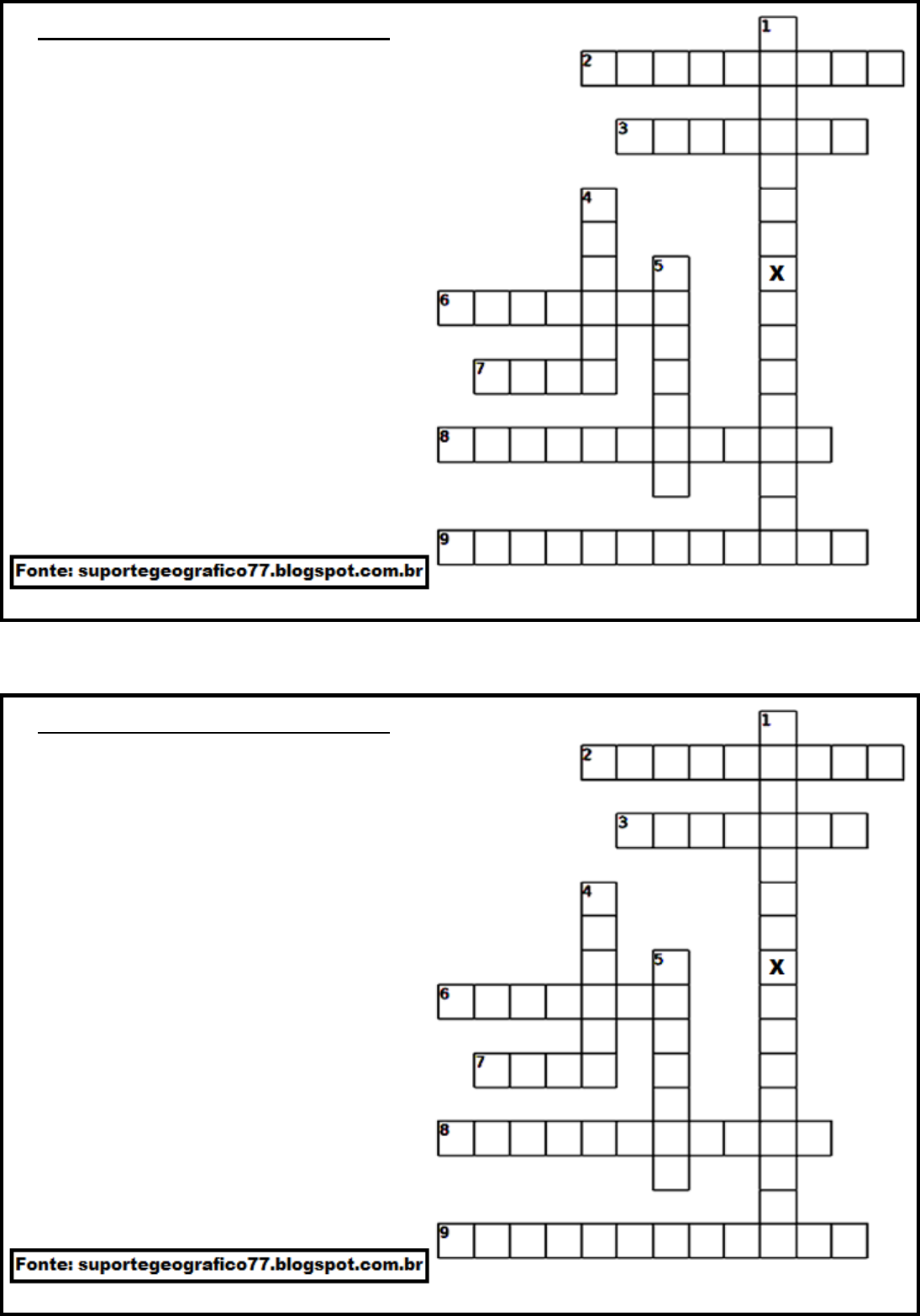 <p>Cruzadinha – Agentes externos</p><p>1 - Forças exógenas que agem na superfície</p><p>terrestre.</p><p>2 - A ação de raízes de plantas pode</p><p>provocar que tipo de intemperismo?</p><p>3 - Tipo de erosão provocada pelo atrito da</p><p>água do mar com as rochas.</p><p>4 - O choque de pequenas partículas</p><p>transportadas pelo vento com as rochas</p><p>ocasiona esse tipo de erosão.</p><p>5 - Tipo de erosão provocada pelo desgaste</p><p>do leito e das margens dos rios pelas suas</p><p>águas.</p><p>6 - Tipo de erosão provocada pela retirada</p><p>de material da parte superficial do solo pelas</p><p>águas da chuva.</p><p>7 - Agente Principal do intemperismo</p><p>químico.</p><p>8 - Provoca o intemperismo físico.</p><p>9 - Conjunto de processos físicos, químicos</p><p>e biológicos que atuam sobre as rochas</p><p>provocando sua desintegração.</p><p>Cruzadinha – Agentes externos</p><p>1 - Forças exógenas que agem na superfície</p><p>terrestre.</p><p>2 - A ação de raízes de plantas pode</p><p>provocar que tipo de intemperismo?</p><p>3 - Tipo de erosão provocada pelo atrito da</p><p>água do mar com as rochas.</p><p>4 - O choque de pequenas partículas</p><p>transportadas pelo vento com as rochas</p><p>ocasiona esse tipo de erosão.</p><p>5 - Tipo de erosão provocada pelo desgaste</p><p>do leito e das margens dos rios pelas suas</p><p>águas.</p><p>6 - Tipo de erosão provocada pela retirada</p><p>de material da parte superficial do solo pelas</p><p>águas da chuva.</p><p>7 - Agente Principal do intemperismo</p><p>químico.</p><p>8 - Provoca o intemperismo físico.</p><p>9 - Conjunto de processos físicos, químicos</p><p>e biológicos que atuam sobre as rochas</p><p>provocando sua desintegração.</p>