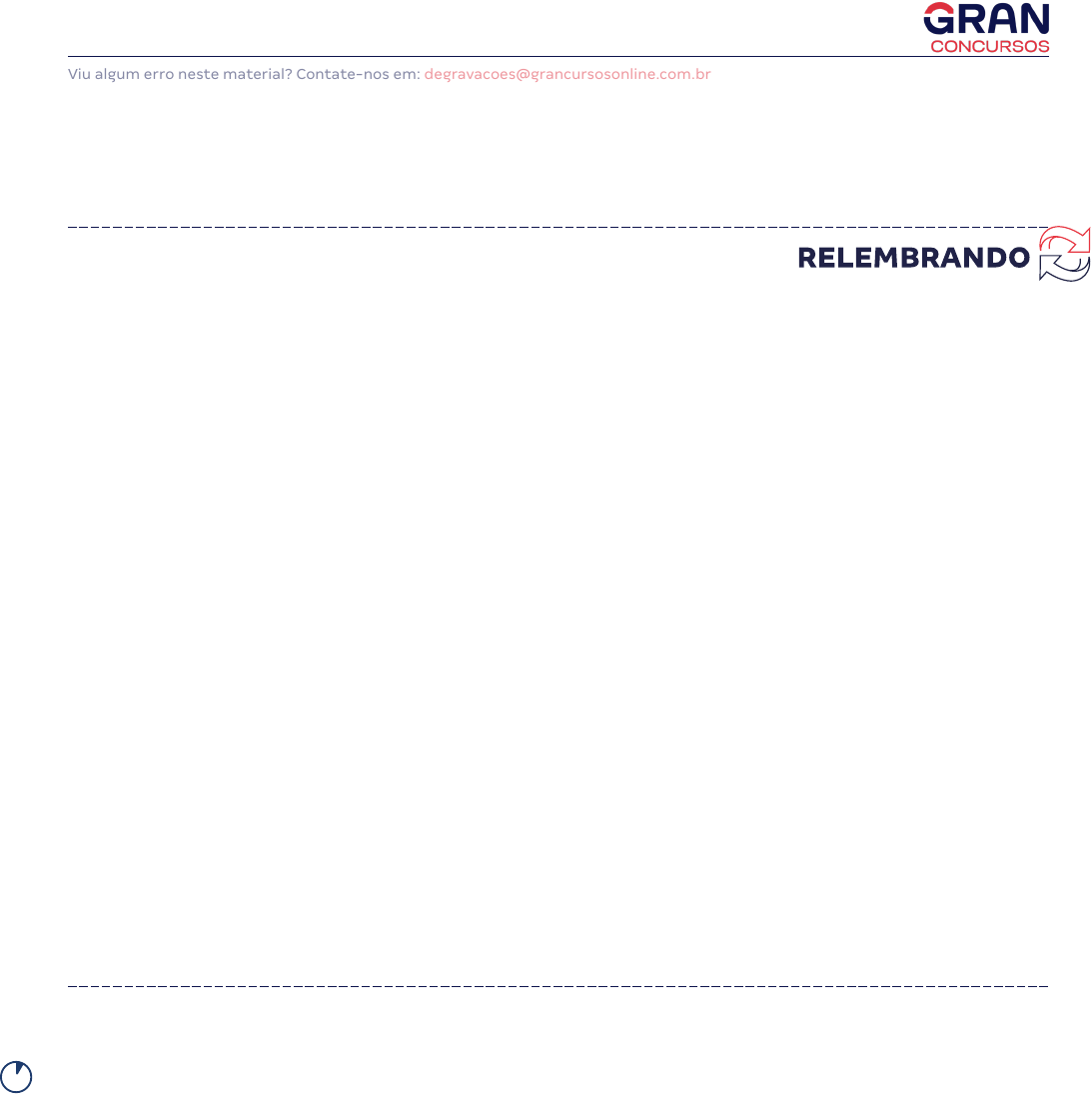 <p>1www.grancursosonline.com.br</p><p>Viu algum erro neste material? Contate-nos em: degravacoes@grancursosonline.com.br</p><p>Sujeito III</p><p>LÍNGUA PORTUGUESA</p><p>SUJEITO III</p><p>No bloco anterior foi possível compreender os tipos de sujeitos: sujeito simples, sujeito</p><p>composto, sujeito elíptico, sujeito oculto, sujeito desinencial e o sujeito indeterminado, o</p><p>qual ainda será discutido neste bloco.</p><p>O sujeito elíptico e o sujeito indeterminado fazem parte da categoria dos sujeitos não</p><p>expressos, ou seja, sujeitos que não são verbalmente representados. A diferença entre ser</p><p>elíptico e ser indeterminado é porque o sujeito elíptico é identificável no texto ou no discurso,</p><p>diferente do indeterminado, em que o sujeito não aparece nem no texto, nem no discurso.</p><p>Ademais, lembre-se das pessoas do discurso em que a 1ª e a 2ª pessoa são sempre identificáveis,</p><p>pois correspondem a emissor e receptor. O que vai ficar pendente na identificação é a 3ª</p><p>pessoa.</p><p>Para saber se o sujeito é elíptico, desinencial ou oculto, é necessário olhar para o verbo. Se</p><p>este estiver na 1ª ou 2ª pessoa do singular ou do plural (eu, nós, tu, vos), tem-se um sujeito</p><p>elíptico. Além disso, toda 3ª pessoa do singular não expressa é classificada como sujeito</p><p>elíptico desinencial oculto.</p><p>“Está doente.”</p><p>Nessa frase, observe que o sujeito está na terceira pessoa do singular (ele/ela).</p><p>Obs.: são analisadas frases isoladas para fins didáticos. Entretanto, a língua não é feita de</p><p>frases isoladas. Ela só funciona com um contexto. Diferente da 3ª pessoa do plural, pois,</p><p>textualmente, é possível encontrá-la tanto com referente quanto sem referente.</p><p>Existem outras formas ainda com sujeito indeterminado:</p><p>• 3ª pessoa do singular + partícula “se”</p><p>A partícula “se” deve ser chamada de índice de indeterminação do sujeito.</p><p>• Infinitivo impessoal</p><p>O verbo no infinitivo é aquele que termina em: AR, ER ou IR. Ou seja, é o verbo na sua</p><p>forma sem conjugação, forma pura.</p><p>Exemplos</p><p>08. “Necessita-se de alimentos mais saudáveis.”</p><p>5m</p><p>2www.grancursosonline.com.br</p><p>Viu algum erro neste material? Contate-nos em: degravacoes@grancursosonline.com.br</p><p>Sujeito III</p><p>LÍNGUA PORTUGUESA</p><p>O verbo “necessita” pressupõe quem ele/ela necessita. Com isso, pode-se concluir</p><p>que está na terceira pessoa do singular. O “se” é chamado de índice de indeterminação</p><p>do sujeito.</p><p>Obs.: � em um primeiro momento, o professor Elias sugere que o aluno apenas entenda que</p><p>a partícula “se” é o índice de indeterminação do sujeito, pois, nos blocos posteriores,</p><p>vai ser possível compreender a diferença entre o índice de indeterminação do</p><p>sujeito e a partícula apassivadora.</p><p>É importante ressaltar que o restante da frase (“...de alimentos mais saudáveis”) não</p><p>é o sujeito da frase. Observe que o substantivo é “alimentos” e, antes dele, há a preposi-</p><p>ção “de”. Nesse sentido, lembre-se de que o sujeito nunca é preposicionado.</p><p>09. “É preciso confiar em Deus.”</p><p>Diante desse exemplo, primeiro observe a existência de mais de um verbo (É; confiar).</p><p>Reescrevendo essa frase, tem-se: “É preciso confiança em Deus.”</p><p>Com essa reescrita, observe que há apenas um verbo. Nesse sentido, o sujeito é “con-</p><p>fiança em Deus.” em que o núcleo dele é “confiança”. Dessa forma, o sujeito é posposto</p><p>e, como o seu núcleo é um substantivo, tem0se um sujeito simples posposto e nominal.</p><p>O mesmo raciocínio deve ser aplicado à frase original, embora ele seja um período</p><p>composto. Nessa perspectiva, na frase: “É preciso confiar em Deus.” tem-se: “Confiar”</p><p>como o sujeito do verbo “É”. Observe, portanto, que se trata de um sujeito simples e,</p><p>como ele está localizado depois do verbo, é um sujeito posposto. O que diferencia o</p><p>exemplo anterior da frase reescrita é que, nesse caso, o sujeito é um verbo. Portanto,</p><p>tem-se um sujeito simples posposto oracional.</p><p>Ademais, o “confiar” é um verbo infinitivo impessoal. Por esse motivo, corrobora-se</p><p>o fato de ele ser um sujeito indeterminado.</p><p>Obs.: � É importante ressaltar que nem todo sujeito na forma de verbo no infinitivo</p><p>impessoal será um sujeito indeterminado. A principal conclusão do exemplo acima é</p><p>de que o verbo no infinitivo que não possui um referente é um infinitivo impessoal.</p><p>10. “Chegou o tempo de o povo confiar em Deus.”</p><p>Repare que essa frase tem dois verbos, igual o exemplo anterior: chegou e confiou.</p><p>Entretanto, o verbo “chegou” está ligado ao termo “o tempo”. Portanto, “o tempo” é</p><p>o sujeito.</p><p>10m</p><p>15m</p><p>3www.grancursosonline.com.br</p><p>Viu algum erro neste material? Contate-nos em: degravacoes@grancursosonline.com.br</p><p>Sujeito III</p><p>LÍNGUA PORTUGUESA</p><p>Com relação ao verbo “confiar”, o seu sujeito é o termo “povo”, caracterizado como</p><p>sujeito simples. Como o verbo “confiar” está no infinitivo, mas possui um sujeito, ele é</p><p>um infinitivo pessoal.</p><p>Obs.: � Pode acontecer de o aluno ficar em dúvida se o termo “povo” poder ser mesmo o</p><p>sujeito por achar que o termo é preposicionado. Entretanto, observe que o termo</p><p>é antecedido por “o”, que é classificado como artigo. O sujeito nesse caso, então,</p><p>não é preposicionado.</p><p>11. Choveu durante a cerimônia.</p><p>O verbo dessa frase é “choveu”. Entretanto, esse é um verbo que é utilizado para indi-</p><p>car um fenômeno da natureza. Toda vez que é utilizado esse tipo de verbo, tem-se uma</p><p>oração sem sujeito. Nesse caso, é necessário relembrar os 
