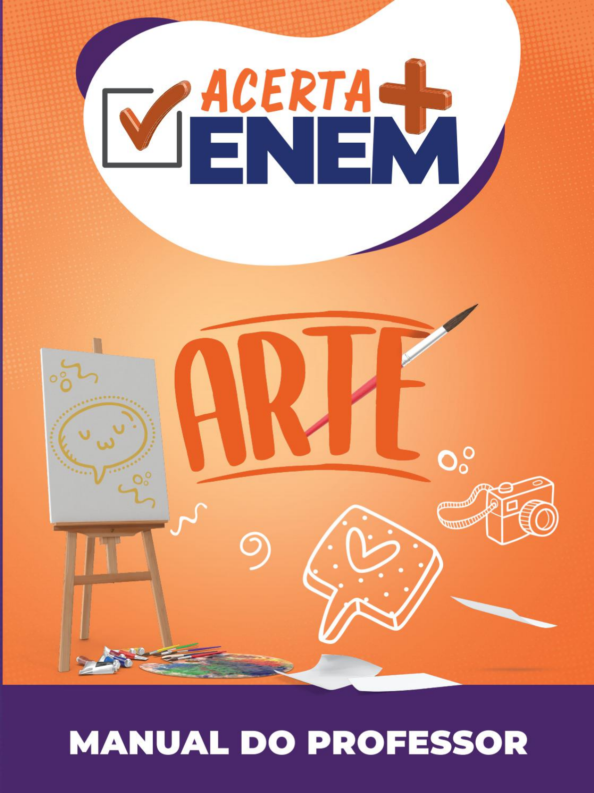 <p>ENEM MANUAL DO PROFESSOR</p><p>ACERTA ENEM MANUAL DO PROFESSOR ARTE Nykaelle Aparecida Pereira de Barros edição São Paulo / 2020 EDITORA</p><p>Copyright 2020 Título original da obra: MWC EDITORA Acerta mais ENEM: Arte Av. Paulista, 37 4° andar Manual do Professor Cond. Parque Cultural Paulista edição / São Paulo, 2020 CEP 01311-000 São Paulo SP Brasil Edição CNPJ: 13.101.659/0001-86 Rodrigo Gonçalves Fone: (11) 2246.2848 comercial@mwceditora.com.br Assistência editorial Ferreira Luísa Félix Preparação e revisão Dayane Oliveira Jéssica Tayrine Produção gráfica Gilberto Melo Diagramação Alexandre Cavalcanti Fernando Galdino Gilberto Melo Wilker Mad Ilustração Lelo Alves Pesquisa Iconográfica Anderson Figueiredo Projeto Gráfico Alexandre Cavalcanti Caio Lopes Gilberto Melo Banco de imagens Shutterstock Dados Internacionais de Catalogação na Publicação (CIP) B28a Barros, Nykaelle Aparecida Pereira de 1.ed. Acerta mais ENEM: arte: manual do professor / Nykaelle Aparecida Pereira de Barros; [editor] Rodrigo Gonçalves. - 1.ed. São Paulo: MWC Editora, 2020. 104 20,5 27,5 cm. ISBN 978-65-990463-9-1 1. Arte. 2. ENEM - questões. 3. 4. Manual do professor. I. Gonçalves, Rodrigo. II. Na tentativa de cumprir todas as regulamentações CDD 378.17 determinadas pela legislação, realizamos todos os esforços para localizar os detentores dos direitos das imagens e textos Índices para catálogo contidos nesta obra. No entanto, caso tenha havido alguma 1. Arte: manual do professor omissão involuntária, a MWC Editora se compromete em 2. ENEM: questões corrigi-la na primeira oportunidade. 3. Vestibular Todos os direitos reservados. Nenhuma parte deste livro pode Bibliotecária responsável: Aline Graziele Benitez CRB-1/3129 ser reproduzida sem a permissão por escrito da editora.</p><p>Apresentação Prezado professor, Ao reconhecer a relevância de um material didático que sistematiza os conhecimentosrelacionados às competências e habilidades ao Exame Nacional do Ensino Médio Enem, a coleção Acerta Mais Enem foi elaborada para ser um suporte voltado a atender às necessidades de professores e estudantes do Ensino Médio. Os livros que compõem a coleção foram produzidos para apoiar o processo de preparação para as provas de cada área de conhecimento do Enem. Para isso, algumas estratégias foram adotadas. Em primeiro plano, os volumes, divididos por área de conhecimento, são subdivididos por componentes curriculares. Dessa forma, atende-se a um maior número de habilidades que podem ser desenvolvidas a partir das mediações pedagógicas realizadas pelos professores. Em relação aos recursos digitais, as videoaulas têm acesso facilitado via tecnologia QR Code, em que o estudante verifica a resolução das questões apresentadas nos livros. Já em relação ao manual do professor, é disponibilizado um quadro descritivo dos conteúdos, competências e habilidades para auxiliar no planejamento das aulas. É importante que o livro de redação é um volume único e foca no desenvolvimento da escrita do texto dissertativo-argumentativo explorando o processo de produção passo a passo. Em síntese, a etapa final da Educação Básica Ensino Médio deve concretizar um processo educativo pautado na formação integral, essencial à continuidade da vida escolar dos estudantes. Como consequência, a formação de uma sociedade mais justa, democrática e inclusiva será alcançada.</p><p>ENEM ENEM O Exame Nacional do Ensino Médio (Enem) foi instituído em 1998 como forma de o desenvol- vimento de competências por parte dos egressos do ensino médio e, consequentemente, orientar a criação de políticas públicas que pudessem resultar em melhores desempenhos. Foi a partir de 2009 que o Novo Enem passou a avalian jovens e adultos brasileiros como mecanismo único, alternativo ou complementar aos processos de seleção para o acesso ao ensino superior no Brasil. Por ser uma avaliação complexa, sustentada em eixos cognitivos o domínio de linguagens, a com- preensão de fenômenos, o enfrentamento de situações-problema, a construção de argumentação e a ela- boração de propostas os alunos/participantes precisam estar preparados para atender aos requisitos de cada prova. Os eixos cognitivos são assim caracterizados: I. Dominar linguagens (DL): dominar a norma culta da Língua Portuguesa e fazer uso das linguagens matemática, artística e científica e das línguas espanhola e inglesa. II. Compreender fenômenos (CF): construir e aplicar conceitos das várias áreas do conhecimento para a compreensão de fenômenos naturais, de processos histórico-geográficos, da produção tec- nológica e das manifestações artísticas. III. Enfrentar situações-problema (SP): selecionar, organizar, relacionar, interpretar dados e informa- ções representados de diferentes formas, para tomar decisões e situações-problema. IV. Construir argumentação (CA): informações, representadas em diferentes formas, e conhecimentos disponíveis em situações concretas, para construir argumentação consistente. V. Elaborar propostas (EP): recorrer aos conhecimentos desenvolvidos na escola para elaboração de propostas de intervenção solidária na realidade, respeitando os valores humanos e conside- rando a diversidade sociocultural. Os eixos são os mesmos para as quatro áreas de conhecimento do ensino médio, que, de acordo com a Matriz de Referência do são: Linguagens, Códigos e suas Tecnologias e Redação: referente aos componentes curriculares Língua Portuguesa, Língua Estrangeira Moderna (Inglês ou Espanhol), Literatura, Arte, Educação Física. Matemática e suas Tecnologias: referente ao componente curricular Matemática. Ciências da Natureza e suas Tecnologias: referente aos componentes curriculares Química, Física e Biologia. Ciências Humanas e suas Tecnologias: referente aos componentes curriculares Geografia, História, Filosofia e Sociolog