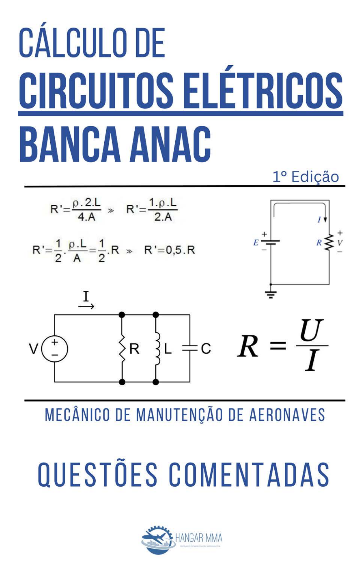 WWW.HANGARMMA.COM.BR https://www.hangarmma.com.br/ 1. QUESTÕES ANAC MÓDULO BÁSICO! 2. ELETRICIDADE BÁSICA COMENTADAS! 3. Simulados online banca ANAC! ✓ Questões comentadas! ✓ Simulados separados por matéria! ✓ Acesso simultâneo aos módulos: ✓ Acesso simultâneo aos módulos: BAS-CEL-GMP-AVI Clique e faça um teste Grátis!!! Você também pode querer: ✓ Apostila digital para ler no celular ou imprimir! ✓ Separadas por matérias! ✓ 981 Questões com gabarito! ✓ Inclui novas matérias cobradas pela banca. Clique e receba agora em seu e-mail!!! ✓ Questões comentadas! ✓ Inclui Gabarito completo! ✓ Glossário de termos técnicos! Clique e receba agora em seu e-mail!!! https://pay.hotmart.com/R79863251D?off=7vk08tk1&checkoutMode=10 https://pay.hotmart.com/P17732543L?bid=1664628284956 https://www.hangarmma.com.br/ CÁLCULOS DE CIRCUITO ELÉTRICO BANCA ANAC 1) A resistência total de um circuito em série com três resistências de 4 ohms, será de: a) 4 ohms b) 6 ohms c) 8 ohms d) 12 ohms Resolução: A associação de resistores pode ser feita em série e em paralelo. Quando resistores são conectados em série, a resistência total do circuito é igual à soma das resistências individuais de cada resistor. Portanto, se um circuito tem três resistores de 4 ohms cada, a resistência total do circuito em série será de: Rtotal = R1 + R2 + R3 = 4 ohms + 4 ohms + 4 ohms = 12 ohms Ou seja, a resistência total do circuito em série será de 12 ohms. Isso significa que, se uma fonte de tensão for aplicada a esse circuito, a corrente elétrica que fluirá pelo circuito será determinada pela Lei de Ohm (I = V/R), onde V é a tensão aplicada e R é a resistência total do circuito. 2) Quando uma lâmpada for ligada a uma tensão de 24 volts e a corrente que flui pelo filamento é de 2 amperes, a resistência será de: a) 8 ohms b) 10 ohms c) 12 ohms d) 14 ohms Resolução: A resistência elétrica pode ser calculada usando a Lei de Ohm, que estabelece que a resistência é igual à tensão dividida pela corrente: R = V/I Substituindo os valores dados, temos: R = 24 V / 2 A R = 12 Ω Portanto, a resistência elétrica da lâmpada é de 12 Ω quando ela é ligada a uma tensão de 24 volts e a corrente que flui pelo filamento é de 2 amperes. 3) Um circuito elétrico com 4 resistências em série, medindo 10 ohms cada, terá uma resistência total de: a) 5 ohms b) 10 ohms c) 20 ohms d) 40 ohms HANGAR MMA 1 of 18 HANGAR MMA https://hangarmma.com.br/blog/simulados-anac-pdf-modulo-basico/ Resolução: Quando resistores estão ligados em série, a resistência total do circuito é a soma das resistências individuais. No caso de um circuito com 4 resistências em série, todas iguais a 10 ohms, a resistência total será: Rtotal = R1 + R2 + R3 + R4 Rtotal = 10 Ω + 10 Ω + 10 Ω + 10 Ω Rtotal = 40 Ω Portanto, o circuito elétrico terá uma resistência total de 40 ohms. 4) Como é determinada a resistência total de resistências ligadas em série? a) soma total das mesmas b) divisão total das mesmas c) multiplicação total das mesmas d) soma total das mesmas, dividida pela soma individual de cada uma Resolução: A resistência total de um circuito com resistências ligadas em série é determinada pela soma das resistências individuais: R_total = R1 + R2 + R3 + ... + Rn Onde R1, R2, R3, ... , Rn são as resistências individuais que estão ligadas em série e R_total é a resistência total do circuito. Essa fórmula é baseada no fato de que, em um circuito com resistências em série, a corrente total que flui pelo circuito é a mesma em todas as resistências. Como resultado, a resistência total é a soma das resistências individuais. Assim, para calcular a resistência total, basta somar as resistências individuais que estão em série no circuito. 5) Se um resistor de 100 ohms e um de 20 ohms forem ligados em paralelo aos terminais de uma bateria de 6V, a corrente que passa pelo resistor de 20 ohms, em relação ao resistor de 100 ohms, será: a) igual b) 2 vezes maior c) 5 vezes maior d) 5 vezes menor Resolução: Ao ligar dois resistores em paralelo a uma bateria de 6V, a corrente que passa pelo resistor de 20 ohms será maior do que a corrente que passa pelo resistor de 100 ohms. Isso ocorre porque a resistência do resistor de 20 ohms é menor do que a resistência do resistor de 100 ohms. Quando dois resistores estão ligados em paralelo, a tensão aplicada em ambos é a mesma, mas a corrente é dividida entre eles de acordo com suas respectivas resistências. Como o resistor de 20 ohms oferece menos resistência ao fluxo de elétrons do que o resistor de 100 ohms, mais corrente passa através dele do que através do resistor de 100 ohms. HANGAR MMA 2 of 18 HANGAR M MA 6) Em um circuito elétrico com duas resistências em paralelo, medindo 10 ohms cada, a resistência total do circuito será de: a) 2 ohms b) 5 ohms c) 10 ohms d) 20 ohms Resolução: Para calcular a resistência total de um circuito elétrico com duas resistências em paralelo, ambas de 10 ohms cada, podemos utilizar a fórmula simplificada: R_total = (R1 * R2) / (R1 + R2) Substituindo os valores das resistências, temos: R_total = (10 ohms * 10 ohms) / (10 ohms + 10 ohms) R_total = (100 ohms) / (20 ohms) R_total = 5 ohms Portanto, a resistência total do circuito será de 5 ohms. 7) Um resistor de 120 ohms e um de 80 ohms são ligados em paralelo. A resistência total da associação é de: a) 960 ohms b) 200 ohms c) 48 ohms d) 24 ohms Resolução: A corrente total é a soma da corrente que passa por cada resistor: Resistores em paralelo. A fórmula é: Rt = (R1 * R2) / (R1 + R2) Onde Rt é a resistência total, R1 e R2 são as resistências dos resistores individuais. Aplicando esta fórmula aos valores de resistência dados, temos: Rt = (120 * 80) / (120 + 80) Rt = 9600 / 200 Rt = 48 ohms Portanto, a resistência total da associação é de 48 ohms. 8) Em um circuito paralelo cujas re