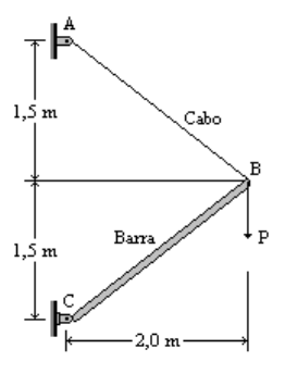 RESISTÊNCIA DOS MATERIAIS I Lista de exercícios sobre barras submetidas a força normal 1) O cabo e a barra formam a estrutura ABC (ver a figura), que suporta uma carga vertical P= 12 kN. O cabo tem a área da seção transversal Ac = 160 mm2, e a barra tem área Ab = 340 mm2. a) Calcular as tensões normais σAB e σBC no cabo e na barra, respectivamente, e indicar se são de tração ou compressão. b) Qual será a deformação do cabo se ele se alongar de 1,1 mm? c) Qual será a deformação da barra se ela se encurtar de 0,37 mm? 2) Uma placa (ou laje) quadrada de concreto armado, de lado 2,44 m e espessura de 22,9 cm, é suspensa por cabos em seus vértices, como mostrado na figura. Os cabos são presos por um gancho em um ponto a 1,52 m da face superior da placa (laje). Os cabos têm área da seção transversal A = 77,4 mm2. Determine a tensão normal σ nos cabos. (Peso específico do concreto armado = 24 kN/m3). 3) Três materiais diferentes A, B e C são ensaiados à tração usando corpos de prova com 12mm de diâmetro, medindo-se a distância entre dois pontos que inicialmente era 50 mm (ver a figura). Quando ocorre a ruptura, a distância entre os pontos de referência são 54,1 mm, 63,0 mm e 70,6 mm, respectivamente. Além disto, os diâmetros são 11,5 mm, 9,46 mm e 6,01 mm, respectivamente, quando a peça se parte. Determine os percentuais de deformação na direção longitudinal e de redução das áreas dos corpos de prova, e classifique os materiais como dúcteis ou frágeis. 4) Uma treliça simétrica composta por três barras rotuladas é submetida a uma força P (ver a figura). As barras inclinadas fazem um ângulo de 50° com a direção horizontal. A deformação axial (εx) medida na barra do meio é de 0,0025. Determine a tensão normal nas outras barras se elas são feitas de uma liga de alumínio com módulo da elasticidade de 70 GPa. 5) Um corpo de prova de um tipo de plástico é ensaiado à tração à temperatura ambiente (veja a figura), tendo-se para tensão normal e correspondente deformação os valores dados abaixo, pede-se: a) Plotar a curva de tensão – deformação. b) Determinar o limite de proporcionalidade e o módulo de elasticidade. c) Fornecer a tensão de escoamento (tensão que corresponde à deformação permanente de 0,2%). d) Classificar o material como dúctil ou frágil. Tensão (MPa) Deformação 8,0 0,0032 17,5 0,0073 25,6 0,0111 31,1 0,0129 39,8 0,0163 44,0 0,0184 48,2 0,0209 53,9 0,0260 58,1 0,0331 62,0 0,0429 62,1 ruptura 6) Um poste tubular de diâmetro externo de = 90 mm e diâmetro interno di = 78 mm é preso por dois cabos ajustáveis por esticadores. Quando os cabos são esticados, é produzida tração nos mesmos e compressão no poste. Ambos os cabos fazem um ângulo de 60° com a direção horizontal. A tensão admissível de compressão no poste (para evitar flambagem) é 10,0 MPa. Os cabos são capazes de resistir a uma força de 29 kN, e é adotado para eles um coeficiente de segurança igual a 3. Qual é a carga máxima que pode ser imposta pelos cabos ao poste, para satisfazer as condições do problema? 7) Uma placa metálica onde são colocados equipamentos pesados é apoiada em 4 pilaretes de seção circular vazada feitos de ferro fundido. Cada um desses pilaretes deve ser projetado para resistir a uma força de 280 kN. Se a tensão de ruptura do ferro fundido é 350 MPa, o coeficiente de segurança com relação à ruptura é 4, e a espessura da parede dos pilaretes é 10mm, qual o diâmetro externo mínimo que os pilaretes devem ter? (ver a figura abaixo). 8) Um tubo de alumínio funciona como uma escora na fuselagem de um pequeno avião (ver a figura), e deve resistir a uma força de compressão P = 2580 N. Para prevenir o efeito de flambagem local nas paredes do tubo, a razão entre o diâmetro externo d e a espessura t da parede não deve exceder 10. Além disto, para manter o peso da escora o menor possível, é preciso que sua área seja também a menor possível, o que significa que a tensão de compressão deve ser igual à admissível de 13,8 MPa. Qual é o maior diâmetro externo permitido? 9) Uma coluna de aço com seção transversal circular vazada é suportada por uma placa de aço circular e por um bloco de concreto (ver a figura). A coluna tem diâmetro externo de = 250 mm e suporta uma carga P = 750 kN. a) Se a tensão admissível da coluna é 55 MPa, qual é a espessura t mínima necessária? Baseado em seu resultado, escolha uma espessura para a coluna que seja um número inteiro e par em milímetros. b) Se a tensão admissível no bloco de concreto é 11,5 MPa, qual é o diâmetro mínimo da placa de aço? Baseado em seu resultado, escolha um diâmetro inteiro em milímetros. 10) Uma barra de aço AD (ver a figura), com área de seção transversal igual a 260 mm2, é carregada com as forças P1 = 12 kN, P2 = 8 kN e P3 = 6 kN. Os comprimentos dos segmentos da barra são a = 1,5 m, b = 0,6 m e c = 0,9 m. a) Assumindo que o módulo da elasticidade é 210 GPa, calcular a variação do comprimento total da barra. A barra sofre encurtamento ou alongamento? b) De qual valor P a carga P3 pode ser aumentada para que o ponto D da barra não se mova quando as cargas forem aplicadas? 11) Um tubo de aço com módulo de elasticidade de 207 GPa é carregado com as forças P1, P2 e P3 (ver a figura do exercício anterior). O tubo tem 3657 mm de comprimento e as distâncias entre os pontos de aplicação de carga são a = b = 914 mm e c = 1829 mm. As cargas são P1 = 18 kN, P2 = 13 kN e P3 = 13 kN, e a área da seção transversal é A = 1810 mm2. a) Calcular os deslocamentos δB, δC e δD das seções onde são aplicadas as cargas. b) Determinar a distância X a partir do apoio esquerdo da seção transversal cujo deslocamento é nulo. 12) A barra ABC é composta de dois materiais, tem comprimento total igual a 1 m e diâmetro de 50 mm (ver a figura). O trecho AB é de aço (Ea=210 GPa) e o trecho BC 