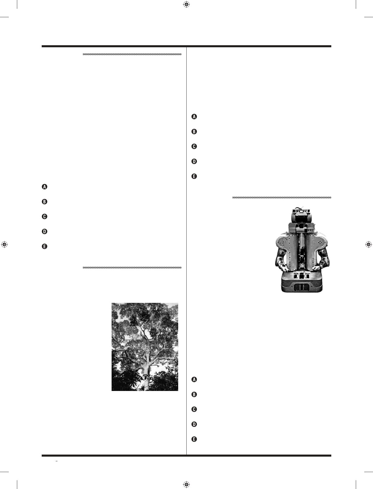 LG – 2o dia | Caderno 1 - Amarelo - Página 4 QUESTÃO 3 National Geographic News Our bodies produce a small steady amount of natural morphine, a new study suggests. Traces of the chemical are often found in mouse and human urine, leading scientists to wonder whether the drug is being made naturally or being delivered by something the subjects consumed. The new research shows that mice produce the “incredible painkiller” – and that humans and other mammals possess the same chemical road map for making it, said study co-author Meinhart Zenk, who studies plant-based pharmaceuticals at the Donald Danforth Plant Science Center in St. Louis, Missouri. DELL’ AMORE, Christine. Disponível em: www.nationalgeographic.com. Research and Exploration, July 27, 2010. Ao ler a matéria publicada na National Geographic para a realização de um trabalho escolar, um estudante descobriu que os compostos químicos da morfina, produzidos por humanos, são manipulados no Missouri. os ratos e os humanos possuem a mesma via metabólica para produção de morfina. a produção de morfina em grande quantidade minimiza a dor em ratos e humanos. os seres humanos têm uma predisposição genética para inibir a dor. a produção de morfina é um traço incomum entre os animais. QUESTÃO 4 Brazil wants to count trees in the Amazon rainforest Brazil is home to roughly 60 percent of the Amazon, about half of what remains of the world’s tropical rainforests. And now, the country has plans to count its trees. A vast undertaking, the new National Forest Inventory hopes to gain “a broad panorama of the quality and the conditions in the forest cover”, according to Brazil’s Forestry Minister Antonio Carlos Hummel. The census, set to take place over the next four years, will scour 3,288,000 square miles, sampling 20,000 points at 20 kilometer intervals and registering the number, height, diameter, and species of the trees, among other data. Ph ot o: F lic kr /N ic o C ris af ul li The initiative, aimed to better allocate resources to the country’s forests, is part of a large-scale turnaround in Brazil’s relationship to its forests. While it once had one of the worst rates of deforestation in the world, last year only 1,797 square miles of the Amazon were destroyed – a reduction of nearly 80% compared to 2004. FLEISCHFRESSER, Channtal. Disponível em: www.smartplanet.com (adaptado). O objetivo do Censo Florestal é usar os dados obtidos para criar políticas florestais na América Latina. obter verbas internacionais para implantar programas contra o desmatamento. implantar um inventário florestal em colaboração com países que têm florestas tropicais. conscientizar os povos da floresta sobre a sustentabilidade do meio ambiente. aprimorar a dotação de recursos para as florestas brasileiras. QUESTÃO 5 Although robots have made great strides in manufacturing, where tasks are repetitive, they are still no match for humans, who can grasp things and move about effortlessly in the physical world. Designing a robot to mimic the basic capabilities of motion and perception would be revolutionary, researchers say, with applications stretching from care for the elderly to returning overseas manufacturing operations to the United States (albeit with fewer workers). Yet the challenges remain immense, far higher than artificial intelligence obstacles like speaking and hearing. “All these problems where you want to duplicate something biology does, such as perception, touch, planning or grasping, turn out to be hard in fundamental ways,” said Gary Bradski, a vision specialist at Willow Garage, a robot development company based in Silicon Valley. “It’s always surprising, because humans can do so much effortlessly.” Disponível em: www.nytimes.com, July 11, 2011 (adaptado). Segundo o texto, um grande desafio da robótica é não desistir da criação de robôs que falem e entendam o que ouvem. melhorar a capacidade dos robôs para a execução de tarefas repetitivas. não tentar igualar as habilidades dos robôs às dos seres humanos. voltar a fabricar robôs que possam ser comercializados pela indústria norte-americana. projetar um robô que imite as habilidades básicas de movimento e percepção dos seres humanos.