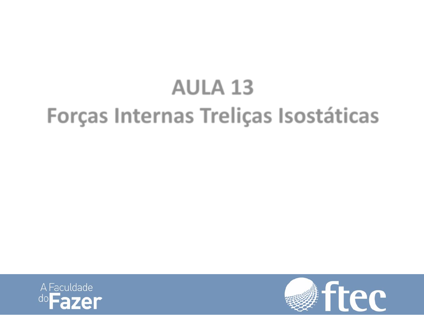 AULA 13 Forças Internas Treliças Isostáticas Curso Engenharia Civil Disciplina Teoria das Estruturas Professora: Dra. Débora P. Righi Köhler CENTRO DE GRAVIDADE Centro de Gravidade de um corpo: É a posição onde pode ser considerada a aplicação da força de gravidade resultante equivalente de todo o corpo, ou seja, é o ponto onde se equilibram todos os pesos devidos a cada partícula do corpo; CENTRO DE GRAVIDADE Deseja-se determinar o centro de gravidade do conjunto de partículas ilustradas na figura abaixo. Este conjunto é distribuído sobre uma barra de peso desprezível a qual se apoia em um único ponto A. De acordo com as equações de equilíbrio, sabe-se que o ponto deve estar localizado na mesma reta vertical que passa pelo centro de gravidade do conjunto de partículas, se não, a barra não estará em equilíbrio; Centro de Gravidade de um conjunto de partículas: A posição do centro de gravidade de um grupo de partículas pode ser encontrado empregando-se o teorema de Varignon, ou seja, faz- se o somatório de momentos dos pesos de cada partícula em relação a um ponto e calcula-se o momento do peso total das partículas em relação ao mesmo ponto. Aplicando-se o teorema de Varignon, os momentos devem ser iguais: CENTRO DE GRAVIDADE De acordo com a figura: XG=(x1*P1+x2*P2+x3*P3) = (x1*P1+x2*P2+x3*P3) P (P1+P2+P3) xG = distância do centro de gravidade De uma maneira geral, para n partículas e para sistemas 3D: CENTRO DE GRAVIDADE CENTRO DE MASSA Centro de Massa de um sistema de partículas: nos problemas que envolvem movimento, é preciso localizar-se o centro de massa do corpo. A determinação do centro de massa para um grupo de partículas é feita simplesmente trocando os pesos Pi (m.g) da expressão anterior por mi: CENTRO DE GRAVIDADE DE UM CORPO Centro de gravidade de um Corpo: considerando-se um corpo unidimensional (exemplo: arame) com massa homogeneamente distribuída. Para se determinar o centro de gravidade desse corpo, considera-se um elemento pequeno de comprimento Δx e peso ΔPi. Fazendo-se n tendendo ao infinito, tem-se que Δxi tende a 0 e ΔPi tende a 0, logo, os somatórios viram integrais: No caso de material não seja homogêneo: em que γ é oP = V peso específico do material [N/m³]. Nota-se que dP = (x, y, z)dV Ou seja: o peso específico do material é função da posição no sólido. Substituindo esta expressão nas equações anteriores, obtemos: xG = V (x, y, z)xdV (x, y, z)dV V G y (x, y, z)dV V G z= V = V (x, y, z) ydV (x, y, z)zdV (x, y, z)dV V Caso o material seja homogêneo, ou seja, O peso específico pode ser simplificado nas expressões anteriores. Neste caso, o centro de gravidade passa a coincidir com o centro geométrico (CENTROIDE) do mesmo. (x, y, z) = CENTRO DE GRAVIDADE DE UM CORPO CENTROIDE DE UM CORPO O centroide de um corpo depende apenas da geometria deste, como se verifica nas expressões abaixo: G y = V ydV dV V zG = V zdV dV V Se a forma do corpo não varia com a profundidade ou quando a espessura do corpo é muito pequena se comparada às demais dimensões, pode-se dizer que dV=t*dA, em que t representa a espessura do corpo. Desse modo, as expressões acima resultam em: G x = V xdV dV V C z dA A yC = A = A ydA zdA dA A C x = A xdA dA A yC = L ydL dL L C z = L zdL dL L Salienta-se que o centroide é o centro geométrico do corpo e depende inteiramente de suas propriedades geométricas. Quando o corpo é homogêneo, o centroide e o centro de gravidade são coincidentes. C x = L xdL dL L CENTROIDE DE UM CORPO Quando o corpo é unidimensional como, por exemplo, um arame, podemos determinar que: dA=b*dL. Substituindo-se esta expressão nas equações acima: A determinação do centro de gravidade e centroide pode ser bastante simplificada se o corpo tem simetria com um ou mais eixos. Quando o corpo tem um eixo de simetria, o centroide sempre estará localizado sobre este eixo. Quando o corpo possuir 2 eixos de simetria, o centroide estará localizado na intersecção dos 2 eixos. A figura abaixo cita alguns exemplos: CENTROIDE DE UM CORPO (b) (a) (c) CENTROIDE DE UM CORPO CENTROIDE DE UM CORPO CENTROIDE DE CORPOS COMPOSTOS Muitas vezes é possível dividir o corpo em várias partes com formas mais simples, cuja a posição do centro geométrico já é conhecido. Este procedimento, combinado com o uso de tabelas, quase sempre dispensa o uso da integração. Veja o exemplo a seguir: Exemplo 1: Localize o centroide da figura ao lado: • Procure escolher um par de eixos x e y que facilite o cálculo; • Lembre-se sempre que os furos vazados entram na equação como “área negativa”; • As cotas dos centroides de cada uma das geometrias simples devem ser tomadas em relação aos eixos x e y inicialmente estabelecidos. Logo, essas cotas podem ser negativas ou positivas; • Procure reduzir os cálculos o máximo possível utilizando conceito de simetria; • Use fórmulas já obtidas para as formas geométricas mais simples com o uso de tabelas, por exemplo; • Se cada uma das partes é uma área finita, então as fórmulas podem ser simplificadas: CENTROIDE DE CORPOS COMPOSTOS i i x A xC A = i=1 n n i i=1 C yi Ai y Ai = i=1 n n i=1 a) 1ª Parte: precisa-se de tabelas com a posição do centroide do triângulo, do retângulo e do semicírculo que são as formas geométricas que compõe a seção do problema proposto. Caso não haja tabelas à mão, deve-se calcular a posição do centroide dessas figuras preliminarmente. Sabemos que, por simetria, o centroide fica no centro do retângulo e já obtivemos a posição do centroide para o triângulo. Resta descobrirmos a posição do centroide para o semicírculo: (São as fórmulas mais usadas para cálculo do centroide em seções de perfis reais) CENTROIDE DE CORPOS COMPOSTOS do centroide resulta: i i C n x A i=1x = n Ai i=1 Retângulo cheio Triângulo Semi-circunferência vazia = (9 / 2)*(12*9) + (9 / 3)*(6*9 / 2) −(9 −(4* 4 / 3))*( 42 / 2) (12*9)+ (6*9 