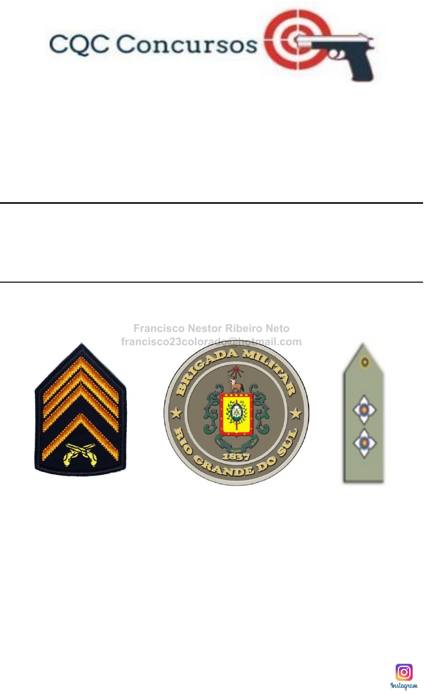 Siga a gente no instagram do @cqcconcursos_ctsp o seu futuro como sargento começa aqui com a gente é Certo Que Cai APOSTILA DE DIREITO PROCESSUAL PENAL De acordo com os seguintes editais: EDITAL Nº 01/2023 - ABERTURA E INSCRIÇÕES Francisco Nestor Ribeiro Neto francisco23colorado@hotmail.com 2 Sumário Direito Processual Penal ................................................................................................................................................. 3 DO INQUÉRITO POLICIAL ............................................................................................................................................ 3 Direito Processual Penal ............................................................................................................................................... 13 DA AÇÃO PENAL ........................................................................................................................................................ 13 Direito Processual Penal ............................................................................................................................................... 21 AÇÃO PENAL PRIVADA SUBSIDIÁRIA DA PÚBLICA /ACIDENTALMENTE PRIVADA/SUPLETIVA: ................................. 21 Direito Processual Penal ............................................................................................................................................... 30 Direito Processual Penal - Provas.............................................................................................................................. 30 Direito Processual Penal ............................................................................................................................................... 37 CADEIA DE CUSTÓDIA (Novidade do Pacote Anticrime) ........................................................................................... 37 Direito Processual Penal....................................................................................................................................................... 48 Provas III ................................................................................................................................................................... 48 Direito Processual Penal ............................................................................................................................................... 60 Da Prisão, das Medidas Cautelares e da Liberdade Provisória – Part. I .................................................................... 60 Direito Processual Penal ............................................................................................................................................... 70 Da Prisão, das Medidas Cautelares e da Liberdade Provisória – Part. II ................................................................... 70 Francisco Nestor Ribeiro Neto francisco23colorado@hotmail.com 3 Dia 09 Direito Processual Penal DO INQUÉRITO POLICIAL CONCEITO • Tradicionalmente, o IP é conceituado como sendo um procedimento administrativo inquisitório e preparatório, em que são realizadas diligências para descobrir a materialidade e a autoria do fato delituoso. • Há, atualmente, um moderno conceito de inquérito policial, trazido pela doutrina vanguarda. Para esta corrente, inquérito policial seria um processo administrativo, dirigido pelo Delegado de Polícia, de conteúdo apuratório, informativo e probatório, indispensável, preparatório e preservador (Henrique Hoffmann). CARACTERÍSTICAS Discricionário: a polícia tem a faculdade de operar ou deixar de operar dentro de um campo limitado pelo direito. Por isso, é lícito à autoridade policial militar deferir ou indeferir qualquer pedido de prova feito pelo indiciado ou pelo ofendido. Escrito: porque é destinado ao fornecimento de elementos ao titular da ação penal. Todas as peças do inquérito serão, em um só processado, reduzidas a escrito ou datilografadas e, neste caso, rubricadas pela autoridade. Sigiloso: pois só assim a autoridade policial pode providenciar as diligências necessárias para a completa elucidação do fato sem que lhe seja posto empecilhos para impedir ou dificultar a colheita de informações, com ocultação ou destruição de provas, influência sobre testemunhas etc (função endógena do sigilo no IPM). Além disso o sigilo serve para preservar a imagem do investigado, que é presumidamente inocente (função exógena do sigilo no IPM) Tal sigilo não se estende ao Ministério Público, que pode acompanhar os atos investigatórios, nem ao Poder Judiciário. O advogado pode manusear e consultar os autos findos ou em andamento (art. 7º, XIII e XIV, do EOAB). Diante do art. 5º, LXIII, da CF, que assegura ao preso a assistência de advogado, não há dúvida que poderá o advogado, não só consultar os autos de inquér ito policial, mas também tomar as medidas pertinentes em benefício do indiciado. Com a edição da súmula vinculante nº 14, garantiu-se ao advogado o amplo acesso aos elementos de prova colhidos durante o procedimento investigatório, desde que já documentados, a fim de que o seu representado possa exercer seu direito de defesa. Não permitir esse acesso ao advogado pode caracterizar abuso de autoridade. Em regra, como dito, não há necessidade de procuração para o advogado ter acesso aos autos, salvo quando houver dados sobre a vida privada do investigado, Em regra, não há necessidade de autorização judicial prévia, bastando que se peça diretamente ao delegado. Exceção está na Lei 12.850/13 (art. 23), visto que será necessário autorização judicial para analisar os inquéritos de organização criminal, quando o juiz decretou o sigilo das investigações. Francisco Nestor Ribeiro Neto francisco23colorado@hotmail.com 4 Dia 09 Indisponível: A autoridade policial não poderá mandar arquivar autos de inquérito. 