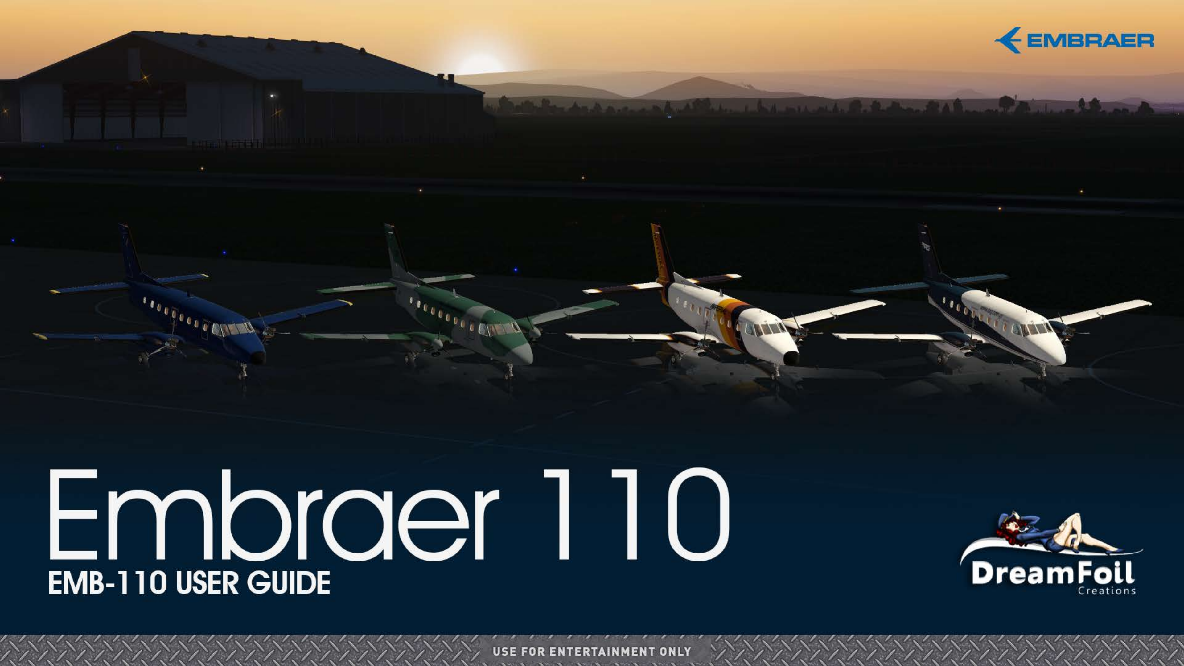 EMBRAER Embraer 110 EMB-110 USER GUIDE DreamFoil Creations USE FOR ENTERTAINMENT ONLYraer 110 EMBRAER DreamFoil Creations GENERAL CHARACTERISTICS WEIGHT Maximum Take-off Weight: 12500 lbs. (5670 Maximum Ramp Weight: 12566 lbs. (5700 Maximum Landing Weight: 12500 lbs. (5670 Maximum Zero fuel Weight: 12015 lbs. (5450 PERFORMANCE Range: km Service ceiling: 6,550 m (21,500 ft) Rate of climb: ft/min Installed Horsepower: 750 hp. Takeoff Power: 750 hp. Max. Continuous Power: 750 hp. Normal Climb: 700 hp. Maximum cruise: 700 hp. CAPACITIES SPEED Required Crew: 2 Cruise speed: 184 Kts Passengers: 21 VNE: 230 Kts E ABOARD RANGE Maximum Fuel Range: km 1,220 mi) r EMB-110 Bandeirante is a Brazilian general purpose 15-21 in-turboprop light transport aircraft designed by Embraer for military FUEL Total Capacity: 454.38 US. Gal Total Usable Fuel: 446.98 US. Gal [1692L] OP1 version is the quick change civil cargo/passenger transport ENGINE d on EMB 110K1, with same rear cargo door. 2 x Pratt & Whitney Canada PT6A-34 turboprop engines, 559 kW (750 shp) each. USE FOR ENTERTAINMENT ONLYEmbraer 110 EMBRAER EMB-110 USER GUIDE DreamFo INSTALLATION The installation is fairly simple, as is any aircraft for X-Plane. Extract / Copy all content from the downloaded file to your desired folder, for example: DO NOT MOVE ANY FILES FROM THE AIRCRAFT FOLDER, PLUGINS SHOULD STAY IN THE EMB110 PLUGINS FOLDER! Require X-Plane 11.00+ in order to run properly, X-Plane is software in constant development and we can't guarantee that all systems will run in newer versions of X-Plane, please make a backup of your oldest working version, before upgrading X-Plane. PLANE11 page 03 USE FOR ENTERTAINMENT ONLYEmbraer 110 EMBRAER EMB-110 USER GUIDE DreamFoil COM Creations DTK DIS 118.000 195° 4947 150 VLOC 120 0.00 111.70 E GARMIN 430/530 BY LAMINAR RESEARCH 35nm CLR KWSD ENT VLOC This aircraft is equipped with the new Laminar's GARMIN The Garmin 430 is an advanced panel-mounted IFR navigation and communication system that has proven extremely popular with General Aviation pilots. The G430 was revolutionary when it was first launched in 1998, and provided General 148 Aviation pilots with a color moving map for the first time, the ability to input a flight ETE plan, and featured built-in comm and nav The G430 was followed by the G530, which built on those capabilities, and included a larger moving map display. For details on the GARMIN 430/530 by Laminar Research, please refer to the manual. http://x-plane.com/manuals/G430_Manual.pdf page USE FOR ENTERTAINMENT ONLYEmbraer 110 05 OPEN TEST EMB-110 USER GUIDE DreamFoil CLOSED CLOSED RIGHT Creations 04 09 07 02 06 03 08 01 13 15 16 26 11 21 10 25 24 23 22 20 19 18 17 14 12 INSTRUMENTS MAIN PANEL 01. Stall warning 08. Smoke detection switch 15. Fuel panel 22. Pedal adjustment handle 02. Pilot's panel 09. Copilot's panel 16. Propeller synchronizing switch and light 23. Overhead and circuit breakers lights rheostat 03. Engine panel 10. Copilot panel lights rheostat 17. Landing gear control switch 24. Central panel lights rheostat 04. Radio panel 11. Pedal adjustment handle 18. Landing gear position indicator 25. Pilot panel and engine instruments lights rheostat 05. Alarm panel 12. Air conditioning panel 19. Hydraulic pressure indicator (Pumps) 26. Parking brake handle WX Radar 13. Multiple alarm panel 20. Hydraulic pressure indicator (Brakes) 07. ELT switch 14. Flap control switch and position indicator 21. Hydraulic booster pump switch page 05 USE FOR ENTERTAINMENT ONLYEmbraer 110 EMBRAER EMB-110 USER GUIDE DreamFoil Creations 07 06 04 CUT-OUT 02 14 20 INSTRUMENTS AIR EED 03 24 05 Pilot's and Copilot's Panel 10 08 26 01 01. Marker beacon control panel 02. Fire horn cut-out button 03. Airspeed indicator 2 04. Smoke detector light 05 Attitude indicator 6 14 13 10 06. AP/FD repeater panel 07. Clock ££ 09 2 08 Altimeter 09. Horizontal situation indicator 10. Vertical speed indicator VON 11. Lighting emergency supply control panel 12. Turn and slip indicator 13. RMI 14. VOR/ILS indicator 11 EMERGENCY 2 TURN 12 page 06 USE FOR ENTERTAINMENT ONLYEmbraer 110 EMBRAER EMB-110 USER GUIDE DEICING DreamFoil PROPELLERS WINDSHIELD Creations DEICING PANEL POWERLEVERS INSTRUMENTS Overhead Panels and Engine Control Box FUEL CONDITION LEVERS REVERS CONTROL LEVERS STATIC/PITO SEAT AUTOPILOT PANEL BELTS SMOKING LIGHTS CAB PIL PANELS WINDSHIELD OVERALL BEACON ELEVATOR TRIM CANCEL HORN GENERATOR G1 G2 GENERATOR 2 TAB CONTROL INVERTERS LEFT RUDDER TRIM TAB CONTROL GENCY PUMP ACCESS OVERSPEED OVERHEAD PANEL page 07 TAB CONTROL USE FOR ENTERTAINMENT ONLYEmbraer 110 EMBRAER EMB-110 USER GUIDE Dream Foil Creations OVERHEAD The switches panel allows you to disable or enable essential functions of the aircraft. Battery Master 3 positions (Battery, OFF and Nav Turn on the Navigation Lights. Emergency Enable/Disable Emergency Bus Bar. Beacon/Anticollision 3 positions (OFF, Beacon, Anticollission Lights). In Flight Ignition Enable Auto Ignition and Dry Motoring. Landing Turn on the landing Lights. Start/Interruption Enable/Disable Ignition and Interruption Taxi Turn on the Taxi Light. Generator 1 & 2 Enable Electric Generators. Windshield Wiper 2 switches control the wiper On, OFF and Park Switch and Speed control switch (Fast and Slowl. Inertial Separation Enable/Disable Inertial Separation. It takes 9 seconds to get ready. Inverters 1 & 2 Converts DC electrical current generated by the engines into AC electrical current. TWO BUTTONS ARE PART OF THE OVERHEAD Nac Landing Gear Main landing gear inspection light Battery Voltage Tests and checks Battery voltage when there is no electric current being Cab Pass Passenger cabin lights (OFF, Overall Medium and ON). generated by generator 1. Cab Pil Pilot cabin Lights. Main Bus Bar Voltage Tests and checks Main Bus Bar voltage when there is no electric current being Panels Panel lights. generated by generator 2. PX Heat Enable/Disable PX Heat. Static/Pitot Heat Enable/Disable 